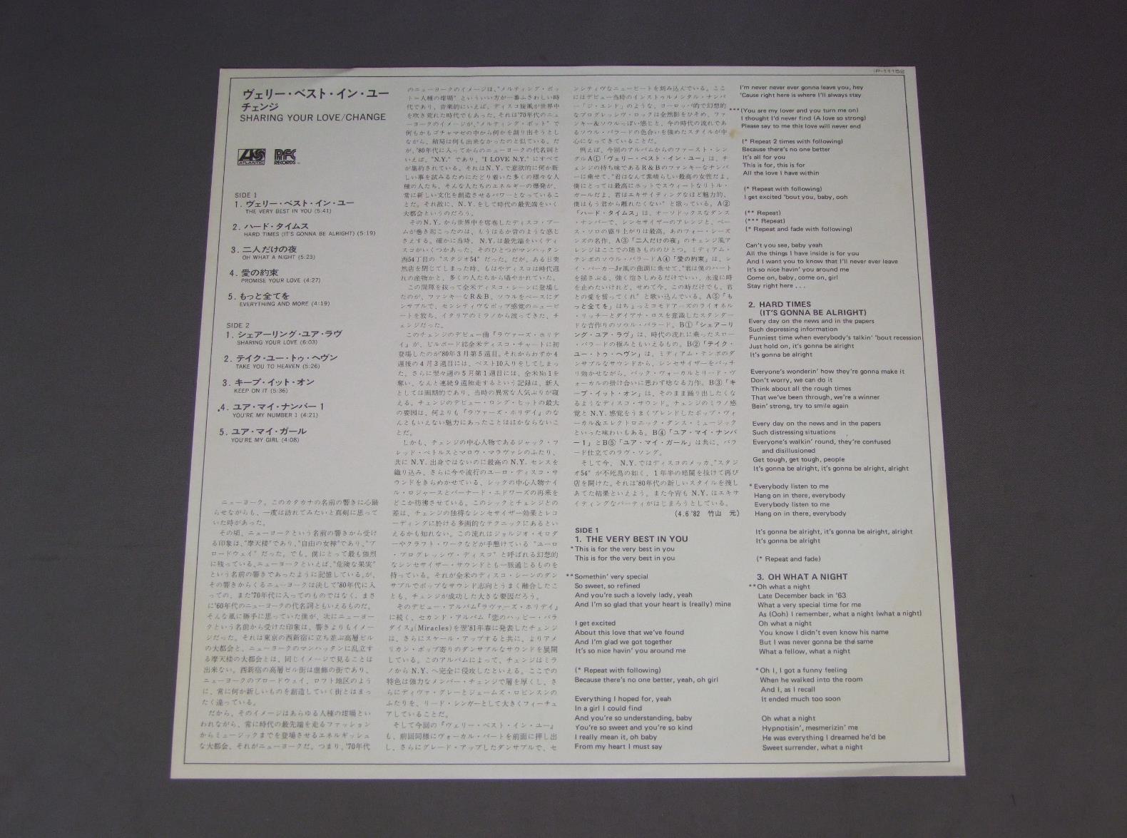 CHANGEチェンジ/SHARING YOUR LOVEヴェリー・ベスト・イン・ユー P11152 製造国:日本盤 / Media:LP外観:EX-盤の状態:EX-帯:EX 価格(税込):¥330(売約済) 送料 7inch:定形外郵便 360円~LP:定形外郵便 660円~送料は、注文の最終画面で確認頂けます。 > > CHANGE/SHARING YOUR LOVE 外観 (EX-)特記事項:ジャケ表面にシミやよごれ有り外観EX-の共通説明:ダメージ軽度~多少。 中古品としては普通の状態。シミ、ヨゴレ、スレなど軽く~多少。 盤の状態 (EX-)特記事項:薄いスリキズ・細かい表面スレ多少ある感じ。殆どが軽微なものの様子です。盤EX-の共通説明:盤面のスリキズが多少有り。音に出そうなものは殆ど無いように見える~さほど気にならないぐらいの軽いプチ数カ所程度。 帯の状態 (EX):特記なし。 Tweet それぞれの画像をクリックすると、大きい写真が見られます こちらの商品もお勧めです 1,210円 JERMAINE JACKSONジャーメイン・ジャクソン / LET`S GET SERIOUSレッツ・ゲット・シーリアス 1,210円 BROTHER S JOHNSONブラザーズ・ジョンソン / BLAMブラム! 1,210円 BREAKFAST CLUBブレックファスト・クラブ / BREAKFAST CLUBブレックファスト・クラブ 1,210円 EARTH. WIND & FIREアース・ウインド & ファイアー / RAISE!天空の女神 660円 DIANA ROSS / LADY SINGS THE BLUES 1,210円 SMOKEY ROBINSONスモーキー・ロビンソン / SMOKE SIGNALSスモーク・シグナルズ 660円 SHIRLEY CAESARシャーリー・シーザー / CHRISTMASINGクリスマシング 1,210円 TEMPTATIONSテンプテーションズ / SURFACE THRILLSサーフィス・スリル
