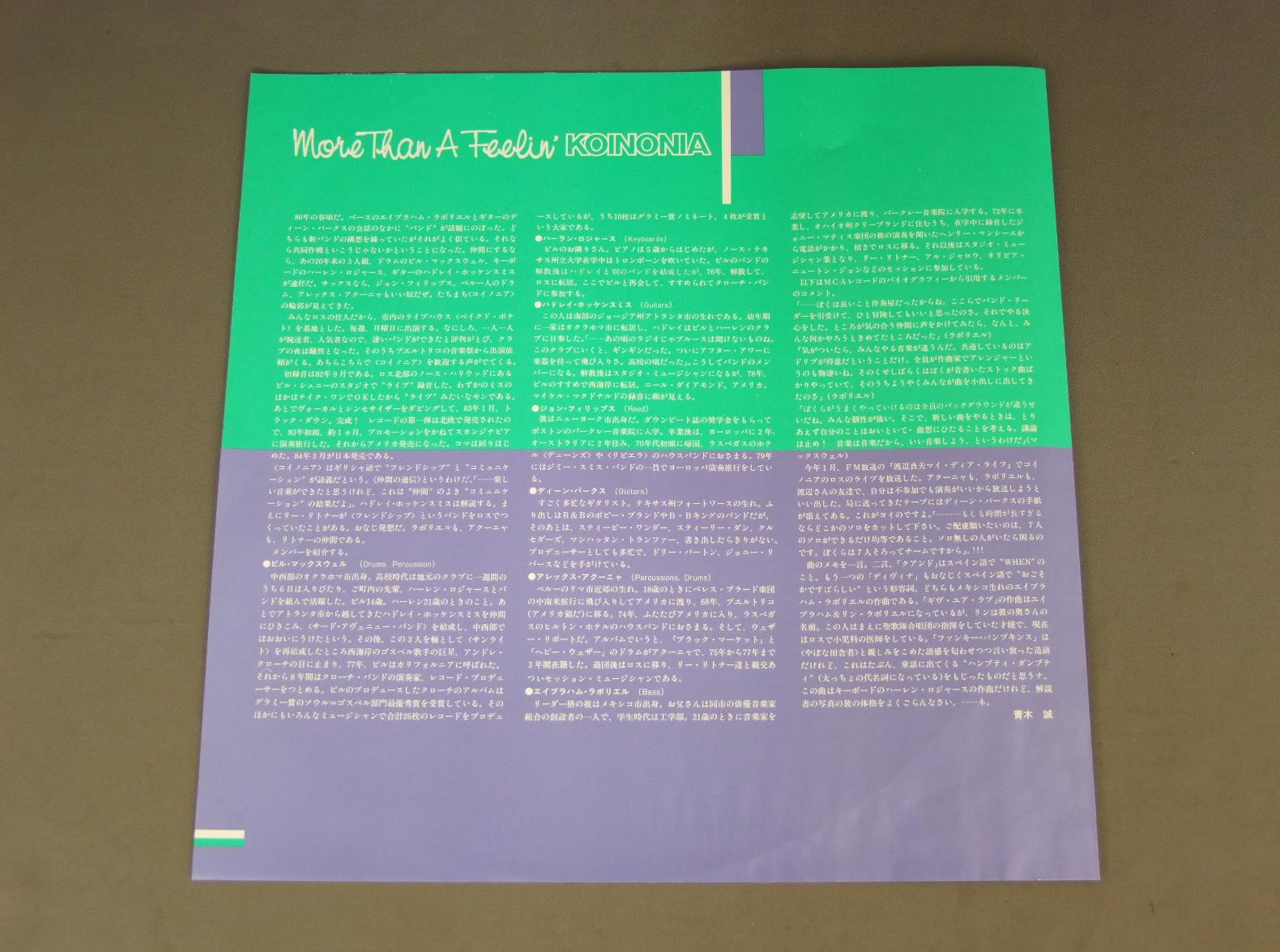 KOINONIA/MORE THAN A FEELIN` C25Y0067 製造国:日本盤 / Media:LP外観:VG+盤の状態:EX+ 価格(税込):¥330(売約済) 送料 7inch:定形外郵便 360円~LP:定形外郵便 660円~送料は、注文の最終画面で確認頂けます。 > > KOINONIA/MORE THAN A FEELIN` 外観 (VG+)特記事項:背下付近にウォーターダメージ。外観VG+の共通説明:ダメージやや有り。シミ、ヨゴレ、スレなど多少~やや多め。 盤の状態 (EX+)特記事項:薄いスリキズ・スレ少し。一見してきれいな状態です。盤EX+の共通説明:盤面の極薄いスリキズ、スレ少し程度 音に出そうなものは無いように見える(極軽微なソフトティック音は除く)。 Tweet それぞれの画像をクリックすると、大きい写真が見られます こちらの商品もお勧めです 1,210円 AL DI MEOLAアル・ディ・メオラ / SPLEMDIDO HOTELスプレンディド・ホテル 880円 EARL KLUGHアール・クルー / MAGIC IN YOUR EYES瞳のマジック 1,650円 TAKASHI KAKO加古隆 / TOSCANINI EDITIONAソロ・コンサート 770円 GEORGE BENSONジョージ・ベンソン / BODY TALKボディートーク 1,320円 SKYスカイ / SKY2スカイ 2 662円 SPYRO GYRAスパイロ・ジャイラ / FREETIMEフリータイム 1,210円 LARRY CARLTONラリー・カールトン / STRIKES TWICEストライクス・トワイス 990円 GEORGE BENSONジョージ・ベンソン / BENSON AND FARRELL地平線のかなたに