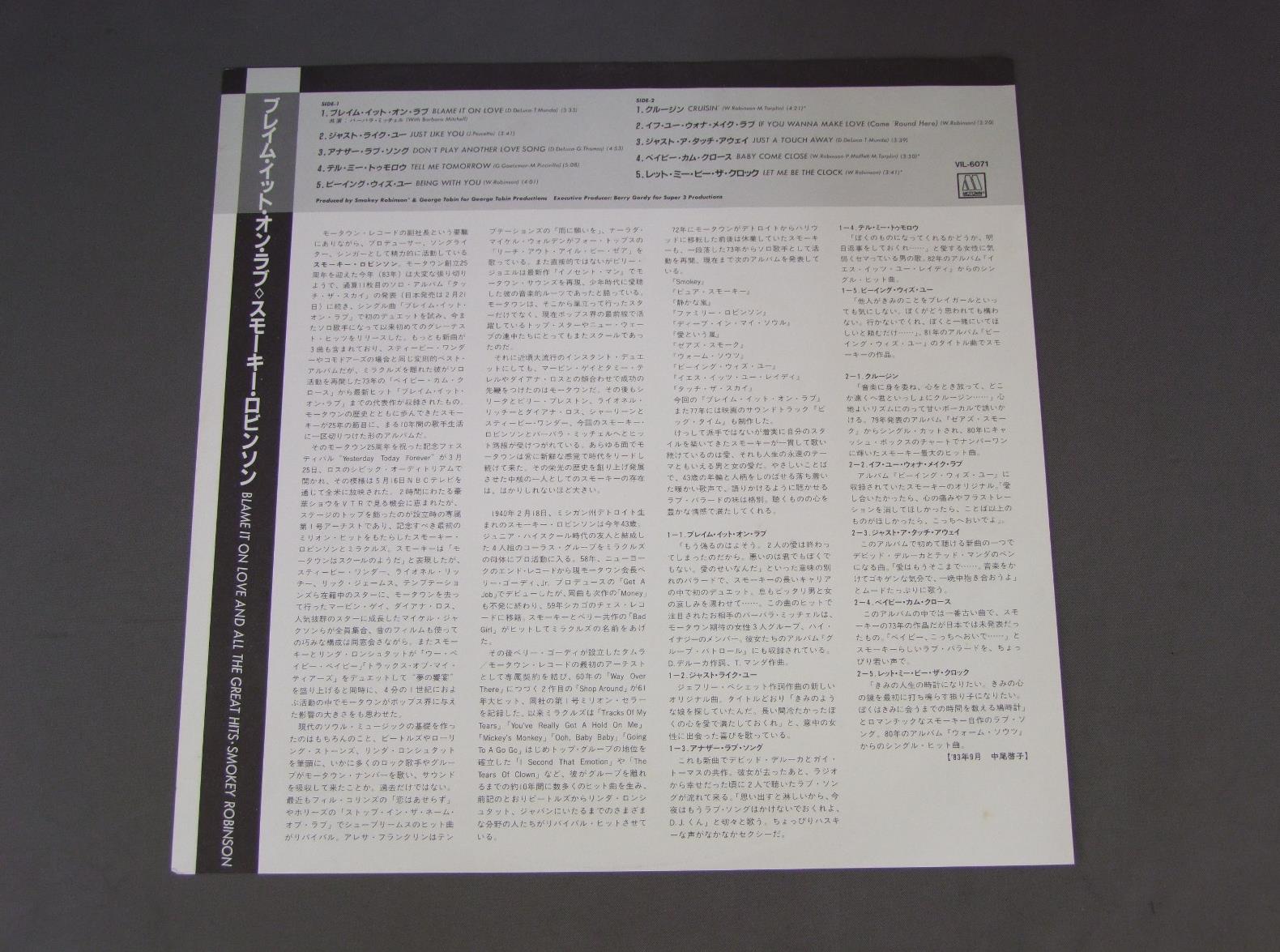 SMOKEY ROBINSON/BLAME IT ON LOVE AND ALL THE GREAT HITS VIL6071 製造国:日本盤 / Media:LP外観:EX盤の状態:EX+ 価格(税込):¥330(売約済) 送料 7inch:定形外郵便 360円~LP:定形外郵便 660円~送料は、注文の最終画面で確認頂けます。 > > SMOKEY ROBINSON/BLAME IT ON LOVE AND ALL THE GREAT HITS 外観 (EX)特記事項:特記なし。外観EXの共通説明:ダメージが限定的。中古品としては保存状態がよい方。シミ、ヨゴレ、スレ 少し~軽度。 盤の状態 (EX+)特記事項:薄いスリキズ・スレ少し。一見してきれいな状態です。盤EX+の共通説明:盤面の極薄いスリキズ、スレ少し程度 音に出そうなものは無いように見える(極軽微なソフトティック音は除く)。 Tweet それぞれの画像をクリックすると、大きい写真が見られます こちらの商品もお勧めです 1,210円 ASHFORD & SIMPSONアシュフォード&シンプソン / SOLIDソリッド 770円 CHAMPAIGNシャンペーン / MODERN HEARTモダン・ハート 1,210円 TAVARESタバレス / NEW DIRECTIONS二人だけのバラード 880円 DIANA ROSSダイアナ・ロス / WHY DO FOOLS FALL IN LOVEファースト・レディ 恋はくせもの 770円 DAZZ BAND / ON THE ONE 770円 THREE DEGREES & MFSBスリー・ディグリーズ &MFSB / THREE DEGREES & MFSB SHOWスリー・ディグリーズ &MFSBショー 660円 SHIRLEY CAESARシャーリー・シーザー / CHRISTMASINGクリスマシング 1,210円 VAN McCOYバン・マッコイ / MY FEVORITE FANTASYマイ・フェバリット・ファンタジー