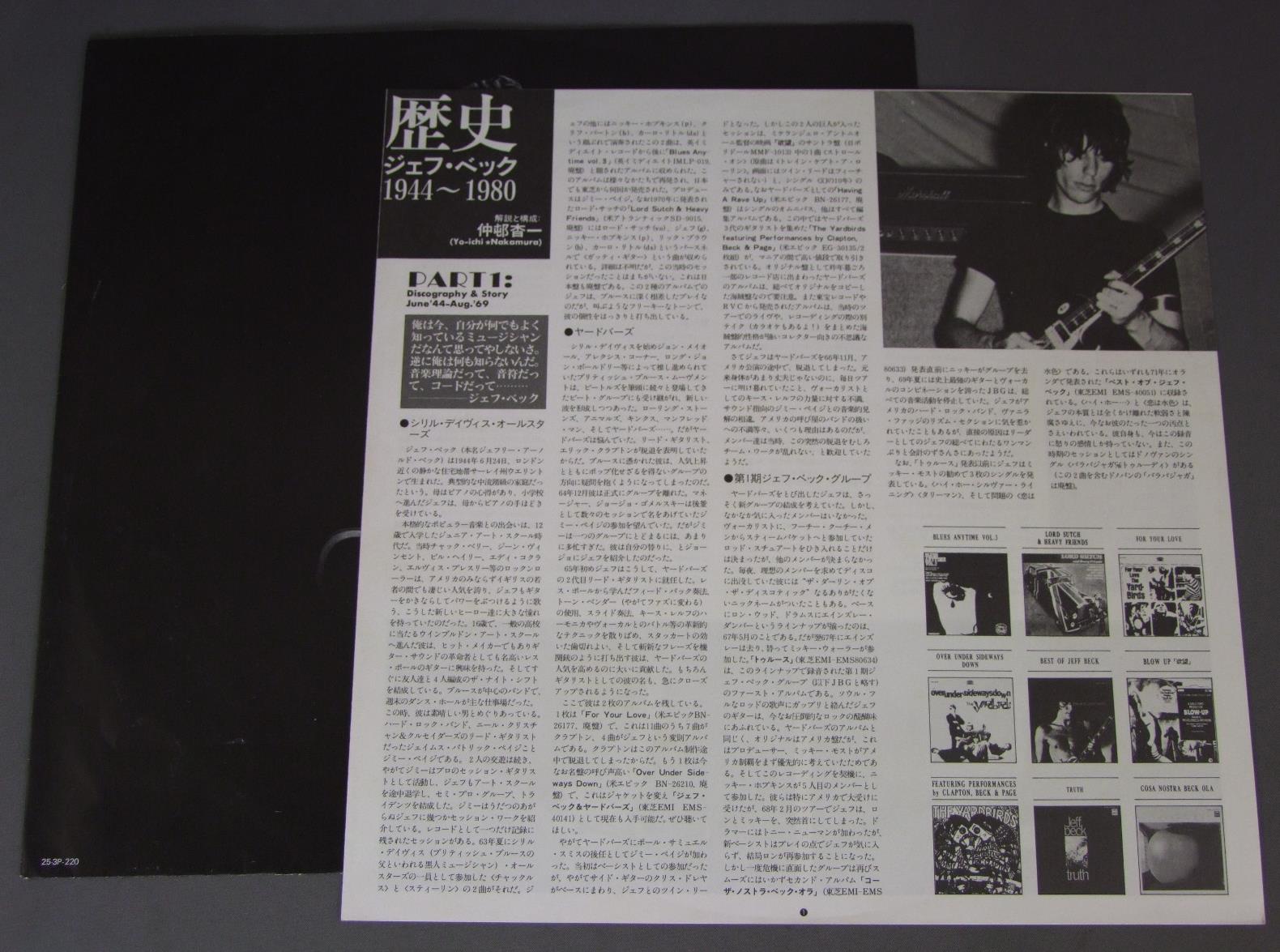 JEFF BECKジェフ・ベック/THERE AND BACKゼア・アンド・バック 25 3P220 製造国:日本盤 / Media:LP外観:EX盤の状態:EX+ 価格(税込):¥330(売約済) 送料 7inch:定形外郵便 360円~LP:定形外郵便 660円~送料は、注文の最終画面で確認頂けます。 > > JEFF BECK/THERE AND BACK 外観 (EX)特記事項:特記なし。外観EXの共通説明:ダメージが限定的。中古品としては保存状態がよい方。シミ、ヨゴレ、スレ 少し~軽度。 盤の状態 (EX+)特記事項:薄いスリキズ・スレ少し。一見してきれいな状態です。盤EX+の共通説明:盤面の極薄いスリキズ、スレ少し程度 音に出そうなものは無いように見える(極軽微なソフトティック音は除く)。 Tweet それぞれの画像をクリックすると、大きい写真が見られます こちらの商品もお勧めです 440円 JEFF BECK / FLASH 1,650円 JEFF BECKジェフ・ベック / WIREDワイヤード