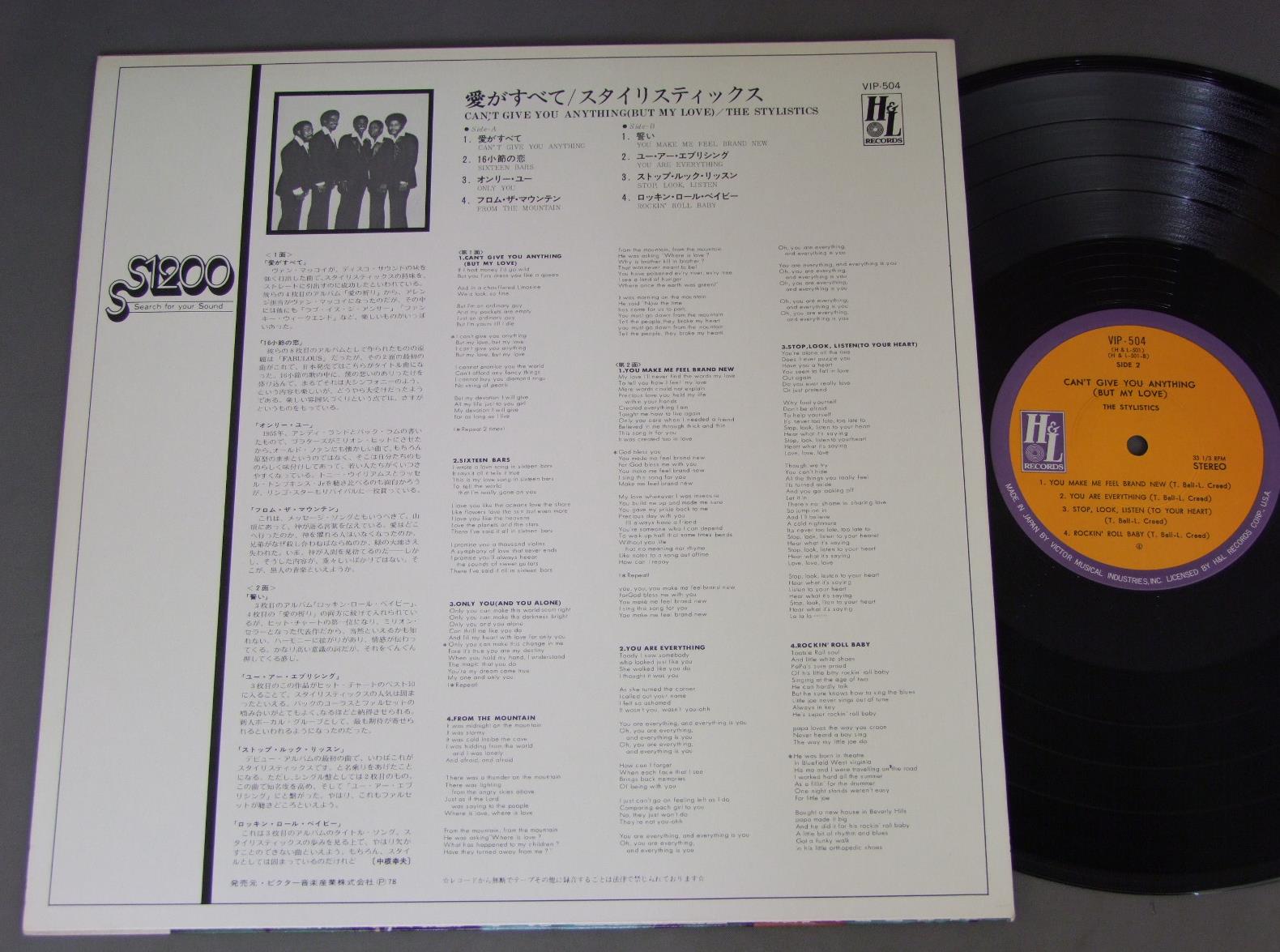 STYLISTICSスタイリスティックス/CAN`T GIVE YOU ANYTHING(BUT MY LOVE)愛がすべて VIP504 製造国:日本盤 / Media:LP外観:EX盤の状態:EX+ 価格(税込):¥770(売約済) 送料 7inch:定形外郵便 360円~LP:定形外郵便 660円~送料は、注文の最終画面で確認頂けます。 > > STYLISTICS/CAN`T GIVE YOU ANYTHING(BUT MY LOVE) 外観 (EX)特記事項:特記なし。外観EXの共通説明:ダメージが限定的。中古品としては保存状態がよい方。シミ、ヨゴレ、スレ 少し~軽度。 盤の状態 (EX+)特記事項:薄いスリキズ・スレ少し。一見してきれいな状態です。盤EX+の共通説明:盤面の極薄いスリキズ、スレ少し程度 音に出そうなものは無いように見える(極軽微なソフトティック音は除く)。 Tweet それぞれの画像をクリックすると、大きい写真が見られます こちらの商品もお勧めです 1,320円 SMOKEY ROBINSONスモーキー・ロビンソン / BEING WITH YOUビーイング・ウィズ・ユー 1,210円 VAN McCOYバン・マッコイ / MY FEVORITE FANTASYマイ・フェバリット・ファンタジー 770円 TUXEDO JUNCTIONタキシード・ジャンクション / TAKE THE A TRAINA列車で行こう 660円 GLADYS KNIGHT & THE PIPSグラディス・ナイト&ザ・ピップス / IMAGINATIONイマジネイション 770円 STEVIE WONDERスティービー・ワンダー / IN SQUARE CIRCLEイン・スクエア・サークル 990円 EARTH WIND & FIREアース・ウィンド&ファイヤー / POWERLIGHT創世記 1,210円 GRANDMASTER FLASHグランドマスター・フラッシュ / SOURCEソース 660円 DIANA ROSS / LADY SINGS THE BLUES