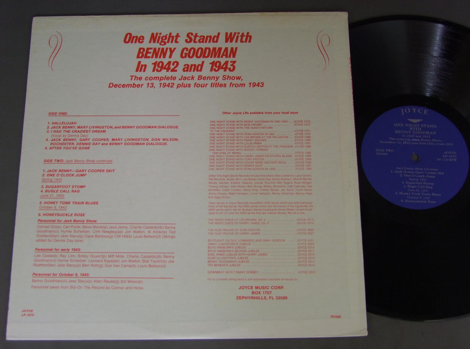 BENNY GOODMAN/ONE NIGHT STAND WITH BENNY GOODMAN IN 1942 AND 1943 JOYCELP1073 製造国:輸入盤 / Media:LP外観:EX-盤の状態:EX 価格(税込):¥660(売約済) 送料 7inch:定形外郵便 360円~LP:定形外郵便 660円~送料は、注文の最終画面で確認頂けます。 > > BENNY GOODMAN/ONE NIGHT STAND WITH BENNY GOODMAN IN 1942 AND 1943 外観 (EX-)特記事項:ヘリにスレ有。ジャケ表面にスレ有、シミ、よごれ有。外観EX-の共通説明:ダメージ軽度~多少。 中古品としては普通の状態。シミ、ヨゴレ、スレなど軽く~多少。 盤の状態 (EX)特記事項:薄いスリキズ・スレ軽くある感じ。軽微なものの様子です。盤EXの共通説明:盤面のスリキズが薄いものが少し~軽度 音に出そうなものは無いように見える(軽微なソフトティック音は除く)。 Tweet それぞれの画像をクリックすると、大きい写真が見られます こちらの商品もお勧めです 1,210円 MONTE BALLOU AND HIS NEW CASTLE JAZZ BAND / THEY`RE MOVING WILLIE`S GRAVE TO DIG A SEWER (BUTCH THOMPSON AUTOGRAPHED )THEY`RE MOVING WILLIE`S GRAVE TO DIG A SEWER(BUTCH THOMPSONサイン付) 1,210円 YANK LAWSON & BOB HAGGART / PLAYS COLE PORTER AUTOGREPHED (RALPH SUTTON)PLAYS COLE PORTER (RALPH SUTTON サイン付) 1,155円 BENNY GOODMAN / THE GREAT YEARS 770円 LIONEL HAMPTON / LIONEL HAMPTON&HIS BIG BAND `OUTRAGEOUS` 770円 HARRY JAMES AND HIS ORCHESTRA / KING PORTER STOMP 1,210円 EDDIE CONDON & DIXIELAND ALL STARS / SPOTLIGHT ON AUTOGRAPHEDSPOTLIGHT ON サイン付 1,210円 WORLD`S GREATEST JAZZ BAND OF YANK LAWSON & BOB HAGGART / LIVE (RALPH SUTTON AUTOGRAPHED)LIVE (RALPH SUTTONサイン付) 770円 HARRY JAMES AND HIS ORCHESTRA / BEGINING