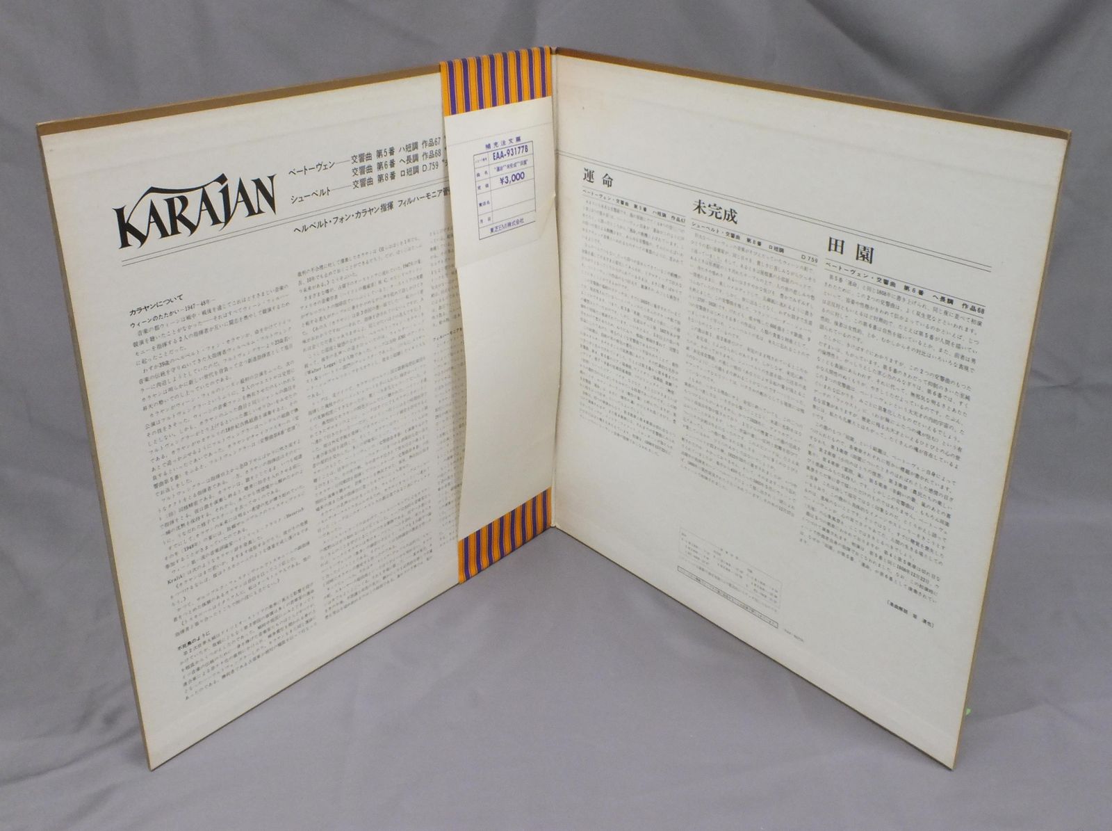 KARAJANカラヤン/BEETHOVEN SYM5 EAA93177B 製造国:日本盤 / Media:LP外観:EX-盤の状態:EX+ 価格(税込):¥1,100(売約済) 送料 7inch:定形外郵便 360円~LP:定形外郵便 660円~送料は、注文の最終画面で確認頂けます。 > > KARAJAN/ 外観 (EX-)特記事項:ヘリにシミ、よごれ有、スレ有。ジャケ表面にシミ、よごれ有、スレ有。外観EX-の共通説明:ダメージ軽度~多少。 中古品としては普通の状態。シミ、ヨゴレ、スレなど軽く~多少。 盤の状態 (EX+)特記事項:薄いスリキズ・スレ少し。一見してきれいな状態です。盤EX+の共通説明:盤面の極薄いスリキズ、スレ少し程度 音に出そうなものは無いように見える(極軽微なソフトティック音は除く)。 帯の状態 ():切れ、やぶれ有。ヨレ有。 その他:見本盤 Tweet それぞれの画像をクリックすると、大きい写真が見られます こちらの商品もお勧めです 1,320円 BERMAN - KARAJAN - BERLINER PHIL.ベルマン - カラヤン - ベルリンフィル / TSCHAIKOWSKY - PIANO CONCERT NO1チャイコフスキー - ピアノ協奏曲 第1番 1,430円 BOHM - VIENNA PHILHARMONIC ORCHESTRAベーム - ウィーンフィルハーモニー管弦楽団 / BRUCKNER SYMPHONY NO.4ブルックナー - 交響曲4番 ロマンティック 990円 GILELS-ELENA GILELS-BOHMエミール・ギレリス & エレーナ・ギレリス-ベーム / MOZART KLAVIERKONZERTモーツァルト ピアノ協奏曲 第27番 他 990円 KARAJAN - BERLIN PHILHARMONICカラヤン - ベルリン・フィル / DVORAK - SYMPHONY NO5ドボルザーク - 交響曲第5番新世界より 990円 BOHM - BERLIN PHILHARMONICベーム - ベルリン・フィル / SCHUBERT- SYMPHONY NO3シューベルト - 交響曲第3番 770円 KARAJAN - BERLIN PHIL.カラヤン - ベルリン・フィル / BRUCKNER - SYMPHONY NO4ブルックナー - 交響曲第4番ロマンティック 1,320円 VERGENI MRAVINSKYエフゲニー・ムラヴィンスキー / TCHAIKOVSKY - PIANO CONCERTO NO1チャイコフスキー - ピアノ協奏曲 第1番 1,320円 KARAJAN - BERLIN PHILHARMONIKERカラヤン - ベルリンフィルハーモニー管弦楽団 / HONEGGER - SYMPHONIE LITURGIQUEオネゲル - 交響曲第3番
