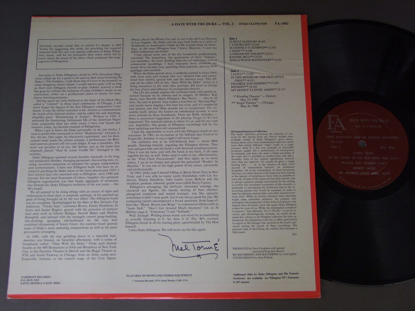 DUKE ELLINGTON AND HIS FAMOUS ORCHESTRA/1945-46 FA1002 製造国:米国盤 / Media:LP外観:EX盤の状態:EX 価格(税込):¥440(売約済) 送料 7inch:定形外郵便 360円~LP:定形外郵便 660円~送料は、注文の最終画面で確認頂けます。 > > DUKE ELLINGTON AND HIS FAMOUS ORCHESTRA/1945-46 外観 (EX)特記事項:裏ジャケにシミ。外観EXの共通説明:ダメージが限定的。中古品としては保存状態がよい方。シミ、ヨゴレ、スレ 少し~軽度。 盤の状態 (EX)特記事項:薄いスリキズ・スレ少しある感じ。一見してきれいな感じです。盤EXの共通説明:盤面のスリキズが薄いものが少し~軽度 音に出そうなものは無いように見える(軽微なソフトティック音は除く)。 Tweet それぞれの画像をクリックすると、大きい写真が見られます こちらの商品もお勧めです 880円 BENNY GOODMAN & CHARLIE BARNET / BENNY GOODMAN ( 1939 ) - CHARLIE BARNET ( 1938-41 ) 1,210円 WORLD`S GREATEST JAZZ BAND OF YANK LAWSON AND BOB HAGGART / LIVE AT THE ROOSEVELT GRILL(RALPH SUTTON AUTOGRAPHED)LIVE AT THE ROOSEVELT GRILL(RALPH SUTTONサイン付) 1,320円 YANK LAWSON AND BOB HAGGART / WORLD`S GREATEST JAZZBAND 550円 DUKE ELLINGTON / DATE WITH THE DUKE VOL8 1945-46 770円 LES BROWN & HIS BAND OF RENOWN / SWINGIN` SOUND 1,100円 LIONEL HAMPTON / ROCK ROCK ROCK 1,320円 LIONEL HAMPTON AND HIS GIANTS / LIVE IN EMMEN - HOLLAND 1,210円 YANK LAWSON & BOB HAGGART / PLAYS COLE PORTER AUTOGREPHED (RALPH SUTTON)PLAYS COLE PORTER (RALPH SUTTON サイン付)