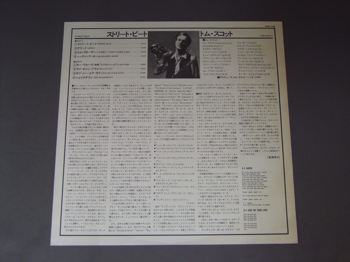 TOM SCOTT/STREET BEAT 25AP1706 製造国:日本盤 / Media:LP外観:EX盤の状態:EX+帯:EX 価格(税込):¥660(売約済) 送料 7inch:定形外郵便 360円~LP:定形外郵便 660円~送料は、注文の最終画面で確認頂けます。 > > TOM SCOTT/STREET BEAT 外観 (EX)特記事項:ヘリにスレ有。外観EXの共通説明:ダメージが限定的。中古品としては保存状態がよい方。シミ、ヨゴレ、スレ 少し~軽度。 盤の状態 (EX+)特記事項:薄いスリキズ・スレ少し。一見してきれいな状態です。盤EX+の共通説明:盤面の極薄いスリキズ、スレ少し程度 音に出そうなものは無いように見える(極軽微なソフトティック音は除く)。 帯の状態 (EX):特記なし。 Tweet それぞれの画像をクリックすると、大きい写真が見られます こちらの商品もお勧めです 1,320円 HUBERT LAWSヒューバート・ローズ / RITE OF SPRING春の祭典 770円 FUSEフューズ / FUSE ONEフューズ・ワン 880円 MEZZOFORTEメゾフォルテ / SURPRISE SURPRISEガーデン・パーティ 1,210円 CRUSADERSクルセイダーズ / GHETTO BLLASTERゲットー・プラスター 1,210円 NAOYA MATSUOKA松岡直也 / FALL ON THE AVENUE見知らぬ街で 770円 MAINIERI & BERNHARDTマイニエリ & バーンハート / FREE SMILESフリー・スマイル 1,210円 DON GRUSINドン・グルーシン / DON GRUSINドン・グルーシン 770円 LARRY CARLTONラリー・カールトン / SINGING/PLAYINGシンギング・プレイング