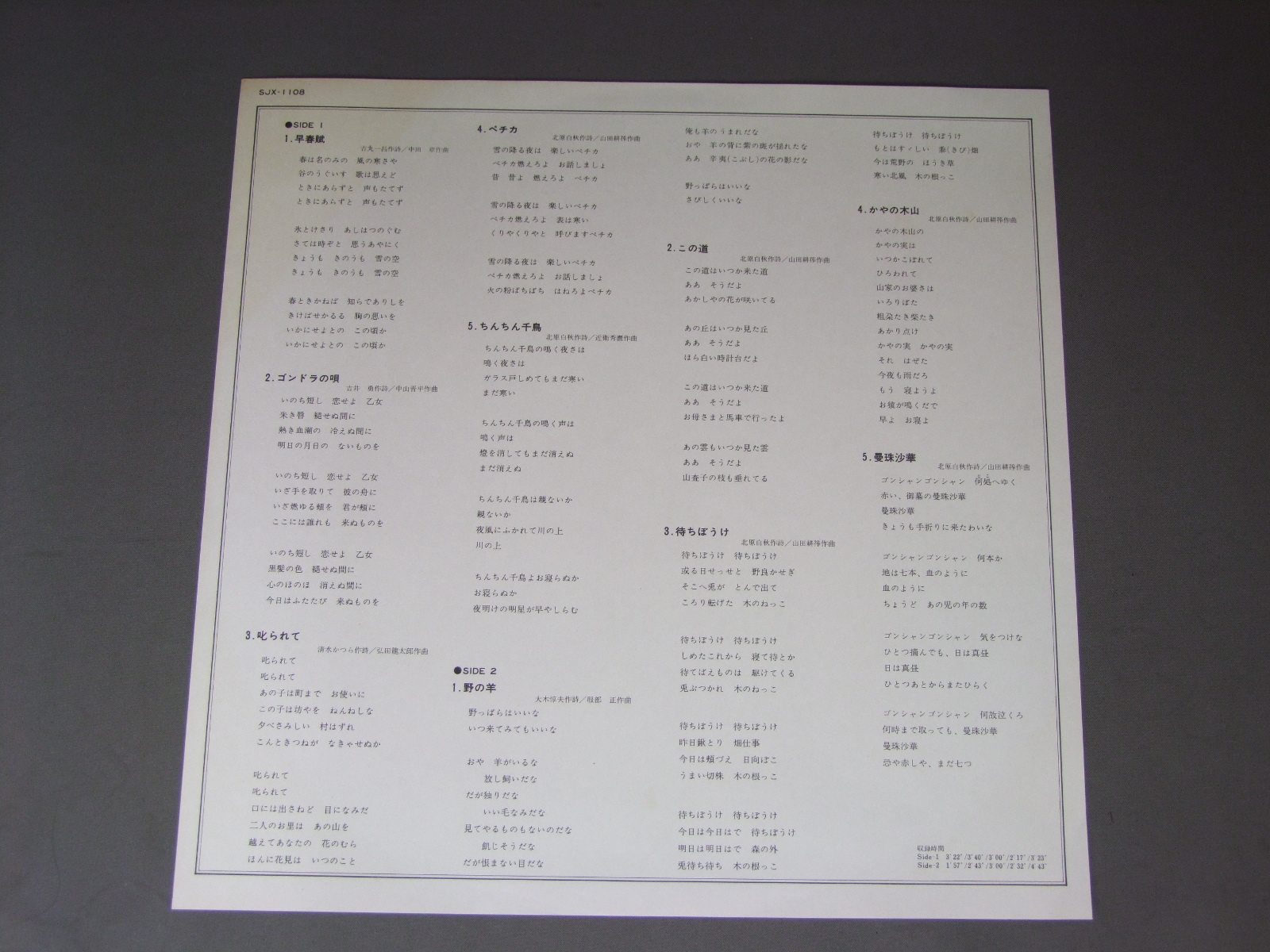 HIKARU HAYASHI岩城宏之/JAPANESE CHORUS混声合唱による日本の抒情歌2 林光編 SJX1108 製造国:日本盤 / Media:LP外観:EX盤の状態:EX+帯:EX 価格(税込):¥770(売約済) 送料 7inch:定形外郵便 360円~LP:定形外郵便 660円~送料は、注文の最終画面で確認頂けます。 > > HIKARU HAYASHI/JAPANESE CHORUS 外観 (EX)特記事項:特記なし。外観EXの共通説明:ダメージが限定的。中古品としては保存状態がよい方。シミ、ヨゴレ、スレ 少し~軽度。 盤の状態 (EX+)特記事項:薄いスリキズ・スレ少し。一見してきれいな状態です。盤EX+の共通説明:盤面の極薄いスリキズ、スレ少し程度 音に出そうなものは無いように見える(極軽微なソフトティック音は除く)。 帯の状態 (EX):特記なし。 Tweet それぞれの画像をクリックすると、大きい写真が見られます こちらの商品もお勧めです 990円 BENIAMINO GIGLIベニァミーノ・ジーリ / BENIAMINO GIGLI SINGT AUS OPERN UND LIEDERベニァミーノ・ジーリ . 歌曲名唱集 990円 WUNDERLICH- GIESENヴンダーリッヒ-ギーゼン / SCHUBERT SCHONE MULLERIN歌曲集`美しき水車小屋の娘`D795 990円 ROSE DERCOURT-FRANCIS POULENCローズ・デルクール-フランシス・プーランク / SONGS OF POULENCプーランク歌曲集 1,320円 FRANCO CORELLIフランコ・コレルリ / BEST OF FRANCO CORELLI OPERA ARIASオペラ・アリア集 1,320円 EULEEN FARRELL - MAX RUDOLF - COLUMBIA SYMPHONY ORCHESTRAアイリーン・ファーレル - マックス・ルドルフ - コロンビア交響楽団 / ARIAS IN THE GREAT TRADITION偉大なるファーレル 990円 RATTLEラトル / MAHLER DAS KLAGENDE LIED COMPLETE VERSIONマーラー カンタータ`嘆きの歌`全曲 990円 SERAFINセラフィン / PUCCINI MADAMA BUTTERFLY-HIGHLIGHTSプッチーニ -ハイライツ 1,760円 MEDIEVAL ENSEMBLE OF LONDONロンドン中世アンサンブル / DUFAY - COMPLETE SECULAR MUSIC 6LP BOXデュファイ世俗音楽全集 6枚組