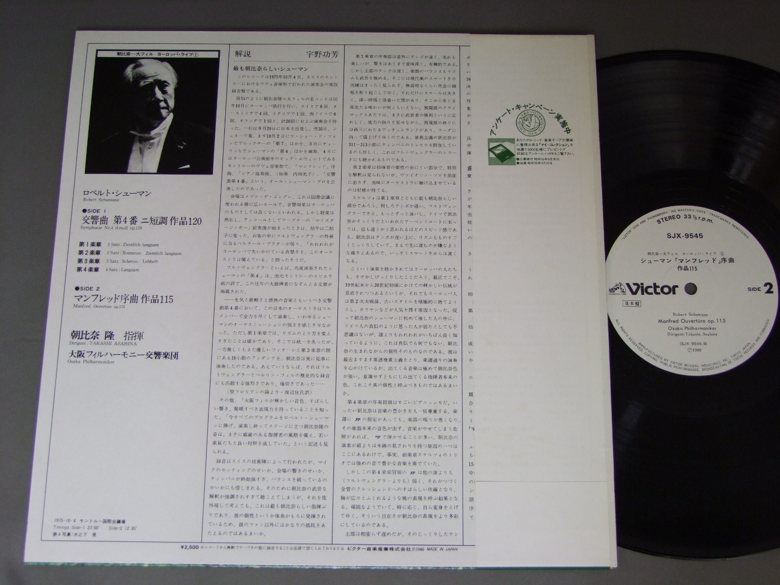TAKASHI ASAHINA朝比奈隆/SCHUMANN SYM.4シューマン 交響曲第4番ニ短調 SJX9545 製造国:日本盤 / Media:LP外観:EX盤の状態:EX+帯:EX 価格(税込):¥2,200(売約済) 送料 7inch:定形外郵便 360円~LP:定形外郵便 660円~送料は、注文の最終画面で確認頂けます。 > > TAKASHI ASAHINA/SCHUMANN SYM.4 外観 (EX)特記事項:特記なし。外観EXの共通説明:ダメージが限定的。中古品としては保存状態がよい方。シミ、ヨゴレ、スレ 少し~軽度。 盤の状態 (EX+)特記事項:薄いスリキズ・スレ少し。一見してきれいな状態です。盤EX+の共通説明:盤面の極薄いスリキズ、スレ少し程度 音に出そうなものは無いように見える(極軽微なソフトティック音は除く)。 帯の状態 (EX):特記なし。 その他:白見本盤 Tweet それぞれの画像をクリックすると、大きい写真が見られます こちらの商品もお勧めです 990円 KUBELIKクーベリック / MENDELSSOHN A MIDSUMMER NIGHT`S DREAMメンデルスゾーン-真夏の夜の夢 1,210円 KARAJAN - BERLINER PHIL.カラヤン - ベルリン・フィル / BEETHOVEN - SYM. NO5ベートーヴェン - 交響曲第5番 990円 FJELDSTAD - LONDON SYM. ORCH.フィエルスタード - ロンドン交響楽団 / GRIEG - PEER GYNTグリーグ - ペール・ギュント 990円 MENGELBERGウィレム・メンゲルベルク / SCHUBERT SYM. NO9シューベルト-交響曲第9番 `ザ・グレイト` 1,210円 BOHM - BERLIN PHIL.ベーム - ベルリン・フィル / BEETHOVEN - SYM. NO3 EROICAベートーヴェン交響曲第3番 英雄 1,320円 KARAJANカラヤン / HIFI KARAJANハイファイ・カラヤン 1,320円 MAAZEL - L`ORCHESTRE NATIONAL DE FRANCEマゼール - フランス国立管弦楽団 / HOLST - THE PLANETS MASTER SOUND PRESSINGホルスト - 惑星 MASTERSOUND盤 990円 WALTERワルター / HAYDN SYM.S NOS96`MIRACLE` & 102ハイドン 交響曲第96番`奇蹟` 交響曲第102番変