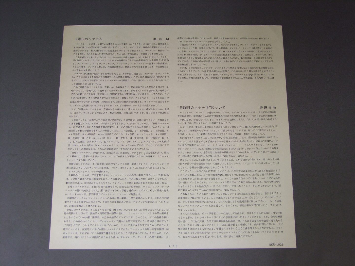 AKIRA YUYAMA/SUNDAY SONATINA日曜日のソナチネ SKR1025 製造国:日本盤 / Media:LP外観:VG+盤の状態:EX+ 価格(税込):¥1,540(売約済) 送料 7inch:定形外郵便 360円~LP:定形外郵便 660円~送料は、注文の最終画面で確認頂けます。 > > AKIRA YUYAMA/SUNDAY SONATINA 外観 (VG+)特記事項:ジャケ表面にシミ、よごれ。外観VG+の共通説明:ダメージやや有り。シミ、ヨゴレ、スレなど多少~やや多め。 盤の状態 (EX+)特記事項:薄いスリキズ・スレ少し。一見してきれいな状態です。盤EX+の共通説明:盤面の極薄いスリキズ、スレ少し程度 音に出そうなものは無いように見える(極軽微なソフトティック音は除く)。 その他:白見本盤 Tweet それぞれの画像をクリックすると、大きい写真が見られます こちらの商品もお勧めです 1,760円 NOBUAKI - TANAKA - TOKYO MIXED CHORUS田中信昭 - 東京混声合唱団 / MICHIO MAMIYA WORKS ( CONTEMPORARY JAPANESE CHORUS )間宮芳生作品集 オンゴー・オーニ他 1,320円 YUZO TOYAMA外山雄三 / HIROOKI OGAWA/SYM. THE CASTLE OF JAPAN小川寛興/交響曲 日本の城 1,650円 ROZHDESTVENSKYロジェストヴェンスキー / SCHONBERG-SYMPHONIC POEM PELLEAS UND MELISANDEシェーンベルク-交響詩 ペレアスとメリザンド 1,430円 THE NHK SYMPHONY ORCHESTRANHK交響楽団 / KING INTERNATIONAL CLASSIC SERIES現代日本の音楽 990円 HIROYUKI IWAKI岩城宏之 / YUZO TOYAMA - RHAPSODY etc外山雄三 - ラプソディー 他 1,320円 ROZHDESTVENSKYロジェストヴェンスキー / SCHOENBERG-SYMPHONIC POEM PELLEAS UND MELISANDEシェーンベルク-交響詩 ペレアスとメリザンド 2,090円 SHIGENOBU YAMAOKA-TAKANORI KOBAYASHI山岡重信-小林孝典 / KOHSAKU YAMADA-TONE POEM-MANDARA NO HANA-HISATADA OTAKA-JAPANESE SUITE山田耕作-曼陀羅の華 -尾高尚忠-日本組曲-平尾貴四男-砧-深井史郎-パロディ的な4楽章 1,210円 MICHAEL PONTI - MAGA - PHILHARMONIA HUNGARICAポンティ - マーガ - フィルハーニア・フンガリカ / MOSCHELES - PIANO CONCERTOイグナツ・モシュレス作品集