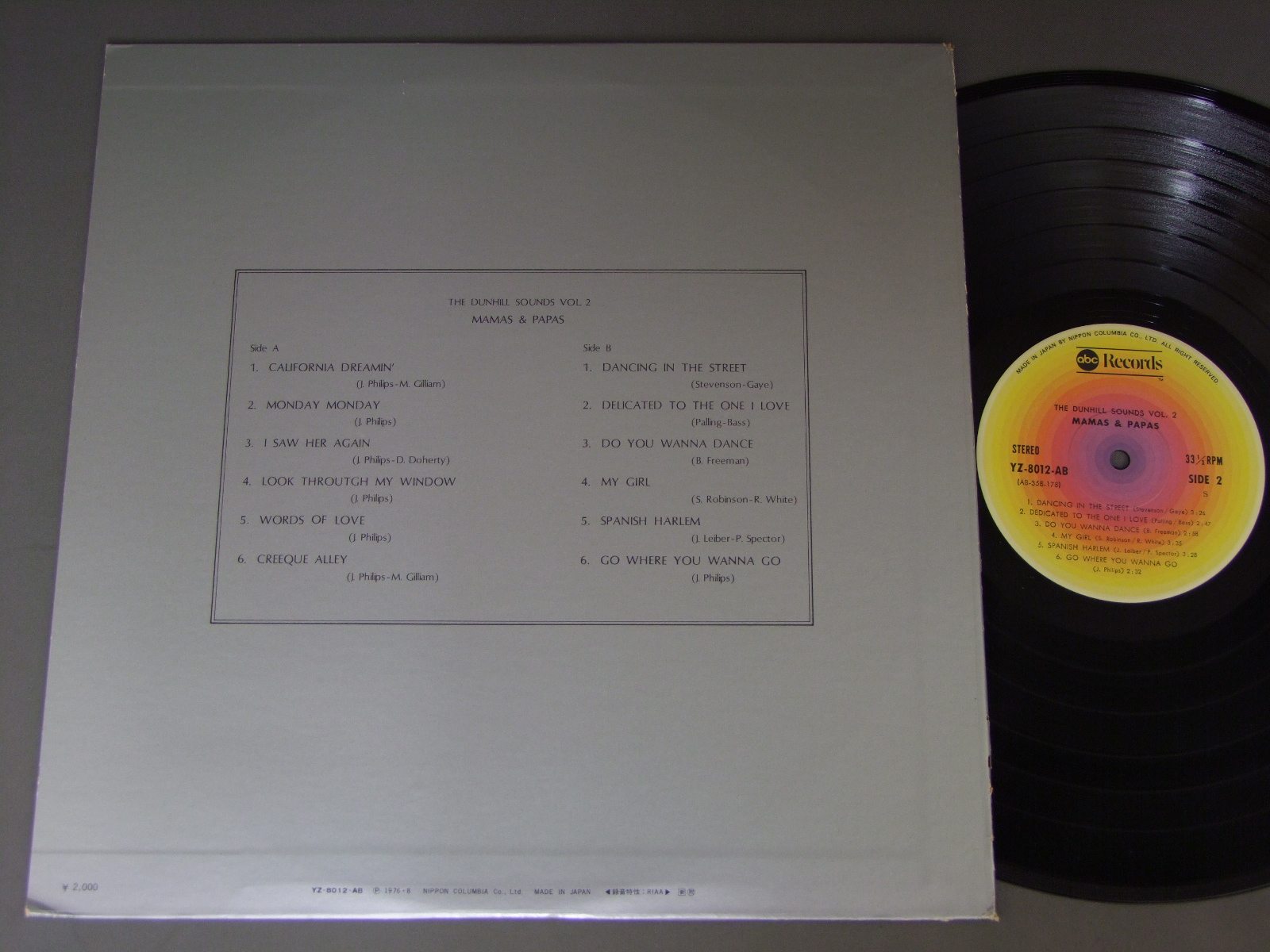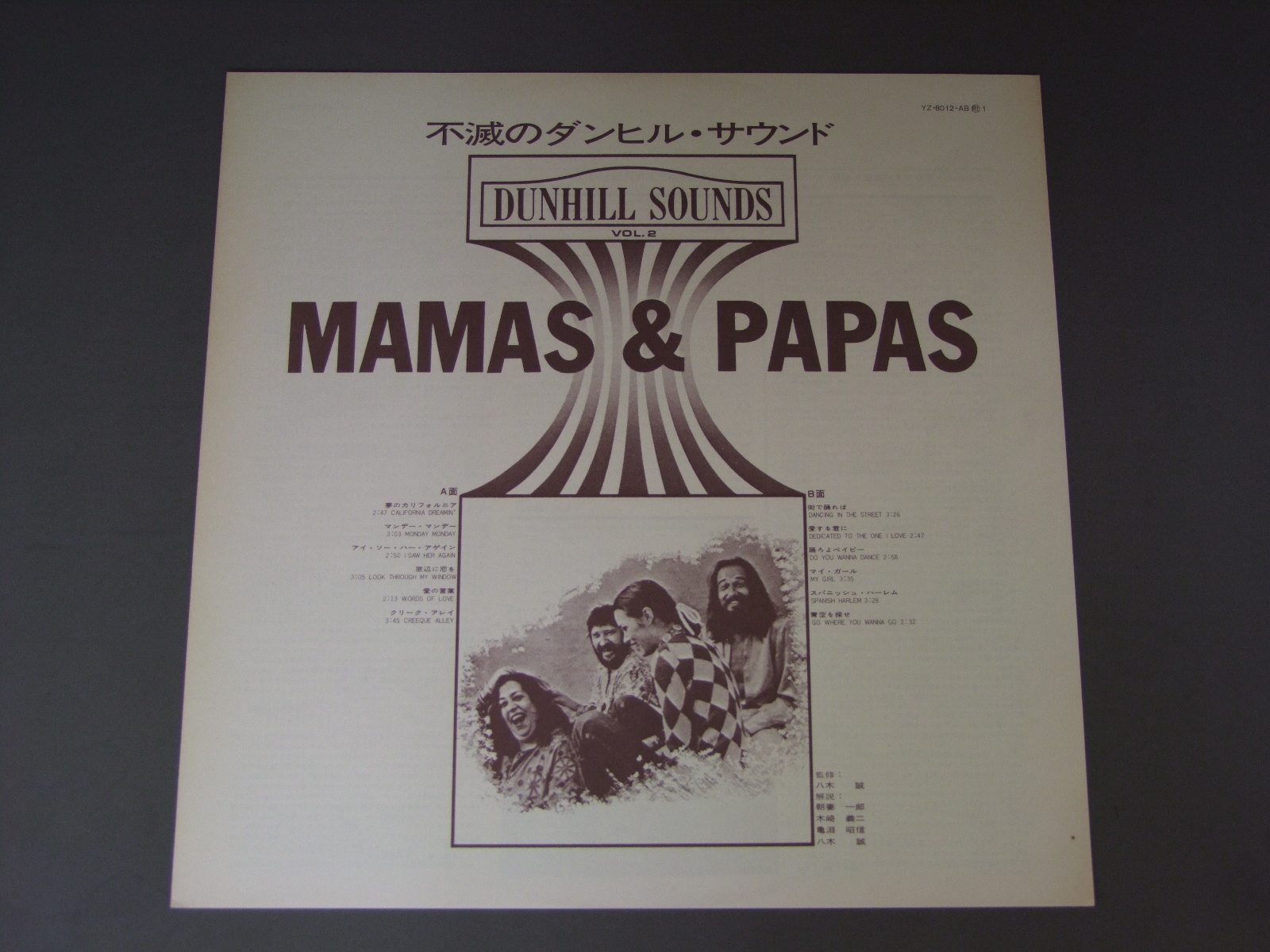 MAMAS & PAPASママス&パパス/DUNHILL SOUNDS VOL.2/MAMAS & PAPAS不滅のダンヒル・サウンズ YZ8012AB 製造国:日本盤 / Media:LP外観:EX盤の状態:EX+ 価格(税込):¥550(売約済) 送料 7inch:定形外郵便 360円~LP:定形外郵便 660円~送料は、注文の最終画面で確認頂けます。 > > MAMAS & PAPAS/DUNHILL SOUNDS VOL.2/MAMAS & PAPAS 外観 (EX)特記事項:背やヘリにスレ有。外観EXの共通説明:ダメージが限定的。中古品としては保存状態がよい方。シミ、ヨゴレ、スレ 少し~軽度。 盤の状態 (EX+)特記事項:薄いスリキズ・スレ少し。一見してきれいな状態です。盤EX+の共通説明:盤面の極薄いスリキズ、スレ少し程度 音に出そうなものは無いように見える(極軽微なソフトティック音は除く)。 Tweet それぞれの画像をクリックすると、大きい写真が見られます こちらの商品もお勧めです 1,980円 STYXスティクス / CAUGHT IN THE ACT LIVEスティクス・ライブ 770円 STYXスティクス / BEST OF STYXレディ ( スティクス・ベスト ) 880円 SANTANAサンタナ / SANTANAサンタナのすべて 990円 STYXスティクス / PARADISE THEATERパラダイス・シアター 770円 MONKEESモンキーズ / PISCES AQUARIUS CAPRICORN &JONES LTD.スター・コレクター 440円 BOB SEGER & THE SILVER BULLET BANDボブ・シーガー&ザ・シルバー・ブレット・バンド / DISTANCEディスタンス 770円 SANTANAサンタナ / WELCOMEウェルカム 1,210円 MOUNTAINマウンテン / FLOWERS OF EVILマウンテン・ライヴ 悪の華(フィルモアに咲いた悪の華)