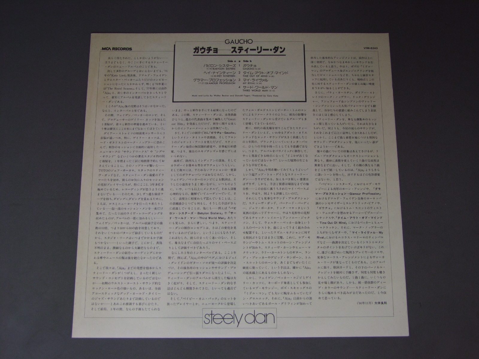 STEELY DANスティーリー・ダン/GAUCHOガウチョ VIM6243 製造国:日本盤 / Media:LP外観:EX盤の状態:EX+ 価格(税込):¥770(売約済) 送料 7inch:定形外郵便 360円~LP:定形外郵便 660円~送料は、注文の最終画面で確認頂けます。 > > STEELY DAN/GAUCHO 外観 (EX)特記事項:ジャケ表面にシミ有り。外観EXの共通説明:ダメージが限定的。中古品としては保存状態がよい方。シミ、ヨゴレ、スレ 少し~軽度。 盤の状態 (EX+)特記事項:薄いスリキズ・スレ少し。一見してきれいな状態です。盤EX+の共通説明:盤面の極薄いスリキズ、スレ少し程度 音に出そうなものは無いように見える(極軽微なソフトティック音は除く)。 Tweet それぞれの画像をクリックすると、大きい写真が見られます こちらの商品もお勧めです 1,320円 HEARTハート / BEBE LE STRANGEべべ・ル・ストレンジ 770円 TOTO / ISOLATIONアイソレーション 550円 CHICAGOシカゴ / GREAT CHICAGO栄光のシカゴ 440円 J.GEILS BANDJ.ガイルズ・バンド / SANCTUARY.サンクチュアリー(禁猟区) 1,320円 STYXスティクス / KILROY WAS HEREキルロイ・ワズ・ヒア 990円 SANTANAサンタナ / AMIGOSアミーゴ !(同胞) 1,320円 KENNY ROGERS & THE FIRSY EDITIONケニー・ロジャーズとファースト・エディション / TELL IT ALL BROTHERテル・イット・オール・ブラザー 1,320円 QUARTER FLASHクオーター・フラッシュ / QUARTER FLASHミッドナイト・フラッシュ
