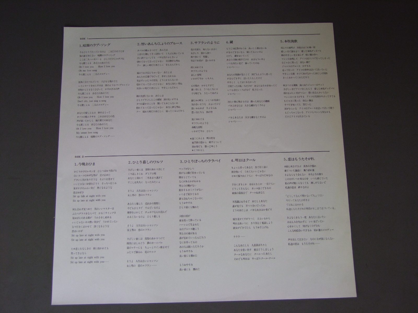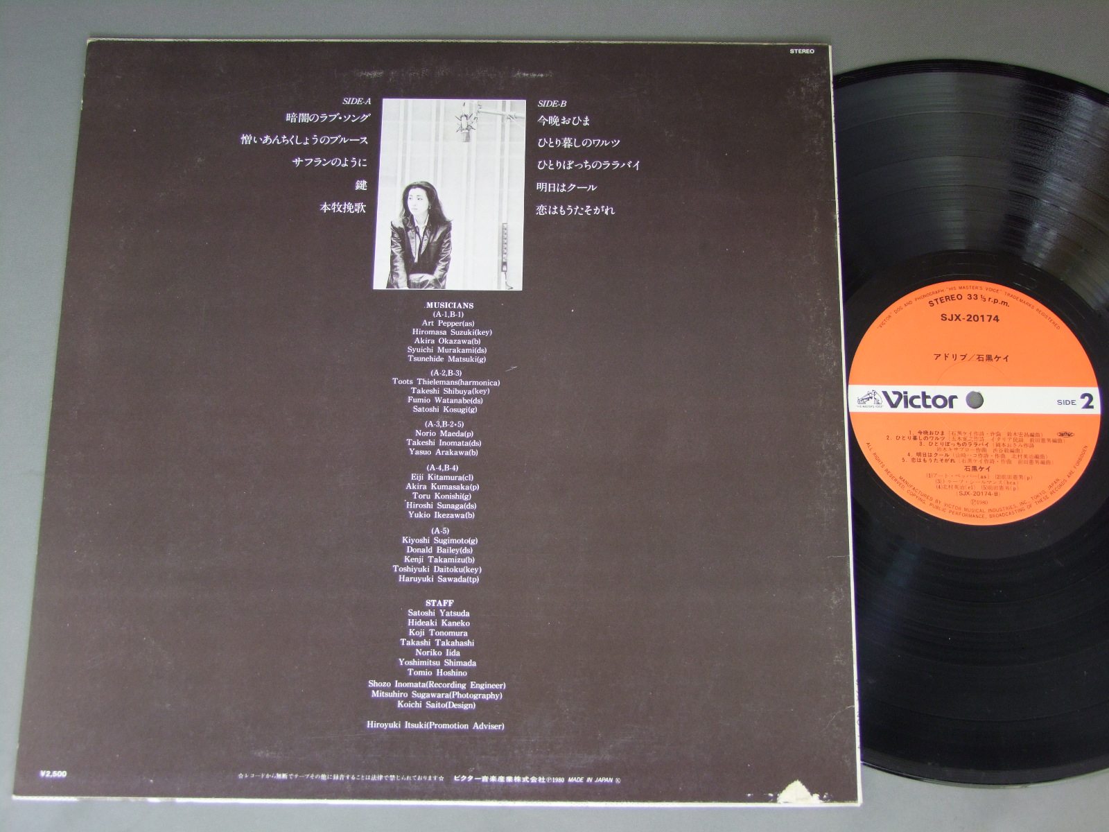 KEI ISHIGURO石黒ケイ/アドリブ SJX20174 製造国:日本盤 / Media:LP外観:EX盤の状態:EX 価格(税込):¥1,650(売約済) 送料 7inch:定形外郵便 360円~LP:定形外郵便 660円~送料は、注文の最終画面で確認頂けます。 > > KEI ISHIGURO/ 外観 (EX)特記事項:特記なし。外観EXの共通説明:ダメージが限定的。中古品としては保存状態がよい方。シミ、ヨゴレ、スレ 少し~軽度。 盤の状態 (EX)特記事項:薄いスリキズ・スレ少しある感じ。一見してきれいな感じです。盤EXの共通説明:盤面のスリキズが薄いものが少し~軽度 音に出そうなものは無いように見える(軽微なソフトティック音は除く)。 Tweet それぞれの画像をクリックすると、大きい写真が見られます こちらの商品もお勧めです 990円 MAHALIA JACKSONマヘリア・ジャクソン / MAHALIA JACKSON STORYマヘリア・ジャクソン・ストーリー 660円 TONY MARTINトニー・マーチン / BEST OF TONY MARTINベスト・オブ・トニー・マーチン 770円 NANCY WILSONナンシー・ウィルスン / BUT BEAUTIFULバット・ビューティフル 990円 THREE SOUNDS / THEREE MOODS 1,320円 SWINGLE SINGERSスイングル・シンガール / JAZZ SEBASTIEN BACHジャズ・セバスチャン・バッハ 990円 NANCY WILSONナンシー・ウィルスン / NANCY WILSON BEST 20ナンシー・ウィルスン・ベスト20 770円 BRENDA LEEブレンダ・リー / BEST OF BRENDA LEEブレンダ・リー大全集 770円 SWINGLE SINGERSスイングル・シンガーズ / JAZZ SEBASTIEN BACHジャズ・セバスチャン・バッハ