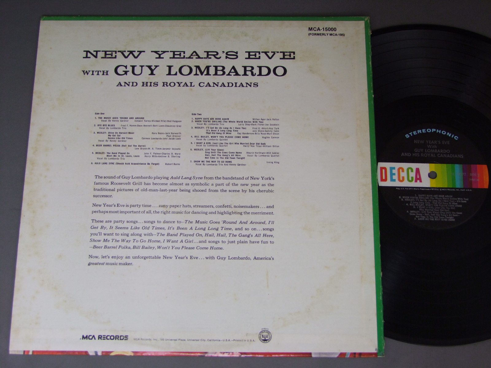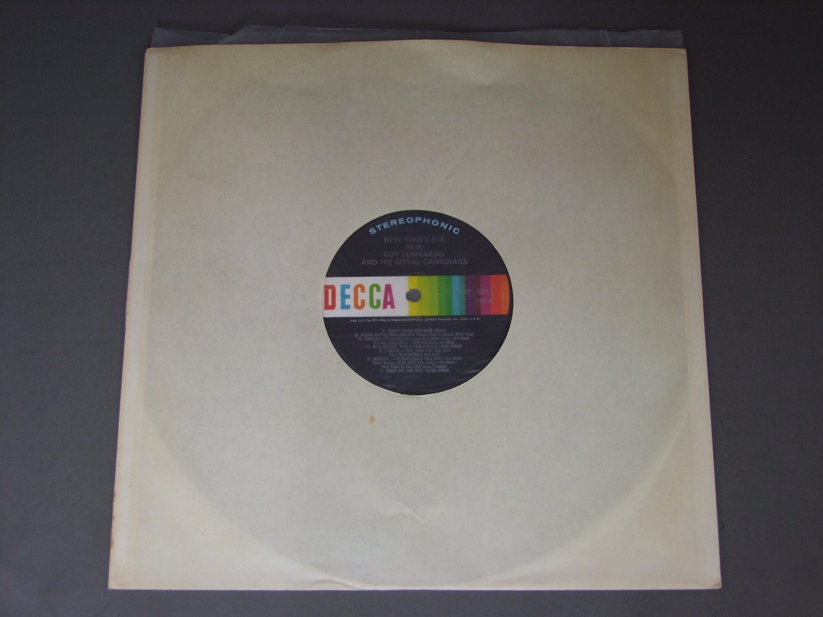 GUY LOMBARDO AND HIS ROYAL CANADIANS/NEW YEAR`S EVE WITH GUY LOMBARDO DL74177 製造国:米国盤 / Media:LP外観:VG+盤の状態:EX 価格(税込):¥550(売約済) 送料 7inch:定形外郵便 360円~LP:定形外郵便 660円~送料は、注文の最終画面で確認頂けます。 > > GUY LOMBARDO AND HIS ROYAL CANADIANS/NEW YEAR`S EVE WITH GUY LOMBARDO 外観 (VG+)特記事項:ヘリにスレ有。ジャケ表面にシミ有。外観VG+の共通説明:ダメージやや有り。シミ、ヨゴレ、スレなど多少~やや多め。 盤の状態 (EX)特記事項:薄いスリキズ・スレ軽くある感じ。殆どが軽微なものの様子です。盤EXの共通説明:盤面のスリキズが薄いものが少し~軽度 音に出そうなものは無いように見える(軽微なソフトティック音は除く)。 Tweet それぞれの画像をクリックすると、大きい写真が見られます こちらの商品もお勧めです 770円 GUY LOMBARDO / DANCE TO THE SONGS EVERYBODY KNOWS 990円 SPIKE JONES / KING OF CORN 770円 MICHEL LEGRANDミッシェル・ルグラン / I LOVE PARIS 880円 CLASSIC JAZZ ENSEMBLE / CLASSIC BLUES 660円 PRESTIGE / 25 YEARS OF PRISTIGE 1,100円 BILY TALOR / CROSS SECTION 1,100円 PETE CHRISTLIEB & WARNE MARSH QUINTET / APOGEE 1,320円 DOC EVANS / CURE FOR THE BLUES