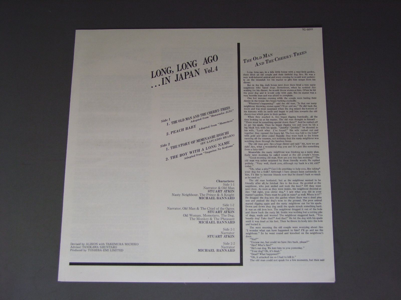 /OLD STORIES OF JAPAN ENGLISH VERSION VOL4英語版 日本むかしばなし(VOL.4) TC50111 製造国:日本盤 / Media:LP外観:EX盤の状態:EX帯:EX- 価格(税込):¥1,100(売約済) 送料 7inch:定形外郵便 360円~LP:定形外郵便 660円~送料は、注文の最終画面で確認頂けます。 > > /OLD STORIES OF JAPAN ENGLISH VERSION VOL4 外観 (EX)特記事項:ヘリにスレ有。ジャケ表面にシミ、よごれ有、スレ有。カードにシミ、よごれ有。外観EXの共通説明:ダメージが限定的。中古品としては保存状態がよい方。シミ、ヨゴレ、スレ 少し~軽度。 盤の状態 (EX)特記事項:薄いスリキズ・スレ軽くある感じ。軽微なものの様子です。盤EXの共通説明:盤面のスリキズが薄いものが少し~軽度 音に出そうなものは無いように見える(軽微なソフトティック音は除く)。 帯の状態 (EX-):シミ有。 その他:白見本盤 Tweet それぞれの画像をクリックすると、大きい写真が見られます こちらの商品もお勧めです 1,870円 GEORGE RYLANDS / SHAKESPEARE-HENRY V 770円 DOCUMENTドキュメント / JAPAN `71にっぽん `71 880円 1971 AOYAMA GAKUIN UNIVERSITY青山学院大学第97期卒業委員会(1972年) / 出合い 550円 東京寮歌会 / 思い出の寮歌集 990円 SOUND EFFECT音響 / WORLD POLICE世界のパトカー 770円 SOUND EFFECT効果音 / VARIOUS SOUND EFFECTS新効果音 効果アラカルト篇 550円 QUADSONIC STEREO RECORD4チャンネル・ステレオの魅力 / OTTO 1,320円 SOUND EFFECTS効果音 / JET FIGHTER2世界のスーパー・ジェット・ファイター2