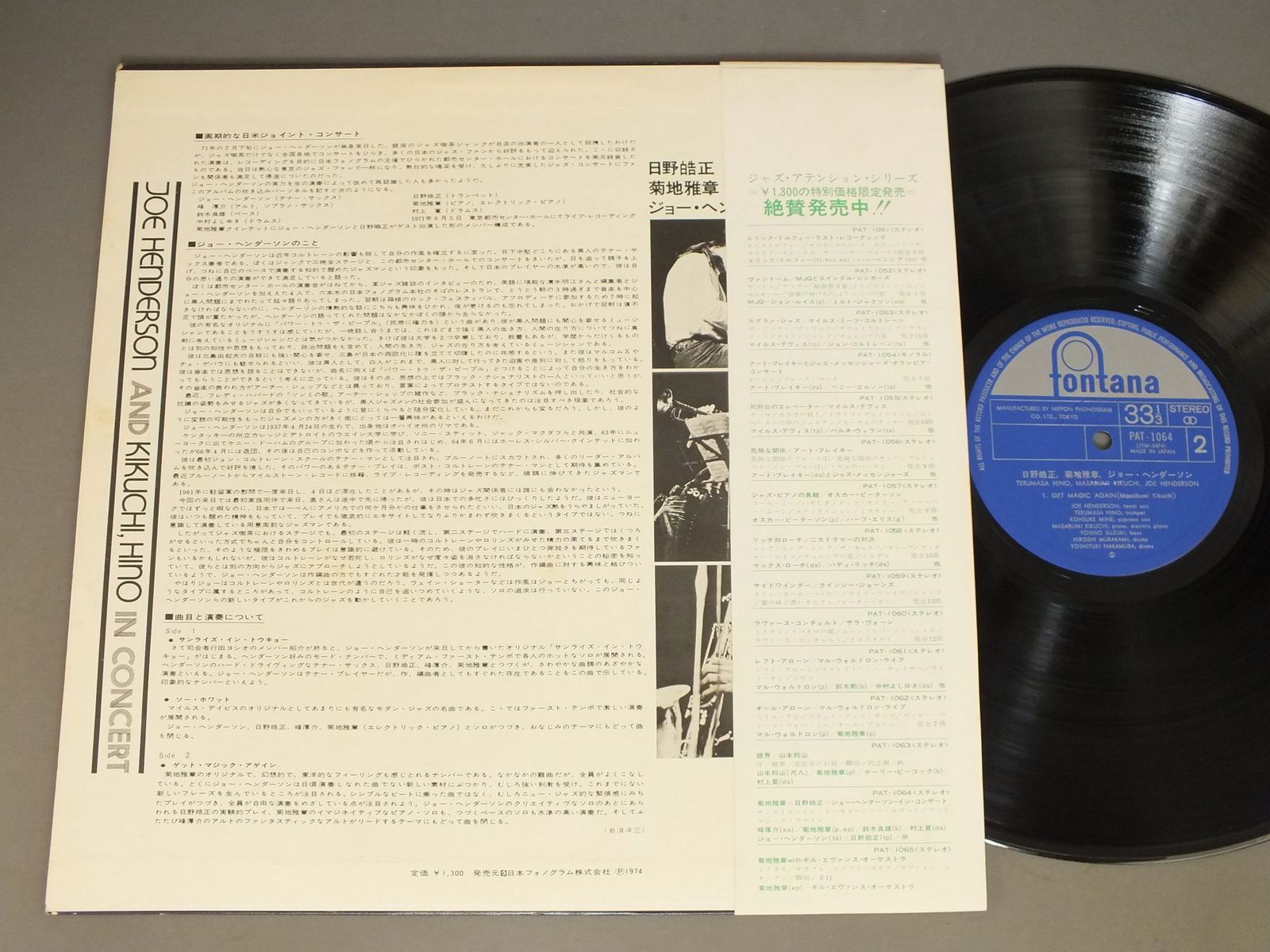 JOE HENDERSON AND KIKUCHI.HINO日野皓正.菊地雅章.ジョー・ヘンダーソン/JOE HENDERSON AND KIKUCHI.HINO IN CONCERT日野皓正.菊地雅章.ジョー・ヘンダーソン PAT1064 製造国:日本盤 / Media:LP外観:EX盤の状態:EX+帯:EX 価格(税込):¥2,750(売約済) 送料 7inch:定形外郵便 360円~LP:定形外郵便 660円~送料は、注文の最終画面で確認頂けます。 > > JOE HENDERSON AND KIKUCHI.HINO/JOE HENDERSON AND KIKUCHI.HINO IN CONCERT 外観 (EX)特記事項:裏ジャケにシミ軽。外観EXの共通説明:ダメージが限定的。中古品としては保存状態がよい方。シミ、ヨゴレ、スレ 少し~軽度。 盤の状態 (EX+)特記事項:薄いスリキズ・スレ少し。一見してきれいな状態です。盤EX+の共通説明:盤面の極薄いスリキズ、スレ少し程度 音に出そうなものは無いように見える(極軽微なソフトティック音は除く)。 帯の状態 (EX):シミ有。 Tweet それぞれの画像をクリックすると、大きい写真が見られます こちらの商品もお勧めです 1,320円 MODERN JAZZ QUARTETMJQ / BASED ON BACH & THE BLUESバッハとブルースを基に 1,980円 YASUTAKA TSUTSUI + YOSUKE YAMASHITA etc筒井康隆 + 山下洋輔他 / INNER SPACE OF YASUTAKA TSUTSUI筒井康隆全集プレゼント INNER SPACE OF YASUTAKA TSUTSUI 1,650円 KEITH JARRETTキース・ジャレット / FACING YOUフェイシング・ユー 1,210円 ERROLL GARNERエロール・ガーナー / CONCERT BY THE SEACONCERT BY THE SEA 990円 JAY HOGGARDジェイ・ホガード / LOVE SURVIVESラヴ・サーヴァイブズ 1,210円 MAKOTO OZONE小曽根真 / AFTERアフター 1,320円 JAMES LAST BANDジェームス・ラスト・バンド / SEDUCTIONセダクション 1,210円 STUFFスタッフ / LIVE STUFFライヴ・スタッフ