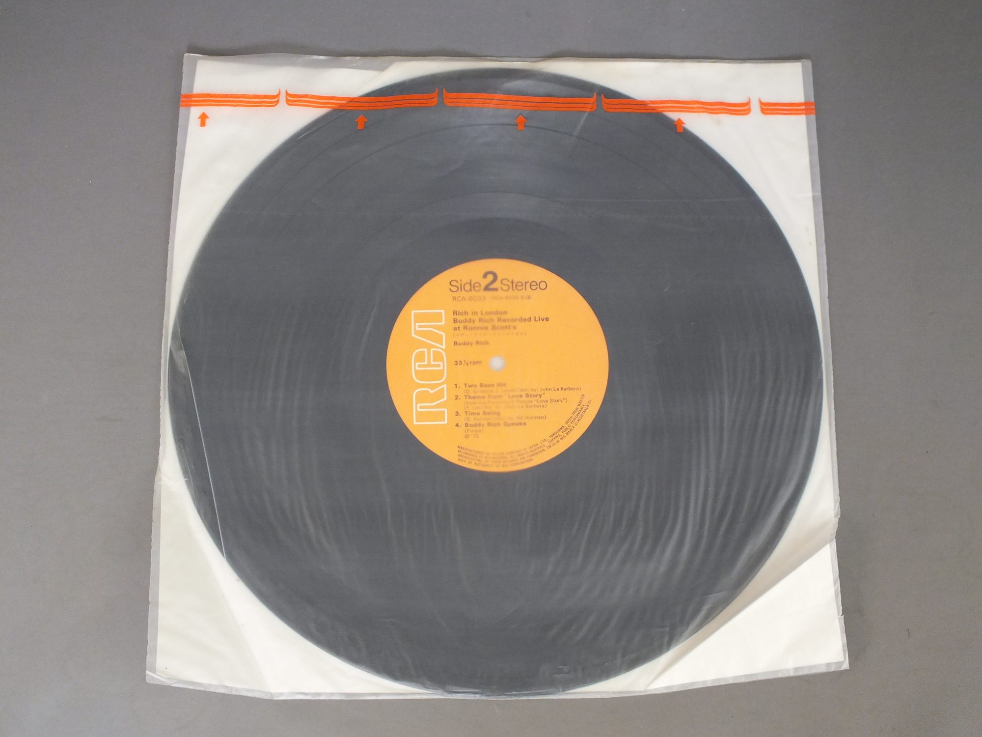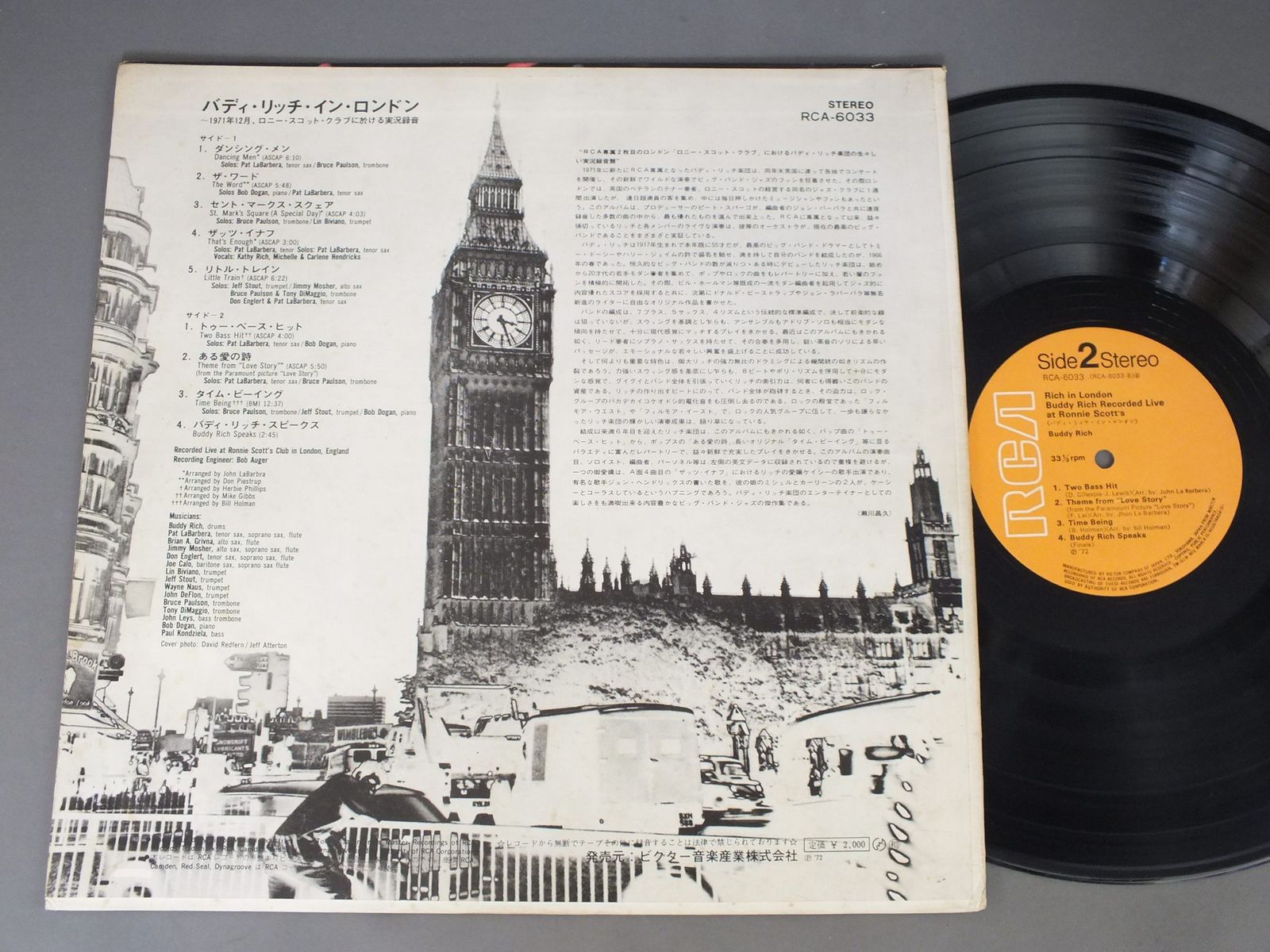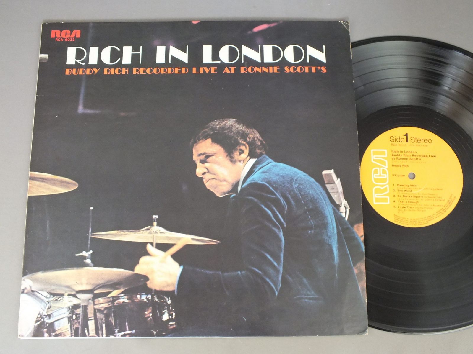 BUDDY RICHバディ・リッチ/RICH IN LONDONバディ・リッチ・イン・ロンドン RCA6033 製造国:日本盤 / Media:LP外観:EX盤の状態:EX 価格(税込):¥660(売約済) 送料 7inch:定形外郵便 360円~LP:定形外郵便 660円~送料は、注文の最終画面で確認頂けます。 > > BUDDY RICH/RICH IN LONDON 外観 (EX)特記事項:ヘリにスレ有。裏ジャケ表面にシミ、よごれ有。外観EXの共通説明:ダメージが限定的。中古品としては保存状態がよい方。シミ、ヨゴレ、スレ 少し~軽度。 盤の状態 (EX)特記事項:薄いスリキズ・スレ少しある感じ。一見してきれいな感じです。盤EXの共通説明:盤面のスリキズが薄いものが少し~軽度 音に出そうなものは無いように見える(軽微なソフトティック音は除く)。 Tweet それぞれの画像をクリックすると、大きい写真が見られます こちらの商品もお勧めです 990円 JAMES NEWTONジェームズ・ニュートン / DAYDREAMデイドリーム 1,980円 EIJI KITAMURA北村英治 / APRIL DATE ( MASTER SOUND PRESSING )エイプリル・デイト (マスターサウンド盤) 660円 EDDIE CONDONエディ・コンドン / CONDON A LA CARTEコンドン・ア・ラ・カルト 770円 CHARLIE PARKERチャーリー・パーカー / CHARLIE PARKER ON SAVOY VOL7チャーリー・パーカー・オン・サヴォイVOL7 1,650円 COZY POWELLコージー・パウエル / TILTサンダーストーム 770円 SADAO WATANABE渡辺貞夫 / MY DEAR LIFEマイ・ディア・ライフ 990円 CHARLIE PARKERチャーリー・パーカー / CHARLIE PARKER ON SAVOY VOL4チャーリー・パーカー・オン・サヴォイVOL4 770円 JOHN KLEMMERジョン・クレマー / FINESSEフィネス
