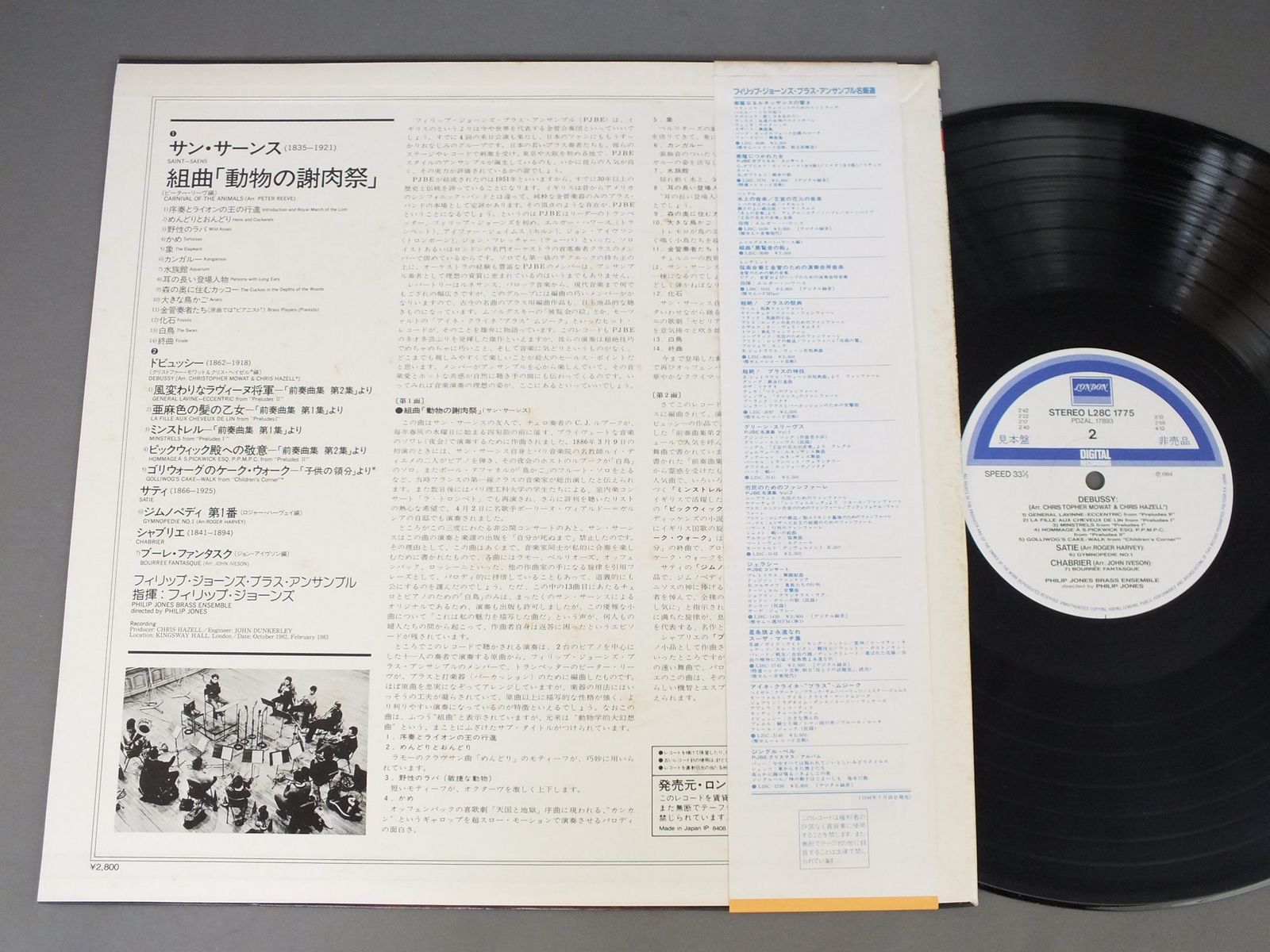 PHILIP JONES BRASS ENSEMBLEフィリップジョーンズ・ブラス・アンサンブル/SAINT-SAENS CARNIVAL OF THE ANIMALSサン・サーンス 動物の謝肉祭 L28C1775 製造国:日本盤 / Media:LP外観:EX-盤の状態:EX+帯:EX 価格(税込):¥770(売約済) 送料 7inch:定形外郵便 360円~LP:定形外郵便 660円~送料は、注文の最終画面で確認頂けます。 > > PHILIP JONES BRASS ENSEMBLE/SAINT-SAENS CARNIVAL OF THE ANIMALS 外観 (EX-)特記事項:ジャケ表面にシミ、よごれ有。外観EX-の共通説明:ダメージ軽度~多少。 中古品としては普通の状態。シミ、ヨゴレ、スレなど軽く~多少。 盤の状態 (EX+)特記事項:薄いスリキズ・スレ少し。一見してきれいな状態です。盤EX+の共通説明:盤面の極薄いスリキズ、スレ少し程度 音に出そうなものは無いように見える(極軽微なソフトティック音は除く)。 帯の状態 (EX):シミ有。 その他:白見本盤 Tweet それぞれの画像をクリックすると、大きい写真が見られます こちらの商品もお勧めです 1,386円 7th ELECTONE COMPETITION第7回エレクトーン・コンクール / GRAND PRIX ALBUM栄光のグランプリ・アルバム 770円 K.AKIYAMA秋山和慶 / TOKYO KOSEI WIND ORCH.VOL.5 WATER MUSIC SUITE佼成 水上の音楽 990円 MICHIO MAMIYA間宮芳生 / DEUX TABLEAUX POUR ORCHESTREオーケストラのための2つのタブロー 1,430円 URATO WATANABE渡辺浦人 / SYMPHONIC SUITE`YAJIN`交響組曲「野人」 990円 JAPAN NAVY BRASS BAND海上自衛隊東京音楽隊 他 / BEST 25吹奏楽によるクラシック&オリジナル名曲ベスト25 770円 NANAKO NOGUCHI FL野口奈々子 / FLUTE SHOOL PLACTICEフルート教室 フルート・ピッコロ初級練習 770円 ROSTAL AND SCHAEFER / BEATLES CONCERTOビートルズ・コンチェルト 990円 KANTO DAIICHI HIGHSCHOOL WIND ORCHESTRA関東第一高等学校ウインド・オーケストラ / AT GROSSER MUSIKVEREINSSAAL WIEN 19851985年オランダ・ケルクラード世界音楽コンテスト第1位受賞記念盤