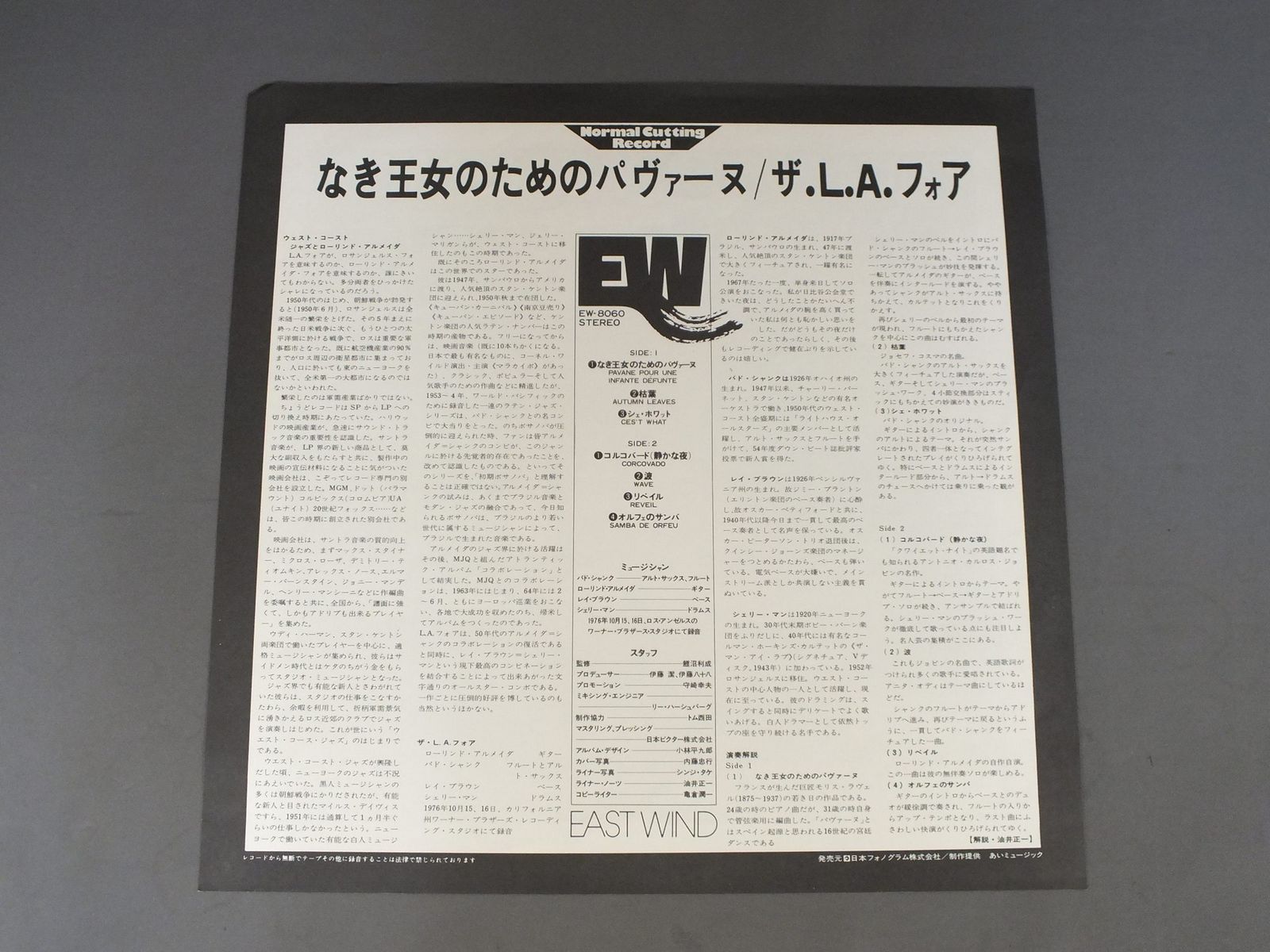 L.A.4L.A.フォア/PAVANE POUR UNE INFANTE DEFUNTEなき王女のためのパヴァーヌ EW8060 製造国:日本盤 / Media:LP外観:EX+盤の状態:EX帯:EX 価格(税込):¥770(売約済) 送料 7inch:定形外郵便 360円~LP:定形外郵便 660円~送料は、注文の最終画面で確認頂けます。 > > L.A.4/PAVANE POUR UNE INFANTE DEFUNTE 外観 (EX+)特記事項:特記なし。外観EX+の共通説明:中古としては美品、一見してきれいでダメージが軽微。シミ、ヨゴレ、スレ有っても僅か~少し。 盤の状態 (EX)特記事項:長めのスレキズあり。音には影響ない感じの薄いスレです。盤EXの共通説明:盤面のスリキズが薄いものが少し~軽度 音に出そうなものは無いように見える(軽微なソフトティック音は除く)。 帯の状態 (EX):特記なし。 Tweet それぞれの画像をクリックすると、大きい写真が見られます こちらの商品もお勧めです 770円 SHAKATAKシャカタク / INVITATIONSインヴィテーション 770円 SHAKATAKシャカタク / INVITATIONSインヴィテーション 1,210円 FUSE ONEフューズ・ワン / FUSEフューズ 770円 HERB ALPERTハーブ・アルパート / RISEライズ 770円 GEORGE BENSONジョージ・ベンソン / IN CONCERTサマータイム2001 1,650円 TAKASHI KAKO加古隆 / TOSCANINI EDITIONAソロ・コンサート 1,210円 CRUSADERSクルセイダーズ / GHETTO BLLASTERゲットー・プラスター 440円 NATIVE SONネイティブ・サン / SAVANNA HOT LINEサバンナ・ホットライン