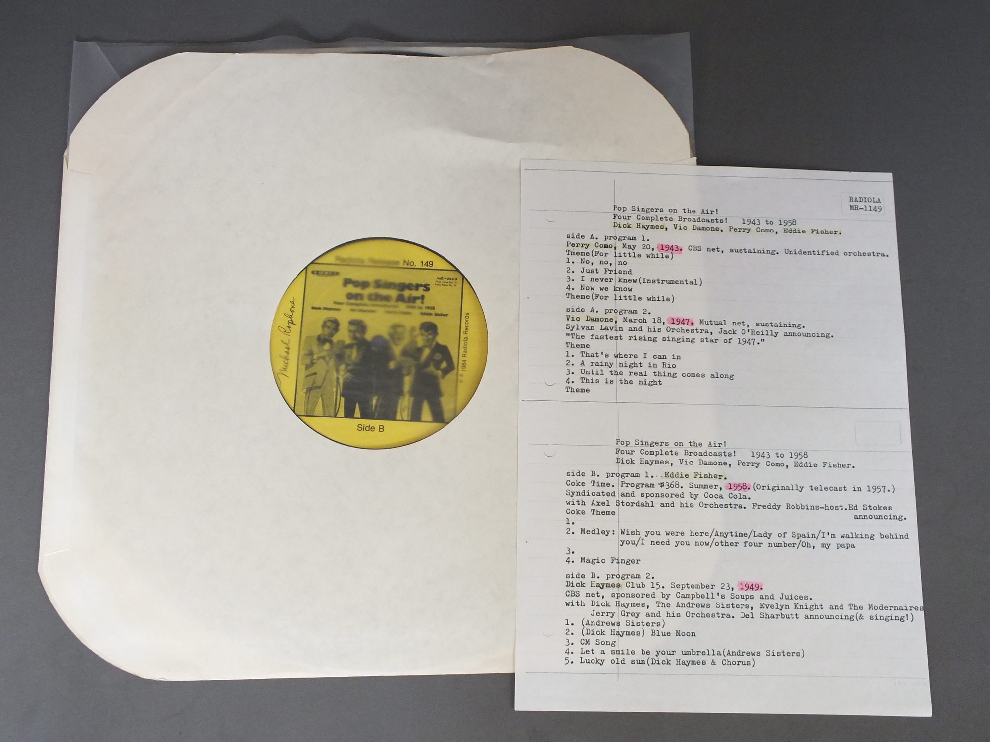 DICK HAYMES VIC DAMONE etc/POP SINGERS ON THE AIR! MR1149 製造国:米国盤 / Media:LP外観:EX盤の状態:EX+ 価格(税込):¥440(売約済) 送料 7inch:定形外郵便 360円~LP:定形外郵便 660円~送料は、注文の最終画面で確認頂けます。 > > DICK HAYMES VIC DAMONE etc/POP SINGERS ON THE AIR! 外観 (EX)特記事項:ヘリにスレ有。外観EXの共通説明:ダメージが限定的。中古品としては保存状態がよい方。シミ、ヨゴレ、スレ 少し~軽度。 盤の状態 (EX+)特記事項:薄いスリキズ・スレ少し。一見してきれいな状態です。盤EX+の共通説明:盤面の極薄いスリキズ、スレ少し程度 音に出そうなものは無いように見える(極軽微なソフトティック音は除く)。 Tweet それぞれの画像をクリックすると、大きい写真が見られます こちらの商品もお勧めです 770円 ARTIE SHAW ORCHESTRA / BORN TO SWING 1,540円 BENNY GOODMAN / BENNY GOODMAN AND THE GIANTS OF SWING 1,320円 YANK LAWSON AND BOB HAGGART / WORLD`S GREATEST JAZZBAND 1,100円 CLAUDE HOPKINS & HIS ORCHESTRA / 1932-1933 1940 550円 BUNNY BERIGAN & ORIGINAL DIXIELAND JAZZ BAND / SATURDAY NIGHT SWING CLUB 1936 770円 LES BROWN & HIS BAND OF RENOWN / SWINGIN` SOUND 770円 ANDY KIRK AND HIS CLOUDS OF JOY / INSTRUMENTALLY SPEKING 1936 & 42 1,210円 MONTE BALLOU AND HIS NEW CASTLE JAZZ BAND / THEY`RE MOVING WILLIE`S GRAVE TO DIG A SEWER (BUTCH THOMPSON AUTOGRAPHED )THEY`RE MOVING WILLIE`S GRAVE TO DIG A SEWER(BUTCH THOMPSONサイン付)