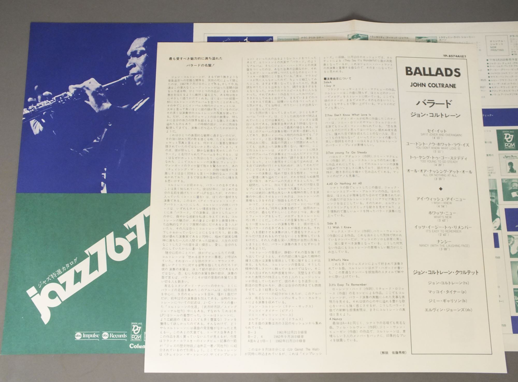 JOHN COLTRANE QUARTETジョン・コルトレーン/BALLADSバラード YP8574AI 製造国:日本盤 / Media:LP外観:EX盤の状態:EX+帯:EX 価格(税込):¥1,320(売約済) 送料 7inch:定形外郵便 360円~LP:定形外郵便 660円~送料は、注文の最終画面で確認頂けます。 > > JOHN COLTRANE QUARTET/BALLADS 外観 (EX)特記事項:見開きにシミ、よごれ有。外観EXの共通説明:ダメージが限定的。中古品としては保存状態がよい方。シミ、ヨゴレ、スレ 少し~軽度。 盤の状態 (EX+)特記事項:極薄いスリキズ・スレ少し。一見してきれいな状態です。盤EX+の共通説明:盤面の極薄いスリキズ、スレ少し程度 音に出そうなものは無いように見える(極軽微なソフトティック音は除く)。 Tweet それぞれの画像をクリックすると、大きい写真が見られます こちらの商品もお勧めです 1,320円 EDDIE COSTA TRIOエディ・コスタ・トリオ / HOUSE OF BLUE LIGHTSハウス・オブ・ブルー・ライツ 880円 WILTON FELDERウイルトン・フェルダー / WE ALL HAVE A STAR星の伝説 1,320円 WILTON FELDERウィルトン・フェルダー / SECRETSシークレッツ 1,210円 MAYNARD FURGUSONメイナード・ファーガソン / WORLD OF MAYNARD FURGUSONM・F・ホーン・1 770円 MATT DENNIS & RED NORVOマット・デニス & レッド・ノーヴォ / SOME OF MY FAVORITESサム・オブ・マイ・フェイバリッツ 990円 YOSHIAKI MASUO増尾好秋 / SAILING WONDERセイリング・ワンダー 880円 SADAO WATANABE渡辺貞夫 / MY DEAR LIFEマイ・ディア・ライフ 660円 SADAO WATANABE渡辺貞夫 / CALIFORNIA SHOWERカリフォルニア・シャワー