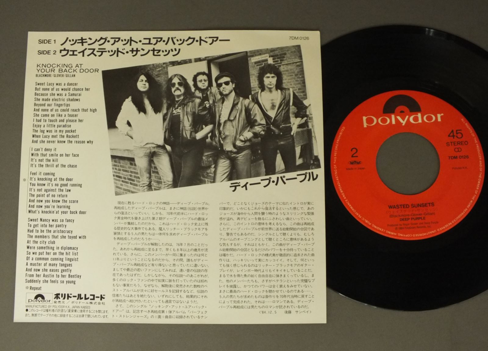 DEEP PURPLEディープ・パープル/KNOCKING AT YOUR BACK DOORノッキング・アット・ユア・バック・ドアー 7DM0126 製造国:日本盤 / Media:7inch外観:EX盤の状態:EX 価格(税込):¥1,100(売約済) 送料 7inch:定形外郵便 360円~LP:定形外郵便 660円~送料は、注文の最終画面で確認頂けます。 > > DEEP PURPLE/KNOCKING AT YOUR BACK DOOR 盤の状態 (EX)特記事項:薄いスリキズ・スレ軽くある感じ。軽微なものの様子です。盤EXの共通説明:盤面のスリキズが薄いものが少し~軽度 音に出そうなものは無いように見える(軽微なソフトティック音は除く)。 Tweet それぞれの画像をクリックすると、大きい写真が見られます こちらの商品もお勧めです 1,210円 DEEP PURPLEディープ・パープル / PURPLE PASSAGES紫の軌跡 1,980円 DEEP PURRLEディープ・パープル / LAST CONCERT IN JAPANラスト・コンサート・イン・ジャパン