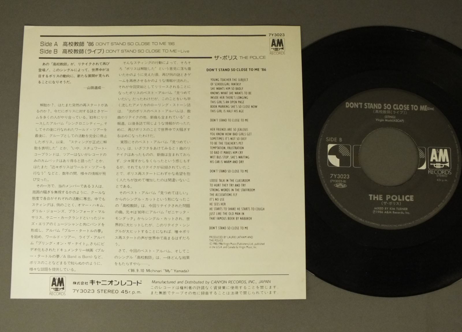 POLICEポリス/DON`T STAND SO CLOSE TO ME `86高校教師`86 7Y3023 製造国:日本盤 / Media:7inch外観:EX+盤の状態:EX+ 価格(税込):¥330(売約済) 送料 7inch:定形外郵便 360円~LP:定形外郵便 660円~送料は、注文の最終画面で確認頂けます。 > > POLICE/DON`T STAND SO CLOSE TO ME `86 盤の状態 (EX+)特記事項:薄いスリキズ・スレ少し。一見してきれいな状態です。盤EX+の共通説明:盤面の極薄いスリキズ、スレ少し程度 音に出そうなものは無いように見える(極軽微なソフトティック音は除く)。 Tweet それぞれの画像をクリックすると、大きい写真が見られます こちらの商品もお勧めです 1,320円 DEAD OR ALIVEデッド・オア・アライヴ / YOUTHQUAKEユースクエイク 770円 ADAM AND THE ANTS / KINGS OF THE WILD FRONTIER 440円 TUBESチューブス / OUTSIDE INSIDEアウトサイド・インサイド 1,210円 HARDCHOIRハードクワイア / HARDCHOIR華麗なる戦慄 770円 CULTURE CLUB / KISSING TO BE CLEVER 1,320円 BLONDIEブロンディ / AUTOAMERICANオート・アメリカン 770円 BOOMTOWN RATSブームタウン・ラッツ / MONDO BONGOモンド・ボンゴ 1,320円 DOOL BY DOOLドール・バイ・ドール / GYPSY BLOODジプシー・ブラッド