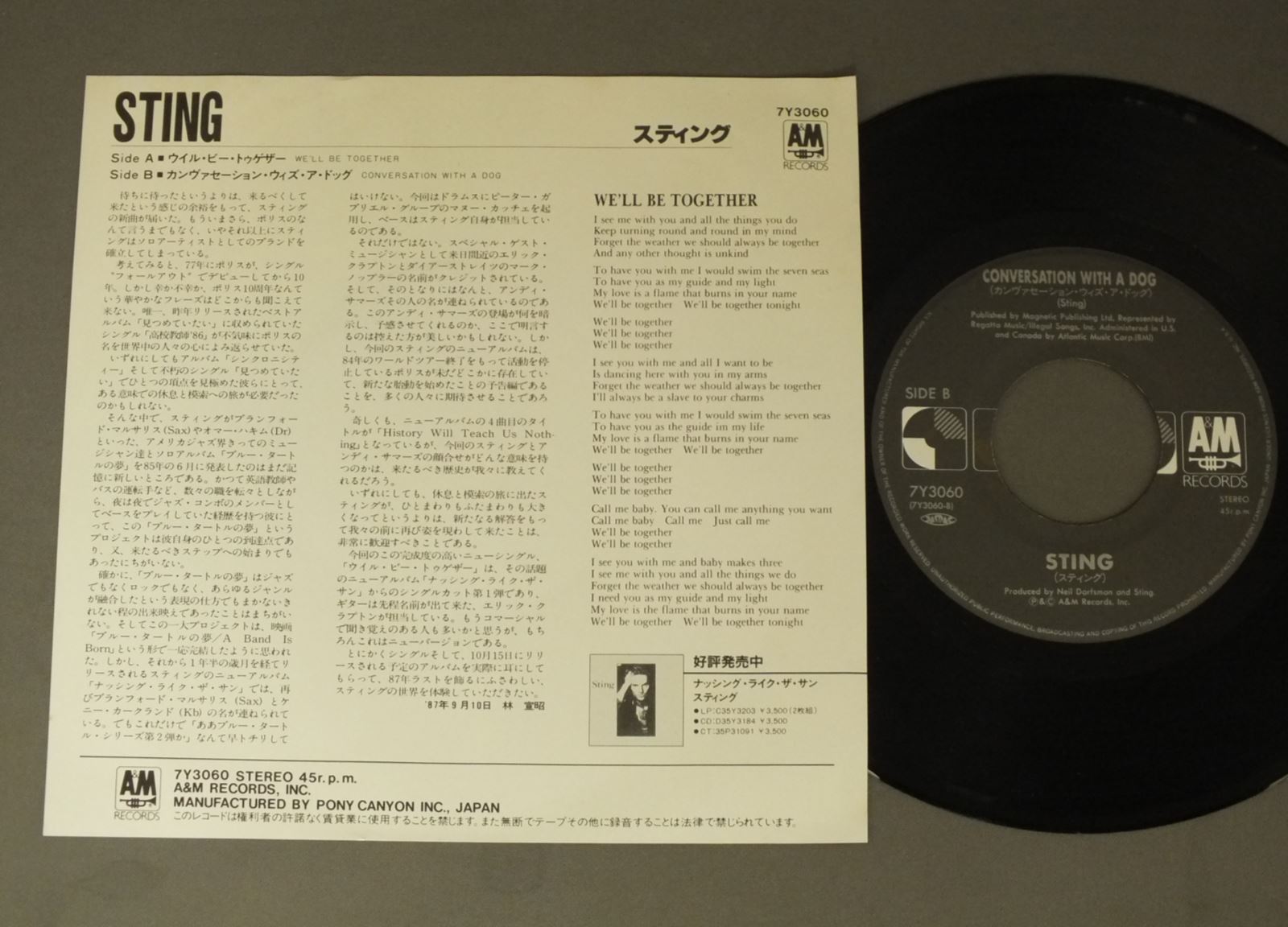 STINGスティング/WE`LL BE TOGETHERウイル・ビー・トゥゲザー 7Y3060 製造国:日本盤 / Media:7inch外観:EX+盤の状態:EX+ 価格(税込):¥330(売約済) 送料 7inch:定形外郵便 360円~LP:定形外郵便 660円~送料は、注文の最終画面で確認頂けます。 > > STING/WE`LL BE TOGETHER 盤の状態 (EX+)特記事項:極薄いスリキズ・スレ少し。一見してきれいな状態です。盤EX+の共通説明:盤面の極薄いスリキズ、スレ少し程度 音に出そうなものは無いように見える(極軽微なソフトティック音は除く)。 Tweet それぞれの画像をクリックすると、大きい写真が見られます こちらの商品もお勧めです 660円 JOHN DENVERジョン・デンバー / BACK HOME AGAINバック・ホーム・アゲイン 770円 J.D. SOUTHERJ.D.サウザー / HOME BY DAWNロマンティック・ナイト 1,320円 GEOFF MULDAURジェフ・マルダー / MOTIONモーション 880円 TONY BENETTトニー・ベネット / BEAT OF MY HEARTビート・オブ・マイ・ハード 770円 JACKSON BROWNEジャクソン・ブラウン / LIVES IN THE BALANCEライヴズ・イン・ザ・バランス 660円 RODNEY CROWELLロドニー・クロウェル / BUT WHAT WILL THE NEIGHBORS THINKアメリカン・ヒーロー 770円 NEIL DIAMONDニール・ダイアモンド / I`M GLAD YOU`RE HERE WITH ME TONIGHT愛のぬくもり 1,210円 MICHEL POLNAREFFミッシェル・ポルナレフ / POLNAREF NOWポルナレフ・ナウ