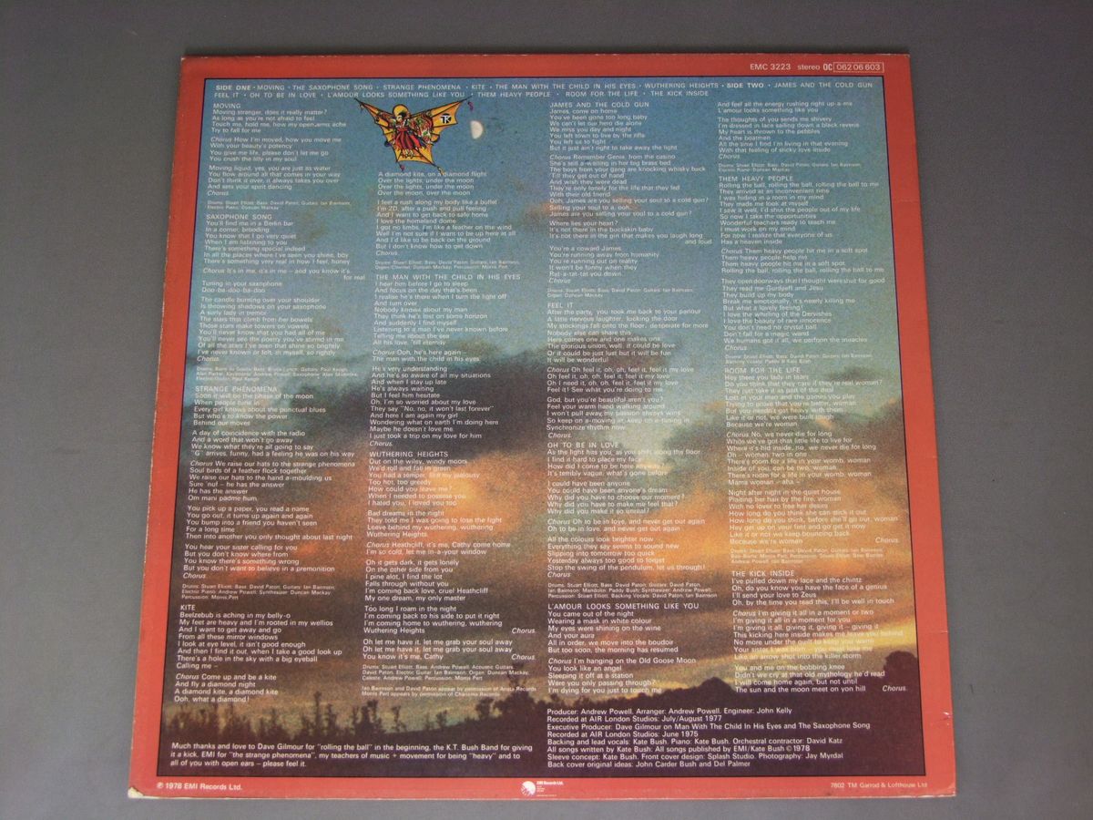 KATE BUSH/KICK INSIDEマト1 EMC3223 製造国:英国盤 / Media:LPMatrix:-1 | -1外観:EX+盤の状態:EX- 価格(税込):¥4,950(売約済) 送料 7inch:定形外郵便 360円~LP:定形外郵便 660円~送料は、注文の最終画面で確認頂けます。 > > KATE BUSH/KICK INSIDE 外観 (EX+)特記事項:英国盤は両面とも厚手の豪華なコーティング仕様。 ジャケ表面は全体的にコーティングのヨレシワも少なく、スレやスリキズのあまり無いきれいな状態。外観EX+の共通説明:中古としては美品、一見してきれいでダメージが軽微。シミ、ヨゴレ、スレ有っても僅か~少し。 盤の状態 (EX-)特記事項:B3に小キズが有り、軽めのプチがありますが、小さい音であまり気にならない程度。他、薄いスリキズ・スレ少しある程度。音に出そうなものもなく一見してきれいな状態です。曲間など、静かなところを中心に聴いて見ましたが、チリノイズ少ないきれいな再生具合でした。盤EX-の共通説明:盤面のスリキズが多少有り。音に出そうなものは殆ど無いように見える~さほど気にならないぐらいの軽いプチ数カ所程度。 Tweet それぞれの画像をクリックすると、大きい写真が見られます こちらの商品もお勧めです 4,400円 JONI MITCHELL / DOG EAT DOG 4,950円 JONI MITCHELL / DOG EAT DOG 7,700円 SUSAN MAUGHAN / I WANNA BE BOBBY`S GIRL 4,950円 SANDY DENNY / RENDEZVOUS 3,850円 NICO / THE END 5,060円 JONI MITCHELL / CHALK MARK IN A RAIN STORM
