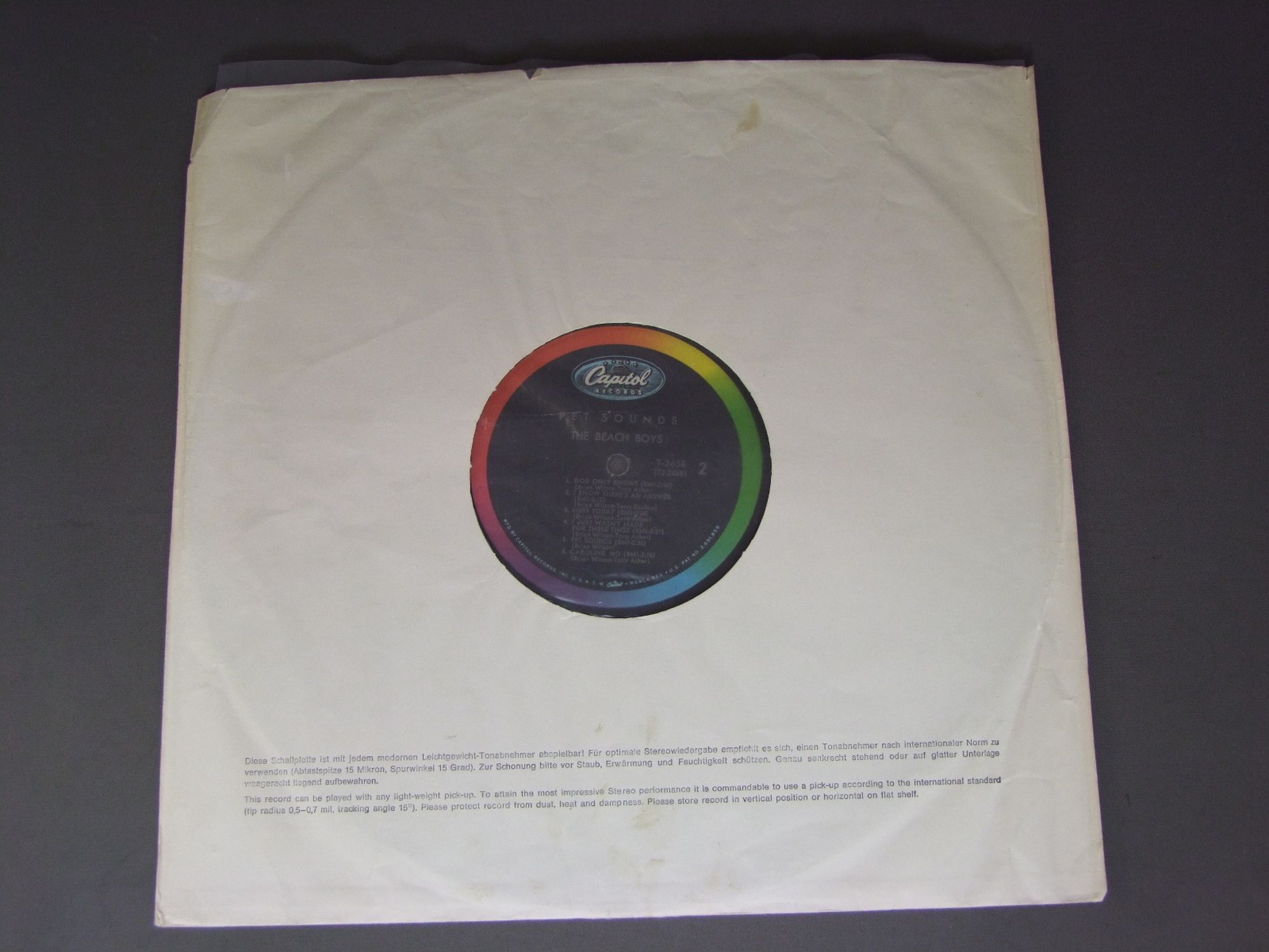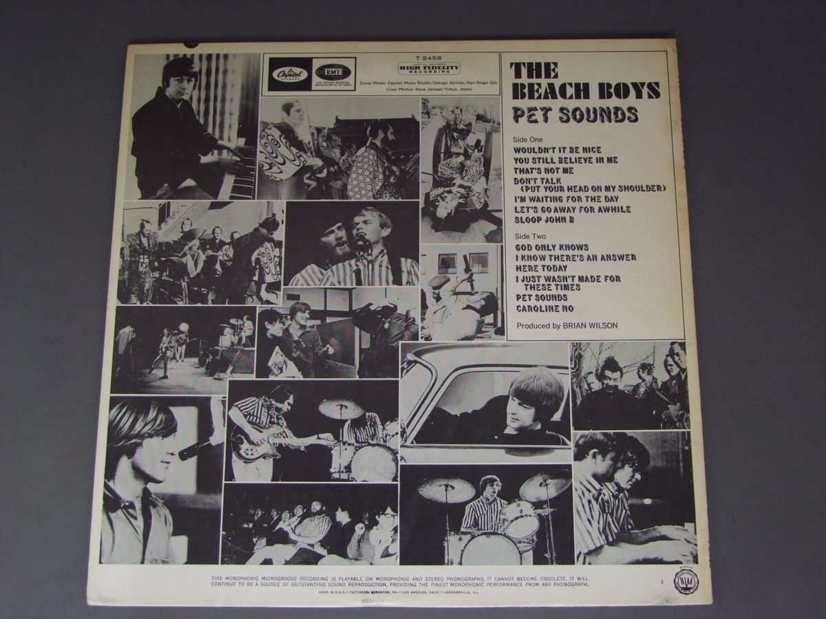 BEACH BOYS/PET SOUNDS MONO T2458 製造国:米国盤 / Media:LPMatrix:T1-2458-F 19 C | T2-2458-G22外観:EX盤の状態:EX 価格(税込):¥13,200(売約済) 送料 7inch:定形外郵便 360円~LP:定形外郵便 660円~送料は、注文の最終画面で確認頂けます。 > > BEACH BOYS/PET SOUNDS MONO 外観 (EX)特記事項:背やジャケ周辺部に多少日焼け感軽有り。ジャケ表面はスレが軽いスレが少々ありますが、全体的にスリキズやよごれ等はあまりない感じ。外観EXの共通説明:ダメージが限定的。中古品としては保存状態がよい方。シミ、ヨゴレ、スレ 少し~軽度。 盤の状態 (EX)特記事項:薄いスリキズ・スレ軽くある感じ。ほとんどが軽微なものの様子です。B3に小さめのキズがありますが、モノ針なら僅かなプチで気にならない程度。他も曲間など、静かなところを中心に聴いて見ましたが、チリノイズ少ないきれいな再生具合でした。盤EXの共通説明:盤面のスリキズが薄いものが少し~軽度 音に出そうなものは無いように見える(軽微なソフトティック音は除く)。 Tweet それぞれの画像をクリックすると、大きい写真が見られます こちらの商品もお勧めです