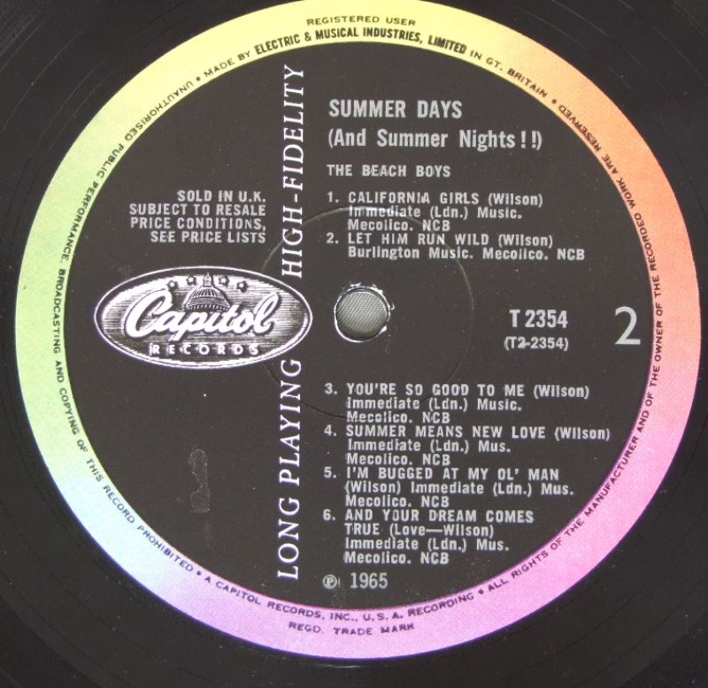 BEACH BOYS/SUMMER DAYS MONO T2354 製造国:英国盤 / Media:LPMatrix: -1 | -1外観:EX+盤の状態:EX 価格(税込):¥9,350(売約済) 送料 7inch:定形外郵便 360円~LP:定形外郵便 660円~送料は、注文の最終画面で確認頂けます。 > > BEACH BOYS/SUMMER DAYS MONO 外観 (EX+)特記事項:表ジャケは厚手のコーティング仕様。全体的にコーティングのヨレシワは少なめ。スレやスリキズ等も少ないです。 裏ジャケもよごれ少ないきれいな状態。外観EX+の共通説明:中古としては美品、一見してきれいでダメージが軽微。シミ、ヨゴレ、スレ有っても僅か~少し。 盤の状態 (EX)特記事項:薄いスリキズ・スレ軽く有る感じ。殆どが軽微なものの様子で、きれいな印象。曲間など、静かなところを中心に聴いて見ましたが、チリノイズ少ないきれいな再生具合でした。盤EXの共通説明:盤面のスリキズが薄いものが少し~軽度 音に出そうなものは無いように見える(軽微なソフトティック音は除く)。 Tweet それぞれの画像をクリックすると、大きい写真が見られます こちらの商品もお勧めです