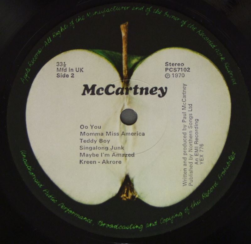 PAUL McCARTNEY/McCARTNEY初回マト PCS7102 製造国:英国盤 / Media:LPMatrix:A-2U/6/MM | B-2U/4/HO外観:EX盤の状態:EX+ 価格(税込):¥9,900(売約済) 送料 7inch:定形外郵便 360円~LP:定形外郵便 660円~送料は、注文の最終画面で確認頂けます。 > > PAUL McCARTNEY/McCARTNEY 外観 (EX)特記事項:見開きまで含めて豪華な厚手のコーティング仕様。表裏ジャケ共に薄いスレは有りますが、全体的にコーティングのヨレシワは少なく、きれいな感じのジャケです。外観EXの共通説明:ダメージが限定的。中古品としては保存状態がよい方。シミ、ヨゴレ、スレ 少し~軽度。 盤の状態 (EX+)特記事項:薄いスリキズ・スレ少しある程度。音に出そうなものもなく一見してきれいな状態です。曲間など、静かなところを中心に聴いて見ましたが、チリノイズ少ないきれいな再生具合でした。盤EX+の共通説明:盤面の極薄いスリキズ、スレ少し程度 音に出そうなものは無いように見える(極軽微なソフトティック音は除く)。 Tweet それぞれの画像をクリックすると、大きい写真が見られます こちらの商品もお勧めです 4,950円 JOHN & YOKO - PLASTIC ONO BANDF / SOME TIME IN NEW YORK CITY 5,500円 JOHN LENNON / SHAVED FISH 5,500円 GEORGE HARRISON / THIRTY THREE & 1/3 5,500円 BEATLES / AT THE HOLLYWOOD BOWL 5,500円 GEORGE HARRISON / LIVING IN THE MATERIAL WORLD