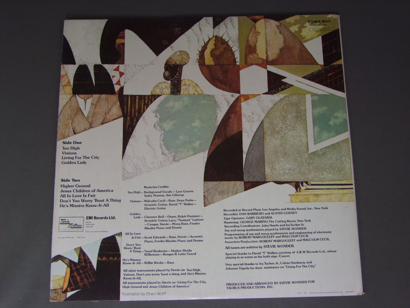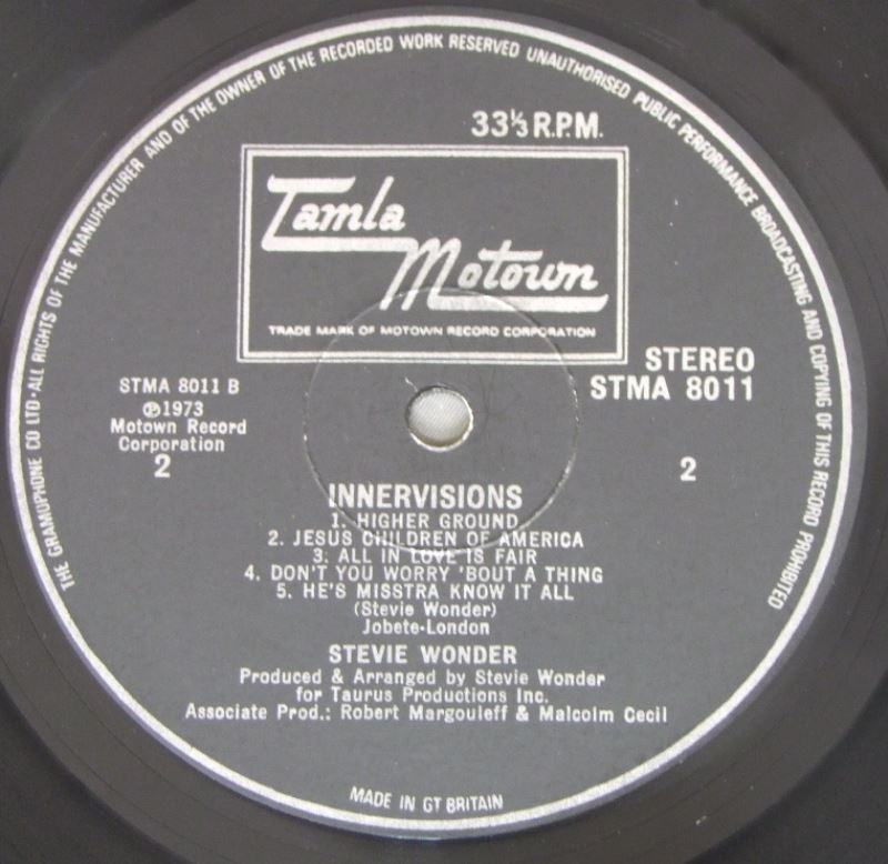 STEVIE WONDER/INNERVISIONS初回GRAMOPHONE盤 STMA8011 製造国:英国盤 / Media:LPMatrix:A-2 | B-2外観:EX盤の状態:EX- 価格(税込):¥4,400(売約済) 送料 7inch:定形外郵便 360円~LP:定形外郵便 660円~送料は、注文の最終画面で確認頂けます。 > > STEVIE WONDER/INNERVISIONS 外観 (EX)特記事項:レコード取り出し口側上角に軽めのウォーターダメージ有りますが、ジャケ表面は全体的にスレやスリキズ、よごれ等のあまり無いきれいな状態です。外観EXの共通説明:ダメージが限定的。中古品としては保存状態がよい方。シミ、ヨゴレ、スレ 少し~軽度。 盤の状態 (EX-)特記事項:薄いスリキズ・細かい表面スレ多少ある感じ。殆どが軽微なものの様子です。所々聴いてみましたが、チリプチは軽度で音もしっかりなっています。盤EX-の共通説明:盤面のスリキズが多少有り。音に出そうなものは殆ど無いように見える~さほど気にならないぐらいの軽いプチ数カ所程度。 Tweet それぞれの画像をクリックすると、大きい写真が見られます こちらの商品もお勧めです 7,700円 EQUALS / SENSATIONAL EQUALS 6,050円 BILLY PRESTON / APPLE OF THEIR EYE 7,150円 SUPREMES / SING RODGERS AND HART 4,950円 ARTHUR CONLEY / SHAKE RATTLE AND ROLL MONO 4,400円 PHIL SPECTOR / CHRISTMAS ALBUMCHRISTMAS ALBUM APPLE盤 11,000円 IKE AND TINA TURNER / LIVE THE IKE AND TINA TURNER SHOW