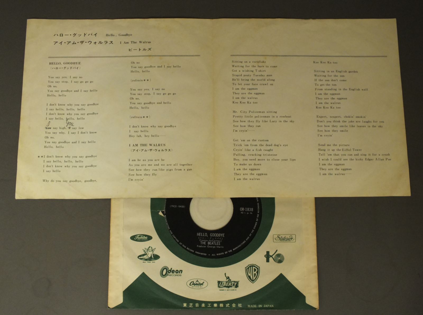 BEATLESビートルズ/HELLO GOODBYE ODEON BLACK VINYLハロー・グッドバイ OR1838 製造国:日本盤 / Media:7inch外観:EX-盤の状態:EX- 価格(税込):¥1,320(売約済) 送料 7inch:定形外郵便 360円~LP:定形外郵便 660円~送料は、注文の最終画面で確認頂けます。 > > BEATLES/HELLO GOODBYE ODEON BLACK VINYL 盤の状態 (EX-)特記事項:薄いスリキズ・細かい表面スレ軽くある感じ。全体的には殆どが軽微なものの様子です。盤EX-の共通説明:盤面のスリキズが多少有り。音に出そうなものは殆ど無いように見える~さほど気にならないぐらいの軽いプチ数カ所程度。 Tweet それぞれの画像をクリックすると、大きい写真が見られます こちらの商品もお勧めです 880円 WINNGSウイングス / VENUS AND MARS WIGSヴィーナス・アンド・マース 1,210円 WINGSウィングス / VENUS & MARSヴィーナス・アンド・マース 770円 JOHN LENNONジョン・レノン / PLASTIC ONO BANDプラスティック・オノ・バンド 770円 PAUL MCCARTNEY & WINGSポール・マッカートニー & ウイングス / WINGS AT THE SPEED OF SOUNDスピード・オヴ・サウンド 770円 PAUL MCCARTNEY&WINGSポール・マッカートニー&ウイングス / BAND ON THE RUNバンド・オン・ザ・ラン 1,650円 WINGSウィングス / OVER AMERICAUSAライブ 1,650円 GEORGE HARRISONジョージ・ハリスン / DARK HORSEダーク・ホース 1,210円 WINGSウイングス / GREATEST HITSグレイテスト・ヒット