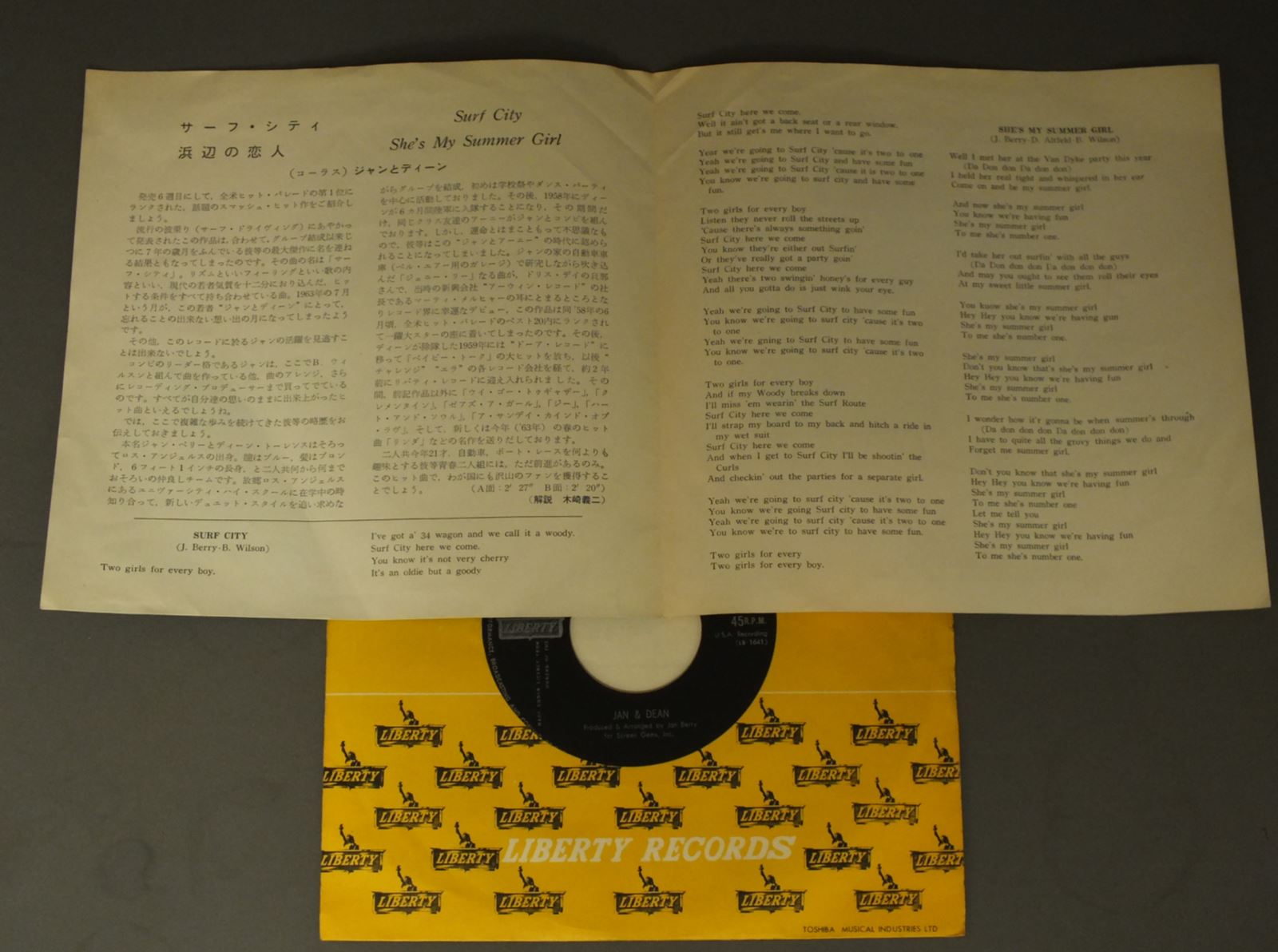JAN&DEANジャンとディーン/SURF CITY RED VINYLサーフ・シティ 赤盤 LIB47 製造国:日本盤 / Media:7inch外観:EX盤の状態:EX 価格(税込):¥5,500(売約済) 送料 7inch:定形外郵便 360円~LP:定形外郵便 660円~送料は、注文の最終画面で確認頂けます。 > > JAN&DEAN/SURF CITY RED VINYL 盤の状態 (EX)特記事項:薄いスリキズ・スレ軽くある感じ。軽微なものの様子です。盤EXの共通説明:盤面のスリキズが薄いものが少し~軽度 音に出そうなものは無いように見える(軽微なソフトティック音は除く)。 Tweet それぞれの画像をクリックすると、大きい写真が見られます こちらの商品もお勧めです 1,210円 BEACH BOYSビーチ・ボーイズ / BEACH BOYSビーチ・ボーイズ
