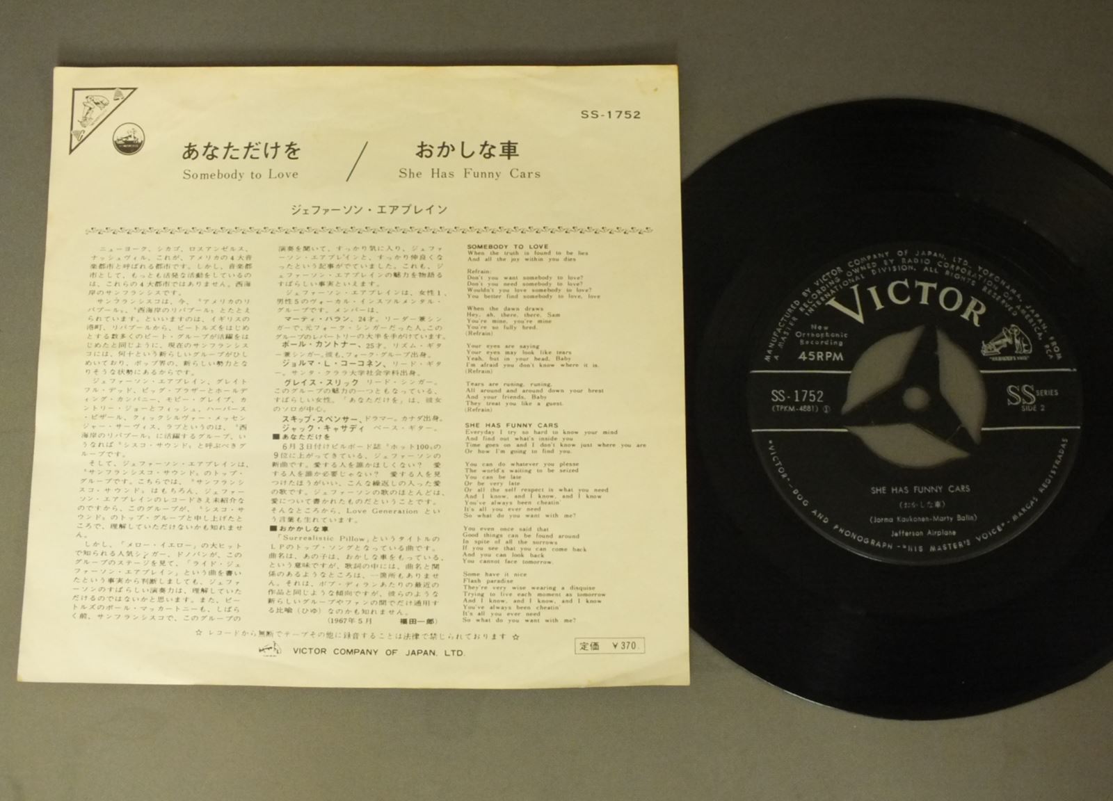 JEFFERSON AIRPLANEジェファーソン・エアプレイン/SOMEBODY TO LOVEあなただけを SS1752 製造国:日本盤 / Media:7inch外観:EX盤の状態:EX- 価格(税込):¥550(売約済) 送料 7inch:定形外郵便 360円~LP:定形外郵便 660円~送料は、注文の最終画面で確認頂けます。 > > JEFFERSON AIRPLANE/SOMEBODY TO LOVE 盤の状態 (EX-)特記事項:薄いスリキズ・細かい表面スレ軽くある感じ。全体的には殆どが軽微なものの様子です。盤EX-の共通説明:盤面のスリキズが多少有り。音に出そうなものは殆ど無いように見える~さほど気にならないぐらいの軽いプチ数カ所程度。 Tweet それぞれの画像をクリックすると、大きい写真が見られます こちらの商品もお勧めです 880円 DOOBIE BROTHERSドゥービー・ブラザーズ / LIVIN` ON THE FAULT LINE運命の掟 1,320円 QUATRO SUZIスージー・クアトロ / QUATRO陶酔のアイドル 1,210円 5TH DIMENSIONフィフス・ディメンソン / THE BESTフィフス・ディメンソン 770円 REO SPEEDWAGONREO スピードワゴン / HI INFIDELITY禁じられた夜 770円 TOTO / ISOLATION + STICKERSアイソレーション 1,210円 SHA NA NAシャ・ナ・ナ / ROCK`N`ROLL FEVERロックン・ロール・フィーバー 770円 BROWNSブラウンズ / SING A HARVEST OF COUNTRY SONGS 60s ISSUEはるけき谷間に ペラジャケ 1,650円 FOREINERフォリナー / DOUBLE VISONダブル・ビジョン