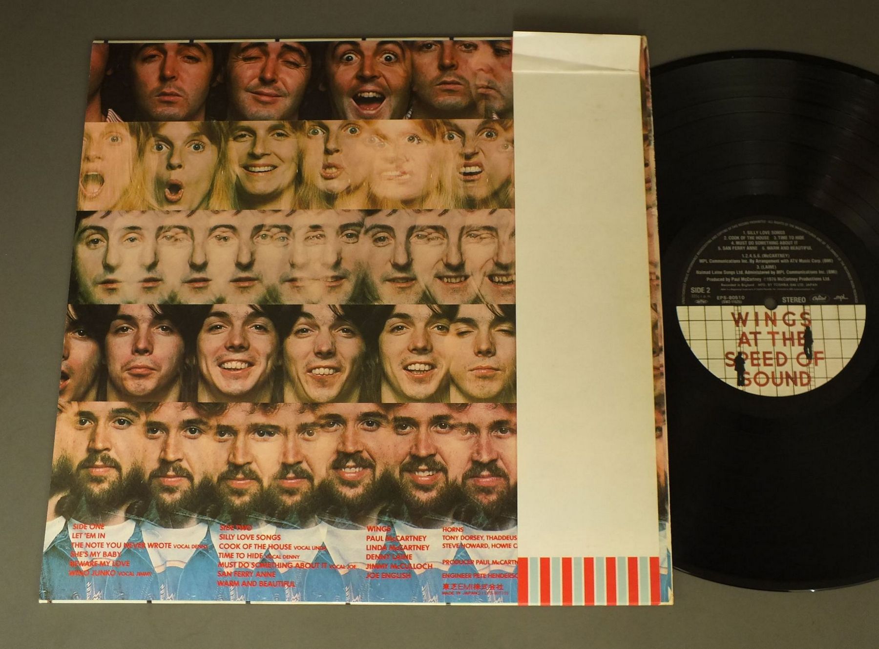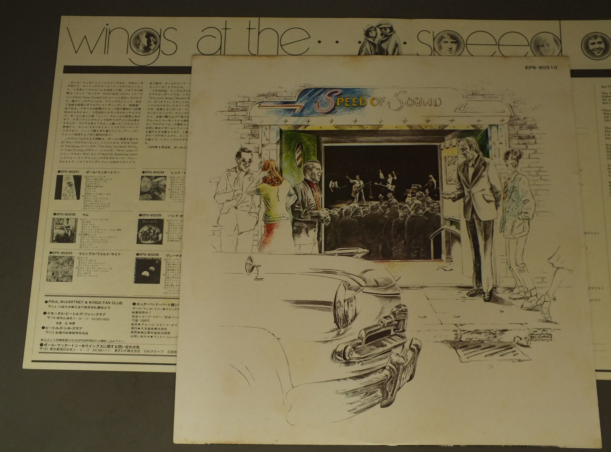 WINGSポール・マッカートニー&ウイングス/SPEED OF SOUNDスピード・オヴ・サウンド EPS80510 製造国:日本盤 / Media:LP外観:EX-盤の状態:EX+帯:EX- 価格(税込):¥1,100(売約済) 送料 7inch:定形外郵便 360円~LP:定形外郵便 660円~送料は、注文の最終画面で確認頂けます。 > > WINGS/SPEED OF SOUND 外観 (EX-)特記事項:ジャケ表面にシミ、よごれ有。外観EX-の共通説明:ダメージ軽度~多少。 中古品としては普通の状態。シミ、ヨゴレ、スレなど軽く~多少。 盤の状態 (EX+)特記事項:極薄いスリキズ・スレ少し。一見してきれいな状態です。盤EX+の共通説明:盤面の極薄いスリキズ、スレ少し程度 音に出そうなものは無いように見える(極軽微なソフトティック音は除く)。 帯の状態 (EX-):シミ有。 Tweet それぞれの画像をクリックすると、大きい写真が見られます こちらの商品もお勧めです 1,210円 WINGSウィングス / WINGS OVER AMERICAウィングスU.S.A ライヴ 1,650円 PAUL McCARTNEYポール・マッカートニー / PIPES OF PEACEパイプス・オブ・ピース 1,540円 WINGSポール・マッカートニーとウイングス / LONDON TOWN 1,210円 WINGSウイングス / GREATEST HITSグレイテスト・ヒット 1,320円 WINGSウイングス / WINGS OVER AMERICAウイングス U.S.A.ライヴ!! 990円 WINGS / VENUS AND MARS 770円 WINGSポール・マッカートニー&ウイングス / VENUS AND MARSヴィーナス・アンド・マース 770円 JOHN LENNONジョン・レノン / PLASTIC ONO BANDプラスティック・オノ・バンド