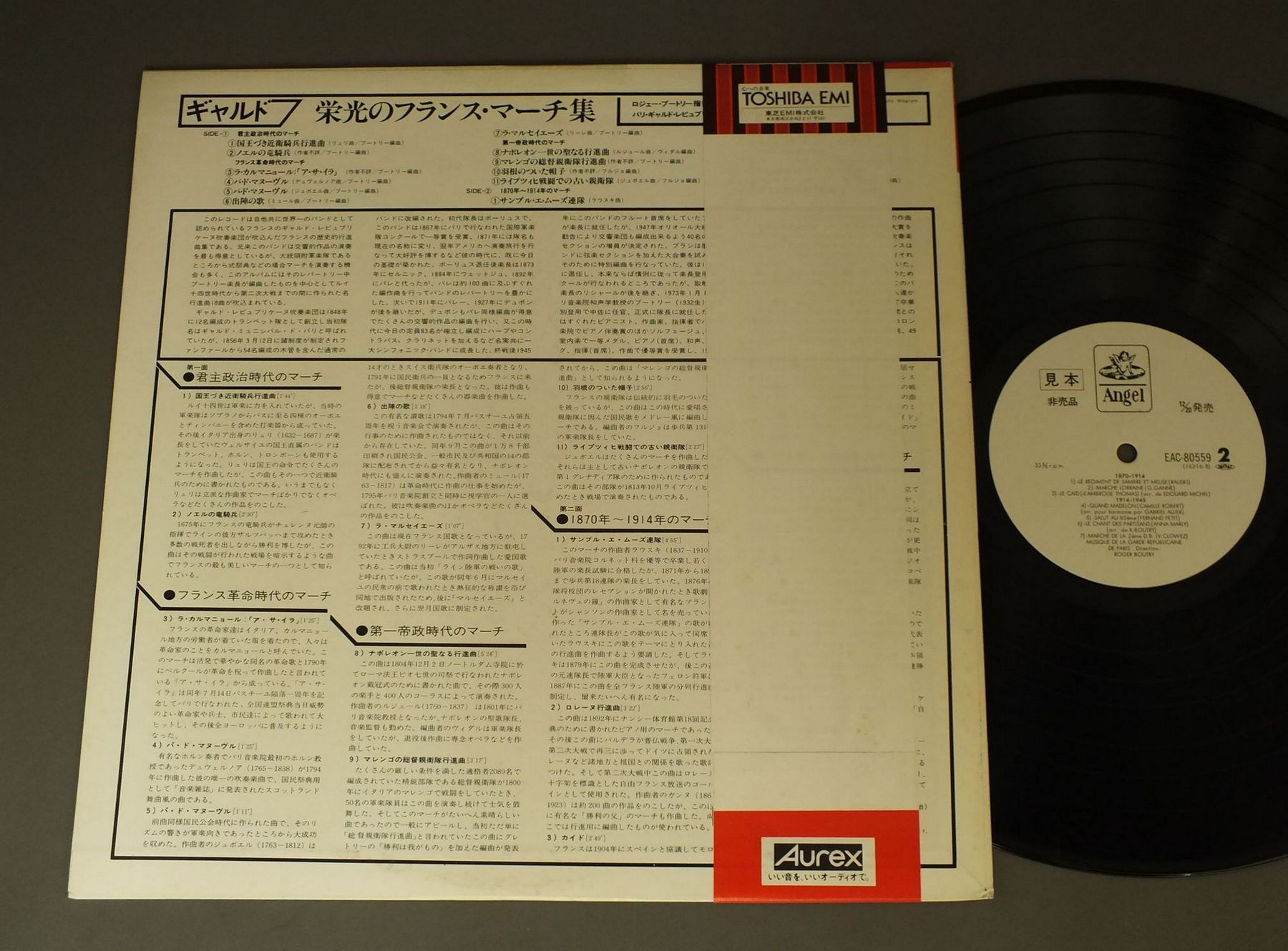 ROGER BOUTRYロジェー・ブートリー/GRANDES MARCHES FRANCAISESギャルド栄光のフランス・マーチ集 EAC80559 製造国:日本盤 / Media:LP外観:EX盤の状態:EX+帯:EX- 価格(税込):¥770(売約済) 送料 7inch:定形外郵便 360円~LP:定形外郵便 660円~送料は、注文の最終画面で確認頂けます。 > > ROGER BOUTRY/GRANDES MARCHES FRANCAISES 外観 (EX)特記事項:ヘリにスレ有。ジャケ表面にシミ、よごれ有、スレ有。外観EXの共通説明:ダメージが限定的。中古品としては保存状態がよい方。シミ、ヨゴレ、スレ 少し~軽度。 盤の状態 (EX+)特記事項:極薄いスリキズ・スレ少し。一見してきれいな状態です。盤EX+の共通説明:盤面の極薄いスリキズ、スレ少し程度 音に出そうなものは無いように見える(極軽微なソフトティック音は除く)。 帯の状態 (EX-):切れ、やぶれ有。ヨレ有。シミ有。 その他:白見本盤 Tweet それぞれの画像をクリックすると、大きい写真が見られます こちらの商品もお勧めです 990円 IKUKO TAKEUCHI竹内郁子 / MONDOLINマンドリンの世界 名曲ベスト25 990円 SLATKINスラットキン / MILITARY BANDミリタリー・バンド 770円 REIMOND RICHARDレイモン・リシャール / MARSEILLAISEマルセイエーズ 1,540円 山本恵美 - 上柳喜久代 - 福森通子 他 / 昭和47年度第42回新人演奏会 その3 990円 PHILIP JONES BRASS ENSEMBLE-ELGAR HOWARTHフィリップ・ジョーンズ・ブラス・アンサンブル-エルガー・ハワース / CLASSICS FOR BRASS超絶!ブラスの神技 1,430円 IKUKO TAKEUCHI竹内郁子 / MONDOLIN EM. CANZONE ITALIAイタリアのうた-マンドリン・アンサンブル- 1,320円 ROGER WAGNERロジェー・ワーグナー / SONGS OF THE OLD WORLDヨーロッパ民謡のすべて 1,760円 YASUHIKO SHIOZAWA - TOKYO ACADEMIC WIND ORCH.汐澤安彦 - 東京アカデミック・ウインド・オーケストラ / BEST SELECTIONS FOR BAND `86 VOL2吹奏楽ベストセレクション `86 VOL2