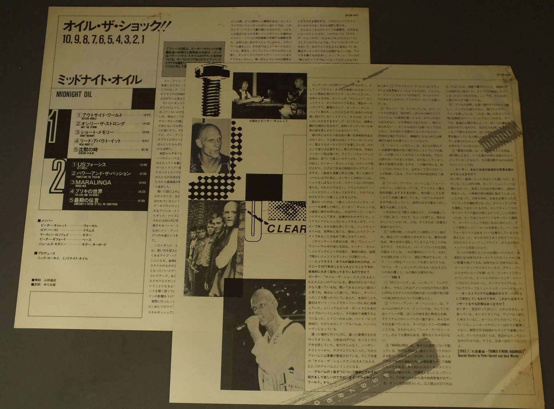 MIDNIGHT OILミッドナイト・オイル/10.9.8.7.6.5.4.3.2.1オイル・ザ・ショック!! 25・3P457 製造国:日本盤 / Media:LP外観:EX-盤の状態:EX+帯:EX 価格(税込):¥880(売約済) 送料 7inch:定形外郵便 360円~LP:定形外郵便 660円~送料は、注文の最終画面で確認頂けます。 > > MIDNIGHT OIL/10.9.8.7.6.5.4.3.2.1 外観 (EX-)特記事項:ヘリにスレ有。ジャケ表面にシミ、よごれ有、スレ有、ヨレ有。解説カードにシミ、よごれ有、ヨレ有。外観EX-の共通説明:ダメージ軽度~多少。 中古品としては普通の状態。シミ、ヨゴレ、スレなど軽く~多少。 盤の状態 (EX+)特記事項:極薄いスリキズ・スレ少し。一見してきれいな状態です。盤EX+の共通説明:盤面の極薄いスリキズ、スレ少し程度 音に出そうなものは無いように見える(極軽微なソフトティック音は除く)。 帯の状態 (EX):特記なし。 Tweet それぞれの画像をクリックすると、大きい写真が見られます こちらの商品もお勧めです 770円 TAZMANIAN DEVILSタズマニアン・デヴィルズ / アメリカン・ドリームを探して 440円 WILD BLUEワイルド・ブルー / NO MORE JINXノー・モア・ジンクス 1,210円 OXOオクソ / 1st ALBUMオクソ 440円 TAXXIタクシー / STATES OF EMERGENCY緊急発進 ! 1,320円 QUARTERFLASHクウォーターフラッシュ / QUARTERFLASHミッドナイト・フラッシュ 770円 LOVERBOYラヴァーボーイ / KEEP IT UPホット・ガールズ 440円 TEN TENテン・テン / WALK ONウォーク・オン 1,320円 TAZMANIAN DEVILSタズマニアン・デヴィルズ / TAZMANIAN DEVILSアメリカン・ドリームを探して