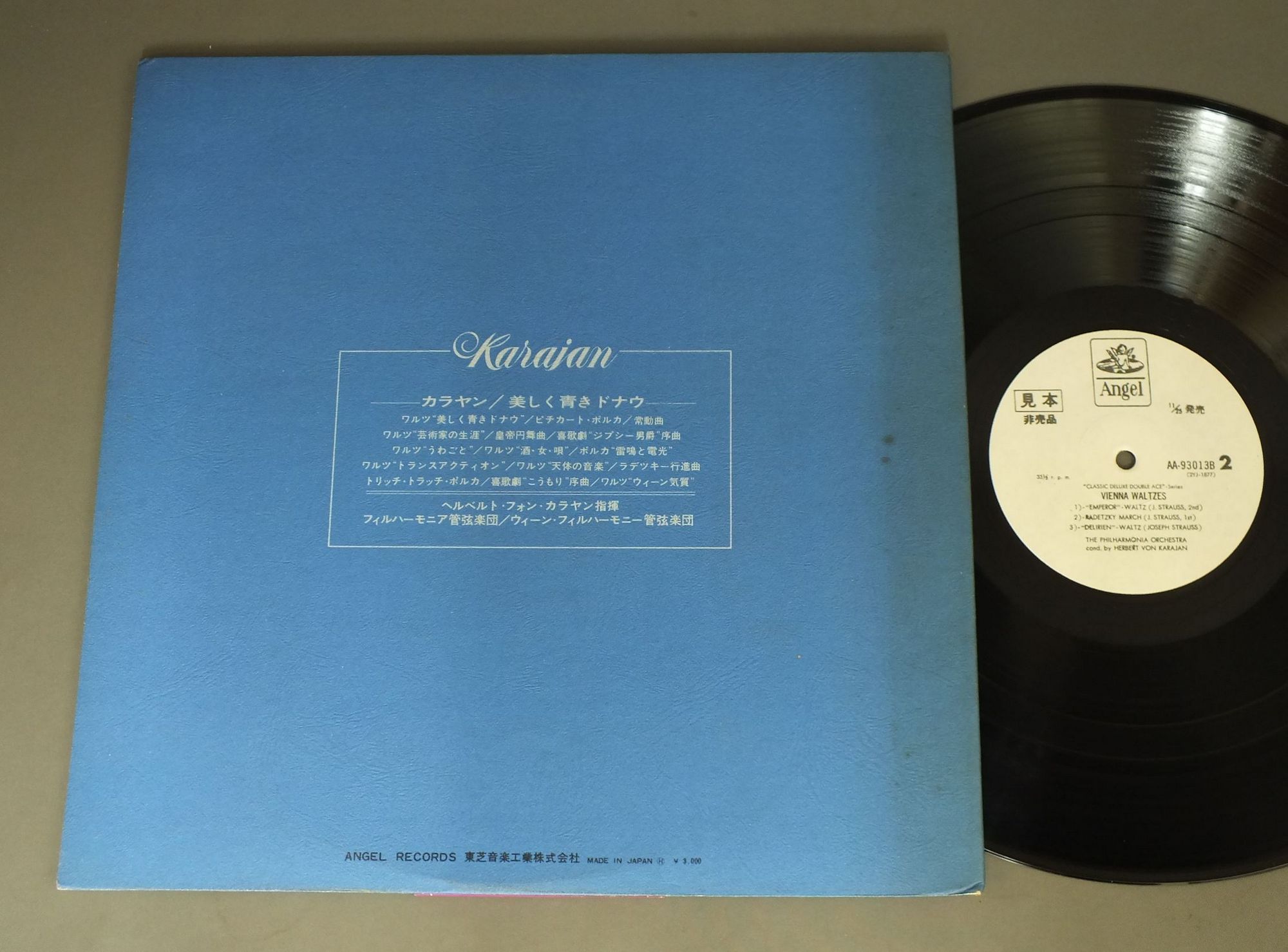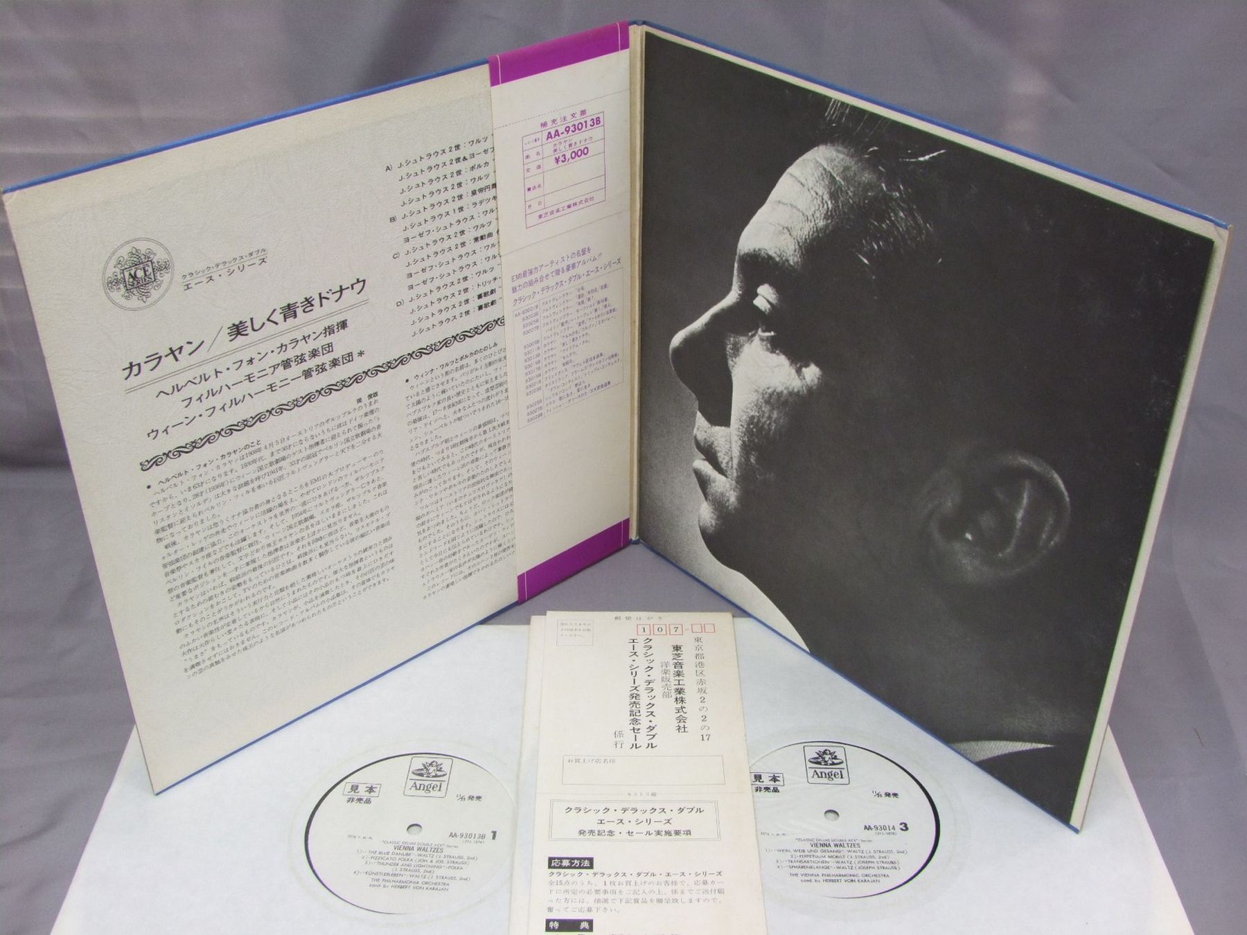 KARAJANカラヤン/BLUE DANUBE-WALTZ美しく青きドナウ AA93013B 製造国:日本盤 / Media:LP外観:EX-盤の状態:EX+帯:EX- 価格(税込):¥880(売約済) 送料 7inch:定形外郵便 360円~LP:定形外郵便 660円~送料は、注文の最終画面で確認頂けます。 > > KARAJAN/BLUE DANUBE-WALTZ 外観 (EX-)特記事項:ヘリにスレ有。ジャケ表面にシミ、よごれ有、スレ有。解説カードにシミ、よごれ有。外観EX-の共通説明:ダメージ軽度~多少。 中古品としては普通の状態。シミ、ヨゴレ、スレなど軽く~多少。 盤の状態 (EX+)特記事項:極薄いスリキズ・スレ少し。一見してきれいな状態です。盤EX+の共通説明:盤面の極薄いスリキズ、スレ少し程度 音に出そうなものは無いように見える(極軽微なソフトティック音は除く)。 帯の状態 (EX-):切れ、やぶれ有。ヨレ有。シミ有。 その他:白見本盤 Tweet それぞれの画像をクリックすると、大きい写真が見られます こちらの商品もお勧めです 990円 RICHTERリヒテル / MOUSSORGSKY - PICTURES AT AN EXHIBITION展覧会の絵 770円 WALTER - COLUMBIA SYM. ORCH.ワルター - コロンビ交響楽団 / MOZART - SYM. NO41 & 36モーツアルト交響曲第41番36番 990円 MIKLOS ERDELYI - BUDAPEST SEMPHONY ORCH.ミクローシュ・エルデーイ - ブダペスト交響楽団 / BARTOK - HUNGARIAN SKETCHESバルトーク - 管弦楽のための組曲第2番 他 990円 KARAJANカラヤン / ROSSINI-OVERTURESウィリアム・テル-ロッシーニ-序曲集 990円 SZERYNGシェリング / TCHAIKOVSKY - VIOLIN CONCERTOチャイコフスキー - ヴァイオリン協奏曲 990円 KEMPEケンペ / R. STRAUSS-SYM. POEM EIN HELDENLEBENR.シュトラウス-交響詩 英雄の生涯 1,320円 BERMAN - KARAJAN - BERLINER PHIL.ベルマン - カラヤン - ベルリンフィル / TSCHAIKOWSKY - PIANO CONCERT NO1チャイコフスキー - ピアノ協奏曲 第1番 990円 BOHMベーム / BRUCKNER SYM. NO4 `ROMANTIC`ブルックナー 交響曲第4番 変 `ロマンティック`