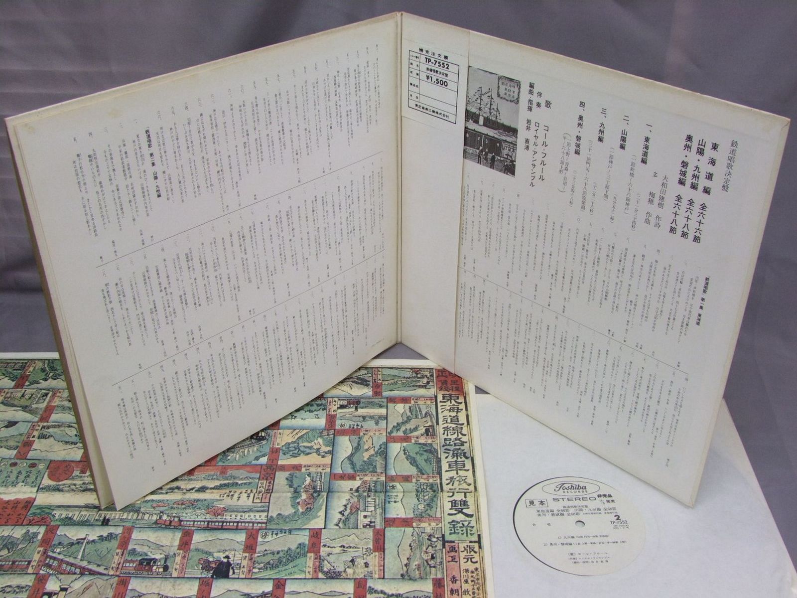 コール・フルール/鉄道唱歌決定盤 東海道線開通当時の双六付 TP7552 製造国:日本盤 / Media:LP外観:EX-盤の状態:EX+帯:EX- 価格(税込):¥1,100(売約済) 送料 7inch:定形外郵便 360円~LP:定形外郵便 660円~送料は、注文の最終画面で確認頂けます。 > > / 外観 (EX-)特記事項:ヘリにスレ有。ジャケ表面にシミ、よごれ有、スレ有。解説カードにシミ、よごれ有。外観EX-の共通説明:ダメージ軽度~多少。 中古品としては普通の状態。シミ、ヨゴレ、スレなど軽く~多少。 盤の状態 (EX+)特記事項:薄いスリキズ・スレ少し。一見してきれいな状態です。盤EX+の共通説明:盤面の極薄いスリキズ、スレ少し程度 音に出そうなものは無いように見える(極軽微なソフトティック音は除く)。 帯の状態 (EX-):シミ有。下ヘリで切れ有。 その他:白見本盤 Tweet それぞれの画像をクリックすると、大きい写真が見られます こちらの商品もお勧めです 550円 東京寮歌会 / 思い出の寮歌集 770円 SOUND EFFECT効果音 / VARIOUS SOUND EFFECTS新効果音 効果アラカルト篇 550円 QUADSONIC STEREO RECORD4チャンネル・ステレオの魅力 / OTTO 990円 SOUND EFFECT音響 / WORLD POLICE世界のパトカー 1,210円 滅びゆく蒸気機関車 / 義経号からC62まで 1,870円 GEORGE RYLANDS / SHAKESPEARE-HENRY V 770円 DOCUMENTドキュメント / JAPAN `71にっぽん `71 1,320円 SOUND EFFECTS効果音 / JET FIGHTER2世界のスーパー・ジェット・ファイター2