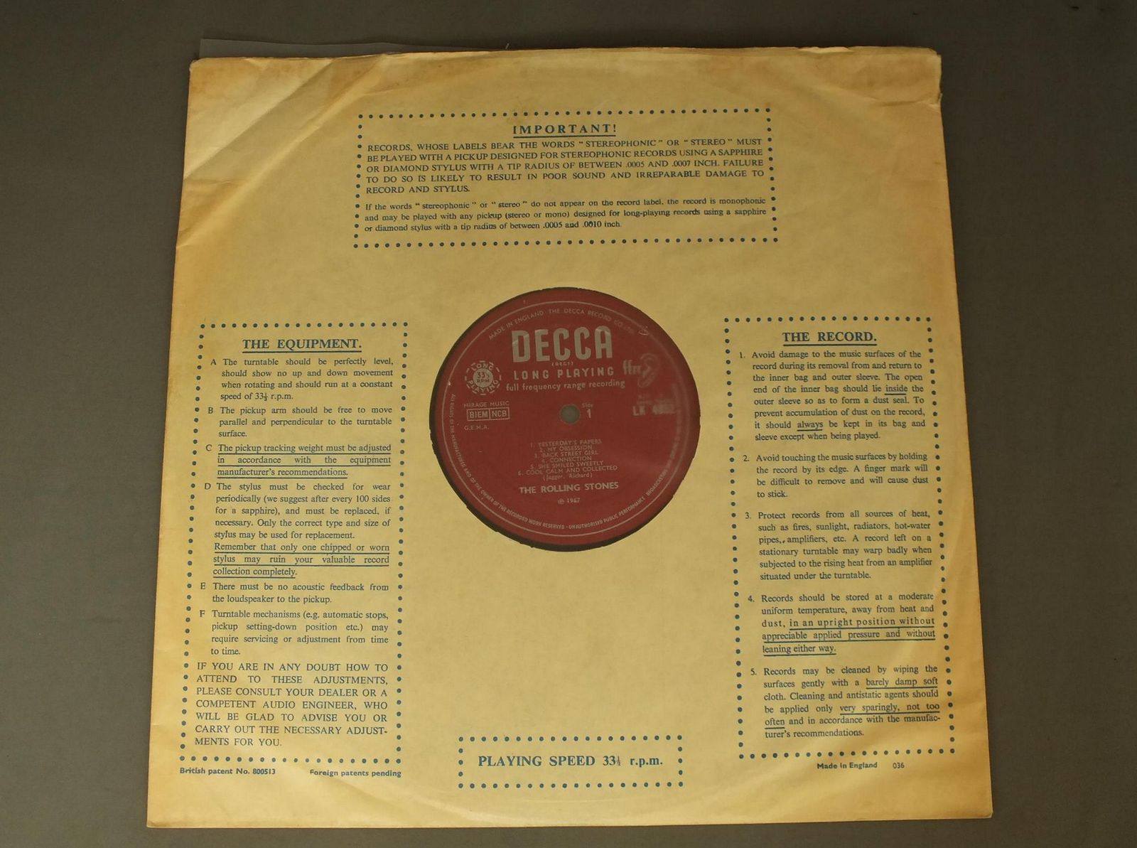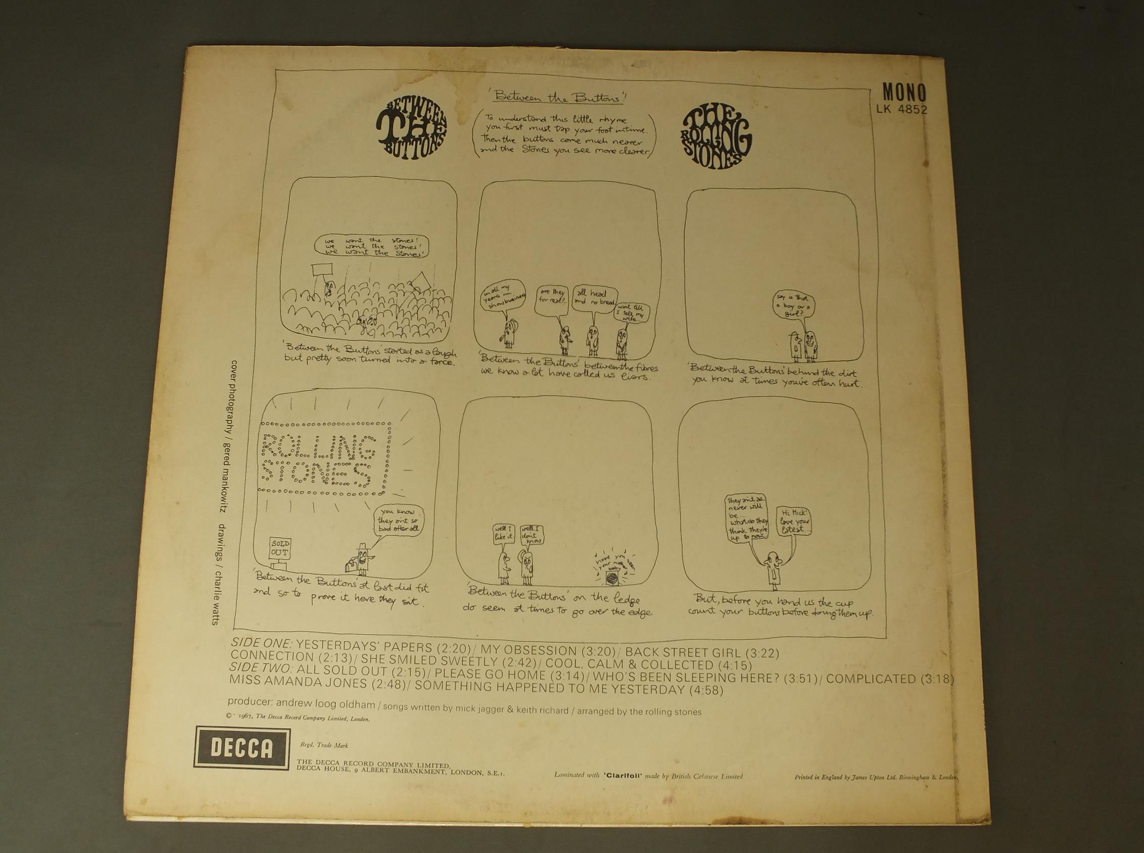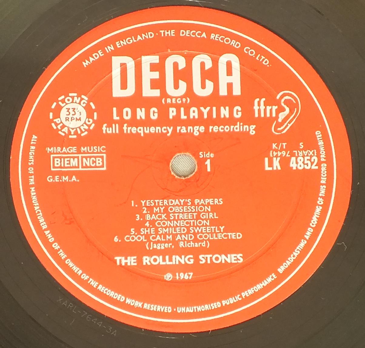 ROLLING STONES/BETWEEN THE BUTTONS MONO LK4852 製造国:英国盤 / Media:LPMatrix:A3 | B3外観:EX盤の状態:EX- 価格(税込):¥13,200(売約済) 送料 7inch:定形外郵便 360円~LP:定形外郵便 660円~送料は、注文の最終画面で確認頂けます。 > > ROLLING STONES/BETWEEN THE BUTTONS MONO 外観 (EX)特記事項:上ヘリにスレ多少有り。表ジャケは全体的にコーティングのヨレシワも少なく、スレやスリキズも薄い感じ。裏ジャケの上ヘリ付近にシミ。裏ジャケはスレよごれ等多少有りです。外観EXの共通説明:ダメージが限定的。中古品としては保存状態がよい方。シミ、ヨゴレ、スレ 少し~軽度。 盤の状態 (EX-)特記事項:A5とB3にMONO針でプチ出る線キズ有り。全体的には薄いスリキズ・スレ軽く有る感じ。殆どが軽微なものの様子です。 曲間など、静かなところを中心に聴いて見ましたが、ぷちが出る所以外は、チリノイズ少ないきれいな再生具合でした。盤EX-の共通説明:盤面のスリキズが多少有り。音に出そうなものは殆ど無いように見える~さほど気にならないぐらいの軽いプチ数カ所程度。 Tweet それぞれの画像をクリックすると、大きい写真が見られます こちらの商品もお勧めです 2,750円 ROLLING STONES / EMOTIONAL RESCUE + POSTEREMOTIONAL RESCUE ポスター付