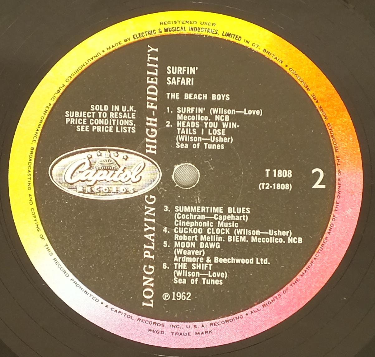 BEACH BOYS/SURFIN`SUFARI MONO T1808 製造国:英国盤 / Media:LPMatrix:1N | 1N外観:EX盤の状態:EX 価格(税込):¥11,000(売約済) 送料 7inch:定形外郵便 360円~LP:定形外郵便 660円~送料は、注文の最終画面で確認頂けます。 > > BEACH BOYS/SURFIN`SUFARI MONO 外観 (EX)特記事項:英国盤は表ジャケが厚手のコーティング仕様。ジャケ表面は全体的にコーティングのヨレシワも少なく、スレやスリキズも薄い感じ。裏ジャケに薄いシミやスレよごれ軽多少あり。外観EXの共通説明:ダメージが限定的。中古品としては保存状態がよい方。シミ、ヨゴレ、スレ 少し~軽度。 盤の状態 (EX)特記事項:薄いスリキズ・スレ軽く有る感じ。殆どが軽微なものの様子で、きれいな印象。曲間など、静かなところを中心に聴いて見ましたが、ステレオ針だと綺麗になっていないようでしたが、MONO針ならチリプチ少ないきれいな再生具合でした。盤EXの共通説明:盤面のスリキズが薄いものが少し~軽度 音に出そうなものは無いように見える(軽微なソフトティック音は除く)。 Tweet それぞれの画像をクリックすると、大きい写真が見られます こちらの商品もお勧めです