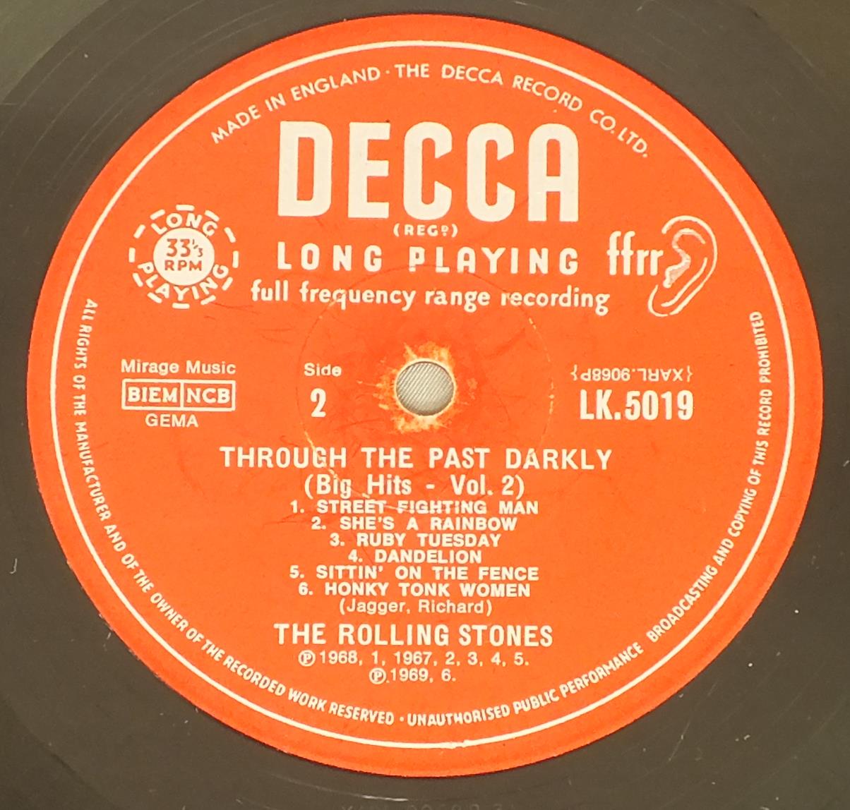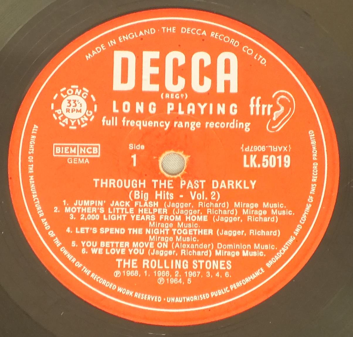 ROLLING STONES/THROUGH THE PAST DARKLY MONO LK5019 製造国:英国盤 / Media:LPMatrix:2A / 1 / BK? | 3A / 1 /G外観:EX盤の状態:VG+ 価格(税込):¥13,200(売約済) 送料 7inch:定形外郵便 360円~LP:定形外郵便 660円~送料は、注文の最終画面で確認頂けます。 > > ROLLING STONES/THROUGH THE PAST DARKLY MONO 外観 (EX)特記事項:背は角スレ多少、コーティングの剥がれが少し。ジャケ表面は表裏ジャケ共にスレやスリキズ、コーティングのヨレシワは少ない感じ。表ジャケの右ヘリや上ヘリでヨレ多少有り。見開きはスレやよごれは少ないと思います。オリジナルインナーは角やヘリでヨレやスレ有り。一部抜けも有ります。ヨレ感は少なめ。よごれも薄いものが中心。外観EXの共通説明:ダメージが限定的。中古品としては保存状態がよい方。シミ、ヨゴレ、スレ 少し~軽度。 盤の状態 (VG+)特記事項:盤面のスレ、スリキズ多少〜やや多めですが、軽微なものが中心の様子です。A4最初に溝に沿った線キズがありますが、ステレオ針でも針飛びは無く、モノ針なら数回のノイズ程度でした。他モノ針で通して聴きましたが、チリぷち少なめで音もしっかりクリアーに鳴っています。EX-に近い再生具合。盤VG+の共通説明:盤面にスリキズが多少~やや有り、音に出そうなものも多少ある。 Tweet それぞれの画像をクリックすると、大きい写真が見られます こちらの商品もお勧めです 2,750円 ROLLING STONES / EMOTIONAL RESCUE + POSTEREMOTIONAL RESCUE ポスター付