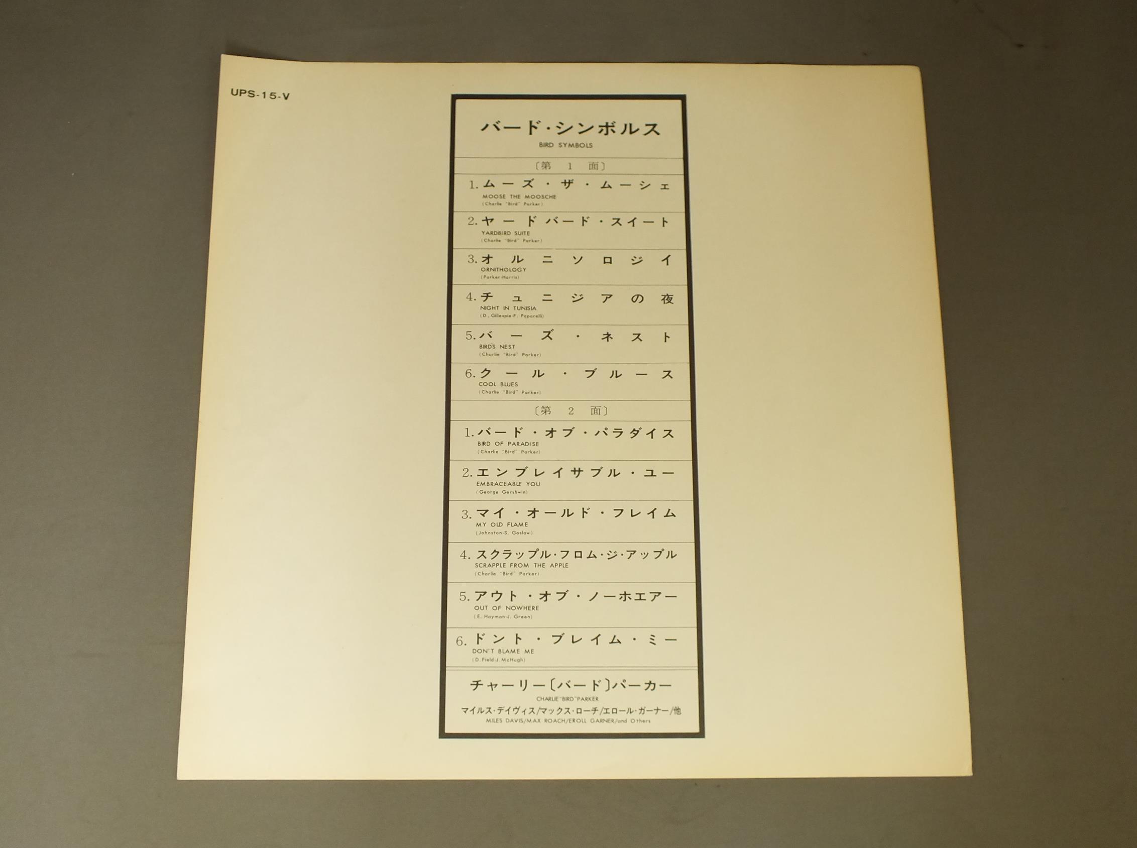 CHARLIE BIRD PARKERチャーリー〔バード〕パーカー/BIRD SYMBOLSバード・シンボルズ UPS15V 製造国:日本盤 / Media:LP外観:VG+盤の状態:EX+ 価格(税込):¥770(売約済) 送料 7inch:定形外郵便 360円~LP:定形外郵便 660円~送料は、注文の最終画面で確認頂けます。 > > CHARLIE BIRD PARKER/BIRD SYMBOLS 外観 (VG+)特記事項:背やヘリにスレ有。ジャケ表面にシミ有外観VG+の共通説明:ダメージやや有り。シミ、ヨゴレ、スレなど多少~やや多め。 盤の状態 (EX+)特記事項:極薄いスリキズ・スレ少し。一見してきれいな状態です。盤EX+の共通説明:盤面の極薄いスリキズ、スレ少し程度 音に出そうなものは無いように見える(極軽微なソフトティック音は除く)。 Tweet それぞれの画像をクリックすると、大きい写真が見られます こちらの商品もお勧めです 770円 24th STREET BAND24th ストリート・バンド / FEATURING HIRAM BULLOCKフィーチャリング ハイラム・ブロック 1,210円 MAKOTO OZONE小曽根真 / AFTERアフター 990円 TAKEHIKO HONDA本田竹彦 / JODO浄土 770円 TEDDY WILSONテディ・ウィルソン / THE TEDDY WILLSON 1,320円 KENJI OHMURA - KATSUMI WATANABE etc大村憲司 - 渡辺香津美他 / ARANJUEZアランフェス協奏曲 1,210円 STAN KENTONスタン・ケントン / PORTRAITS ON STANDARDSポートレイツ・オン・スタンダーズ 880円 WILTON FELDERウイルトン・フェルダー / WE ALL HAVE A STAR星の伝説 1,210円 KARIN KROC & ARCHIE SHEPPカーリン・クローグ&アーチー・シェップ / HI-FLYハイ・フライ