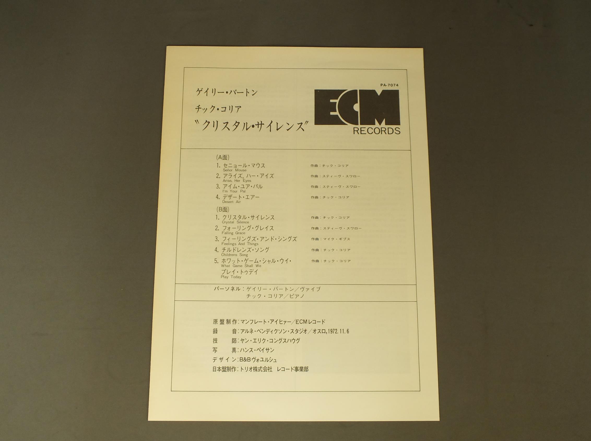 GARY BURTON+CHICK COREAゲイリー・バートン/チック・コリア/CRYSTAL SILENCEクリスタル・サイレンス PA7074 製造国:日本盤 / Media:LP外観:EX-盤の状態:EX 価格(税込):¥880(売約済) 送料 7inch:定形外郵便 360円~LP:定形外郵便 660円~送料は、注文の最終画面で確認頂けます。 > > GARY BURTON+CHICK COREA/CRYSTAL SILENCE 外観 (EX-)特記事項:ジャケ表面にシミ有。外観EX-の共通説明:ダメージ軽度~多少。 中古品としては普通の状態。シミ、ヨゴレ、スレなど軽く~多少。 盤の状態 (EX)特記事項:薄いスリキズ・スレ少しある感じ。一見してきれいな感じです。盤EXの共通説明:盤面のスリキズが薄いものが少し~軽度 音に出そうなものは無いように見える(軽微なソフトティック音は除く)。 Tweet それぞれの画像をクリックすると、大きい写真が見られます こちらの商品もお勧めです 1,210円 THAD JONES & MEL LEWISサド・ジョーンズ&メル・ルイス・オーケストラ / POTPOURRIポプーリ 770円 EDDIE JEFFERSONエディ・ジェファーソン / LETTER FROM HOMEレター・フロム・ホーム 770円 KAI WINDING & J.J.JOHNSONケイ・ウィンディング5重奏団 + J.J.ジョンソン / AFTERNOON AT BIRDLANDバードランドのJ & K 1,210円 JACK SHELDON & HIS WEST COAST FRIENDSジャック・シェルドンとヒズ・ウェスト・コースト・フレンズ / ANGEL WINGSエンジェル・ウィングス 1,320円 EDDIE COSTA TRIOエディ・コスタ・トリオ / HOUSE OF BLUE LIGHTSハウス・オブ・ブルー・ライツ 1,320円 SADAO WATANABE & CHARLIE MARIANO渡辺貞夫&チャーリー・マリアーノ / IBERIAN WALTZイベリアン・ワルツ 660円 JACQUES LOUSSIERジャック・ルーシエ・トリオ / PLAY BACH VOL.4プレイ・バッハ 第4集 990円 FORCEフォース / SECOND FORCEセカンド・フォース