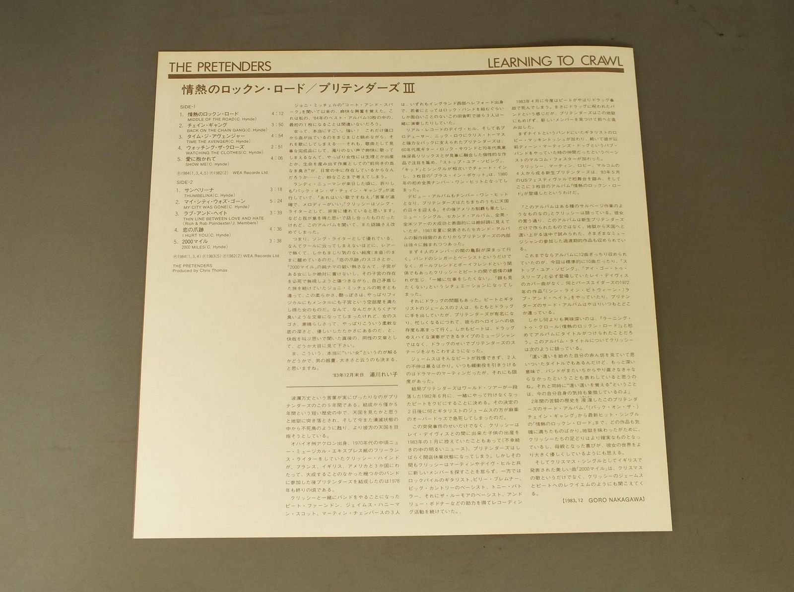 PRETENDERS/LEARNING TO CRAWL 25PP111 製造国:日本盤 / Media:LP外観:EX盤の状態:EX 価格(税込):¥880(売約済) 送料 7inch:定形外郵便 360円~LP:定形外郵便 660円~送料は、注文の最終画面で確認頂けます。 > > PRETENDERS/LEARNING TO CRAWL 外観 (EX)特記事項:特記なし。コンディションリストを参照ください。外観EXの共通説明:ダメージが限定的。中古品としては保存状態がよい方。シミ、ヨゴレ、スレ 少し~軽度。 盤の状態 (EX)特記事項:薄いスリキズ・スレ軽くある感じ。軽微なものの様子です。盤EXの共通説明:盤面のスリキズが薄いものが少し~軽度 音に出そうなものは無いように見える(軽微なソフトティック音は除く)。 Tweet それぞれの画像をクリックすると、大きい写真が見られます こちらの商品もお勧めです 1,650円 BLONDIEブロンディ / EAT TO THE BEAT恋のハートビート 1,320円 BLONDIEブロンディ / AUTOAMERICANオート・アメリカン 440円 TUBESチューブス / OUTSIDE INSIDEアウトサイド・インサイド 770円 ADAM AND THE ANTS / KINGS OF THE WILD FRONTIER 770円 CULTURE CLUB / KISSING TO BE CLEVER 770円 BOOMTOWN RATSブームタウン・ラッツ / MONDO BONGOモンド・ボンゴ 1,320円 KEVIN ROWL & DEXYS MIDNIGHT RUNNERSテキシーズ・ミッドナイト・ランナーズ / TOO-RYE-AY女の泪はワザモンだ!! 880円 SNIFF `N` THE TEARSスニッフ&ザ・ティアーズ / LOVE ACTION夜の眩暈