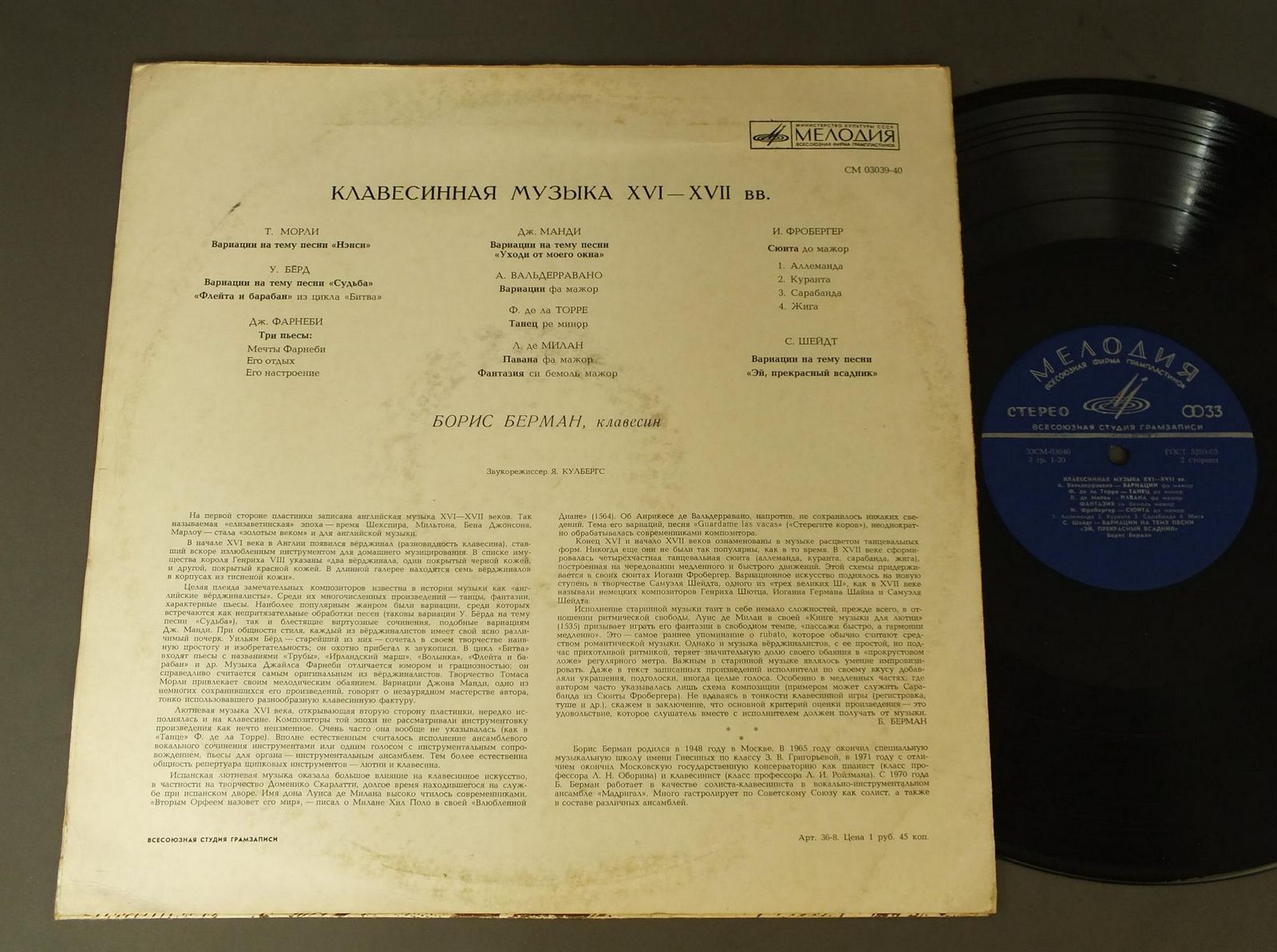 BORIS BERMANボリス・ベルマン/Clavecin Music of XVI-XVII centuries CM03039-40 製造国:輸入盤 / Media:LP外観:VG+盤の状態:EX 価格(税込):¥880(売約済) 送料 7inch:定形外郵便 360円~LP:定形外郵便 660円~送料は、注文の最終画面で確認頂けます。 > > BORIS BERMAN/Clavecin Music of XVI-XVII centuries 外観 (VG+)特記事項:背や上ヘリにスレ有。ジャケ表面にスレよごれ有。外観VG+の共通説明:ダメージやや有り。シミ、ヨゴレ、スレなど多少~やや多め。 盤の状態 (EX)特記事項:薄いスリキズ・スレ軽くある感じ。軽微なものの様子です。盤EXの共通説明:盤面のスリキズが薄いものが少し~軽度 音に出そうなものは無いように見える(軽微なソフトティック音は除く)。 その他:ロシア盤 Tweet それぞれの画像をクリックすると、大きい写真が見られます こちらの商品もお勧めです 990円 NIGEL ROGERS / CANTI AMOROSI 990円 JULIUS KATCHEN / BRAHMS - PIANO WORKS VOL.5 990円 TAMAS VASARY / CHOPIN 17 WALZER 990円 RALPH KIRKPATRICK / BACH VIERTER THEIL DER 2,200円 BENNO MIOISEIWITSCH / BENNO MIOISEIWITSCH 990円 RICHTER / F.SCHUBERT MOMENTS MUSICAUX etc 990円 VASARY-KEMPFF / TRAUMEREI-DIE SCHONSTEN 990円 GRAINNE YEATSグラーニア・イェイツ / BELFAST HARP FESTIVAL 1792