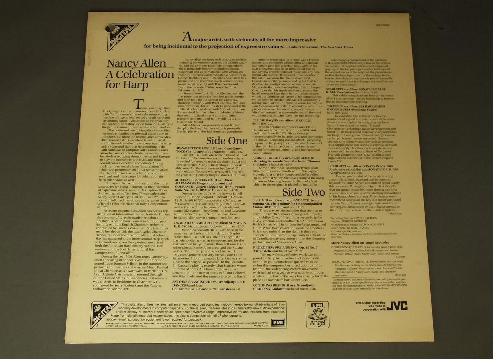 NANCY ALLEN/CELEBRATION FOR HARP DS37334 製造国:米国盤 / Media:LP外観:M盤の状態:M 価格(税込):¥1,650(売約済) 送料 7inch:定形外郵便 360円~LP:定形外郵便 660円~送料は、注文の最終画面で確認頂けます。 > > NANCY ALLEN/CELEBRATION FOR HARP 外観 (M)特記事項:未開封外観Mの共通説明:新品、シールドが切れていない状態。 盤の状態 (M)特記事項:未開封盤Mの共通説明:新品。 Tweet それぞれの画像をクリックすると、大きい写真が見られます こちらの商品もお勧めです 1,430円 BOULT / VAUSGHAN WILLIAMS-SYM. NO6 990円 BOULT / VAUGHAN WILLIAMS-SYM. NO4-NORFOLK RHAPSODY NO1 2,640円 BOSTON SYMPHONY - MUNCH / BERLIOZ - DAMNATION OF FAUST 1,540円 GIULINI - LOS ANGELES PHILHARMONIC ORCH / BEETHOVEN - SYM. NO3 EROICA 880円 EUGENE MRAVINSKI / TCHAIKOVSKI-SYM. NO4 EN FA MINEUR OP36 1,320円 ORMANDY - PHILADELPHIA ORCH. / GRIEG - PEER GYNT SUITES NO1 & NO2 990円 FERENCSILK / KODALY PSALMUS HUNGARICUS BARTOK DANCE SUITE 990円 KNAPPERTSBUSCH - WIENER PHILHARMONIKER / EIN ABEND IN WEIEN