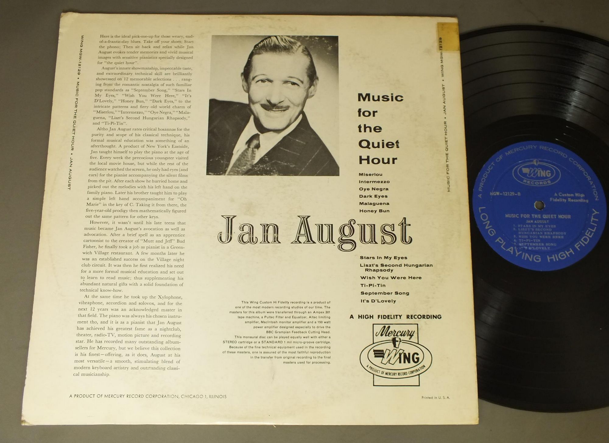JAN AUGUST/MUSIC FOR THE QUIET HOUR MGW12129 製造国:米国盤 / Media:LP外観:VG+盤の状態:EX- 価格(税込):¥660(売約済) 送料 7inch:定形外郵便 360円~LP:定形外郵便 660円~送料は、注文の最終画面で確認頂けます。 > > JAN AUGUST/MUSIC FOR THE QUIET HOUR 外観 (VG+)特記事項:ヘリにスレ有。ジャケ表面にスレよごれ有。表ジャケ背上付近に着色補修。外観VG+の共通説明:ダメージやや有り。シミ、ヨゴレ、スレなど多少~やや多め。 盤の状態 (EX-)特記事項:薄いスリキズ・細かい表面スレ多少ある感じです。プチ出そうな所は少し。軽微なものが中心の様子です。盤EX-の共通説明:盤面のスリキズが多少有り。音に出そうなものは殆ど無いように見える~さほど気にならないぐらいの軽いプチ数カ所程度。 Tweet それぞれの画像をクリックすると、大きい写真が見られます こちらの商品もお勧めです 1,100円 MODERN JAZZ QUARTET / LAST CONCERT 550円 TEDDY WILLSON etc / GREAT SWING JAM SESSIONS RECORDED 1940 1,100円 HERBIE MANN / LIVE AT THE WHISKY A GO GO 770円 BOBBY HACKETT / AT THE EMBERS 770円 TEDDY WILSON / WITH CHARLIE SHAVERS SPECS POWELL RED NORVO etc 1,210円 BOBBY HACKETT / BUTTERFLY AIRS VOLUME 1 SIR CHARLES AUTOGRAPHEDSIR CHARLESサイン付 440円 FRANKIE CARLE / HONKY-TONK HITS BY THE DOZEN 770円 DIZZY GILLESPIE AND HIS ORCHESTRA / IMMORTAL SESSIONS