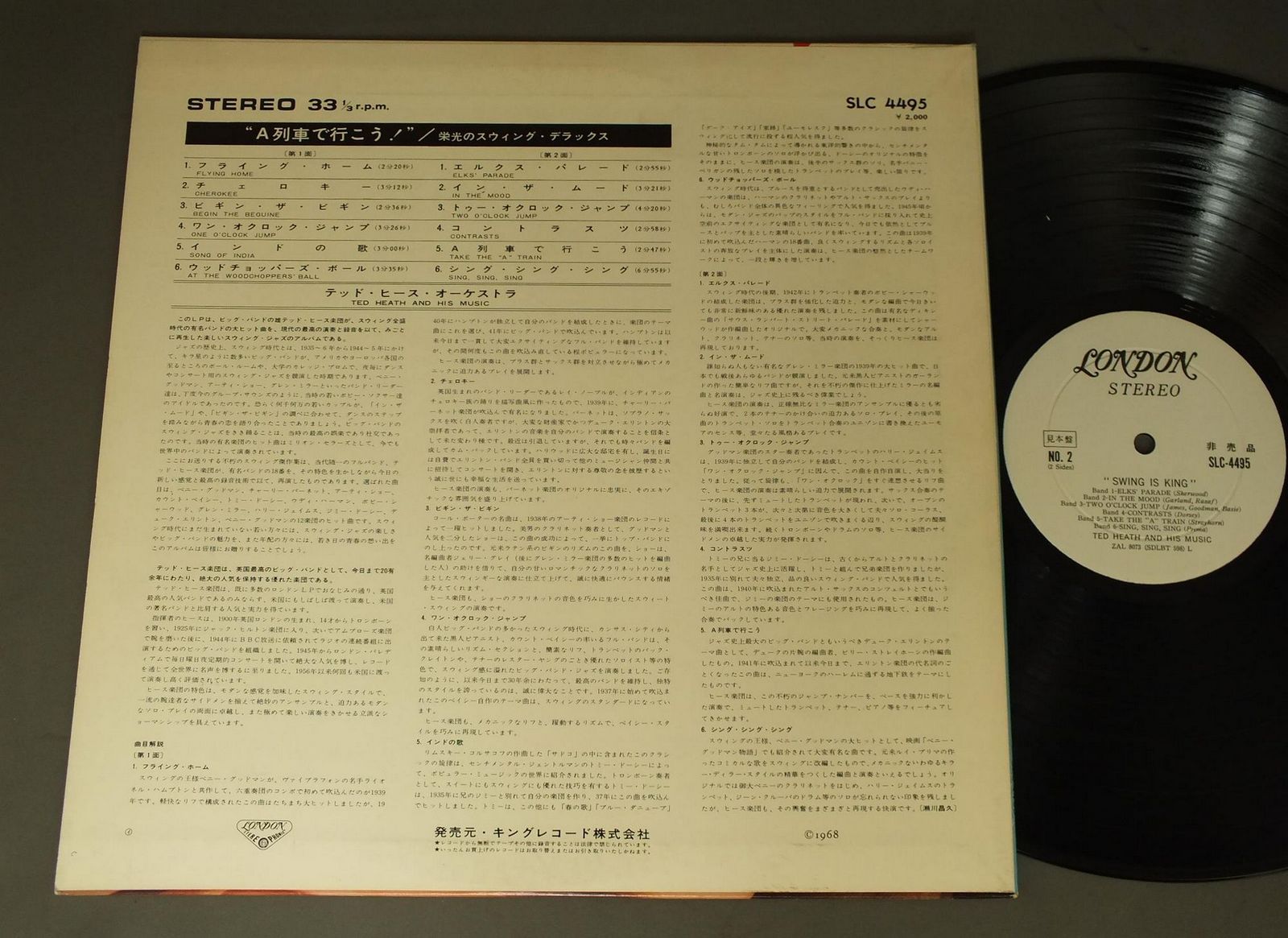 TED HEATH AND HIS MUSICテッド・ヒース・オーケストラ/SWING IS KING栄光のスウィング・デラックス SLC4495 製造国:日本盤 / Media:LP外観:EX盤の状態:EX 価格(税込):¥880(売約済) 送料 7inch:定形外郵便 360円~LP:定形外郵便 660円~送料は、注文の最終画面で確認頂けます。 > > TED HEATH AND HIS MUSIC/SWING IS KING 外観 (EX)特記事項:特記なし。コンディションリストを参照ください。外観EXの共通説明:ダメージが限定的。中古品としては保存状態がよい方。シミ、ヨゴレ、スレ 少し~軽度。 盤の状態 (EX)特記事項:薄いスリキズ・スレ軽くある感じ。軽微なものの様子です。盤EXの共通説明:盤面のスリキズが薄いものが少し~軽度 音に出そうなものは無いように見える(軽微なソフトティック音は除く)。 その他:白見本盤 Tweet それぞれの画像をクリックすると、大きい写真が見られます こちらの商品もお勧めです 1,210円 ART FARMER AND THE ORCHESTRAアート・ファーマー楽団 / LISTEN TO ART FARMER AND THE ORCHESTRA 60s ISSUEアート・ファーマーの芸術 ペラジャケ 1,210円 OUT OF THE BLUEアウト・オブ・ザ・ブルー / OUT OF THE BLUEアウト・オブ・ザ・ブルー 770円 HERBIE MANNハービー・マン / HOLD ON. I`M COMIN`ホールド・オン 1,210円 WOODY HERMANウディ・ハーマン / SECOND HERDセカンド・ハード 770円 ANDREAS VOLLENWEIDERアンドレアス・フォーレンヴァイダー / WHITE WINDSホワイト・ウィンズ 1,650円 COZY POWELLコージー・パウエル / TILTサンダーストーム 1,210円 EUGEN CICEROオイゲン・キケロ・トリオ / ROKOKO-JAZZロココ・ジャズ 770円 24th STREET BAND24th ストリート・バンド / FEATURING HIRAM BULLOCKフィーチャリング ハイラム・ブロック
