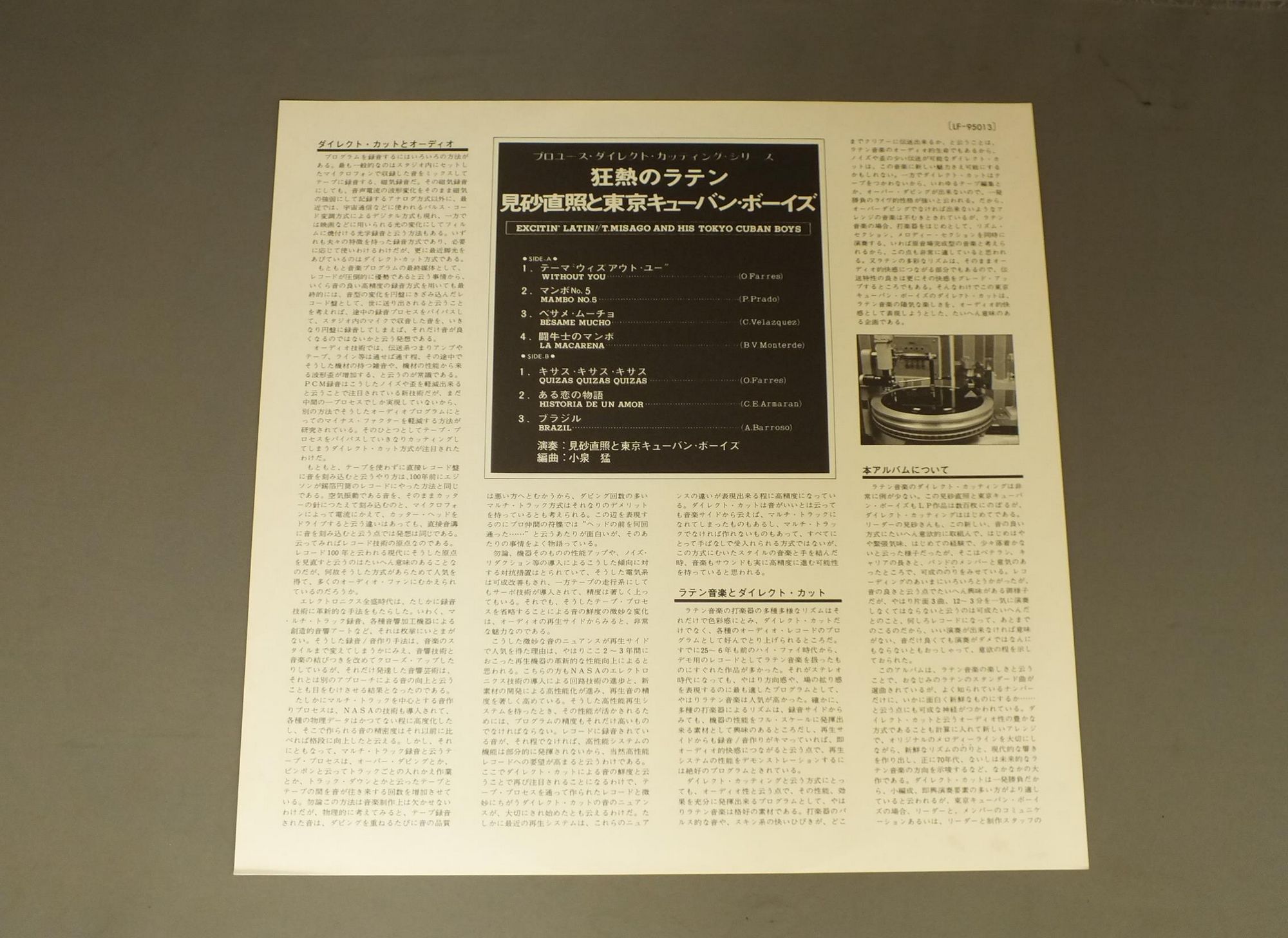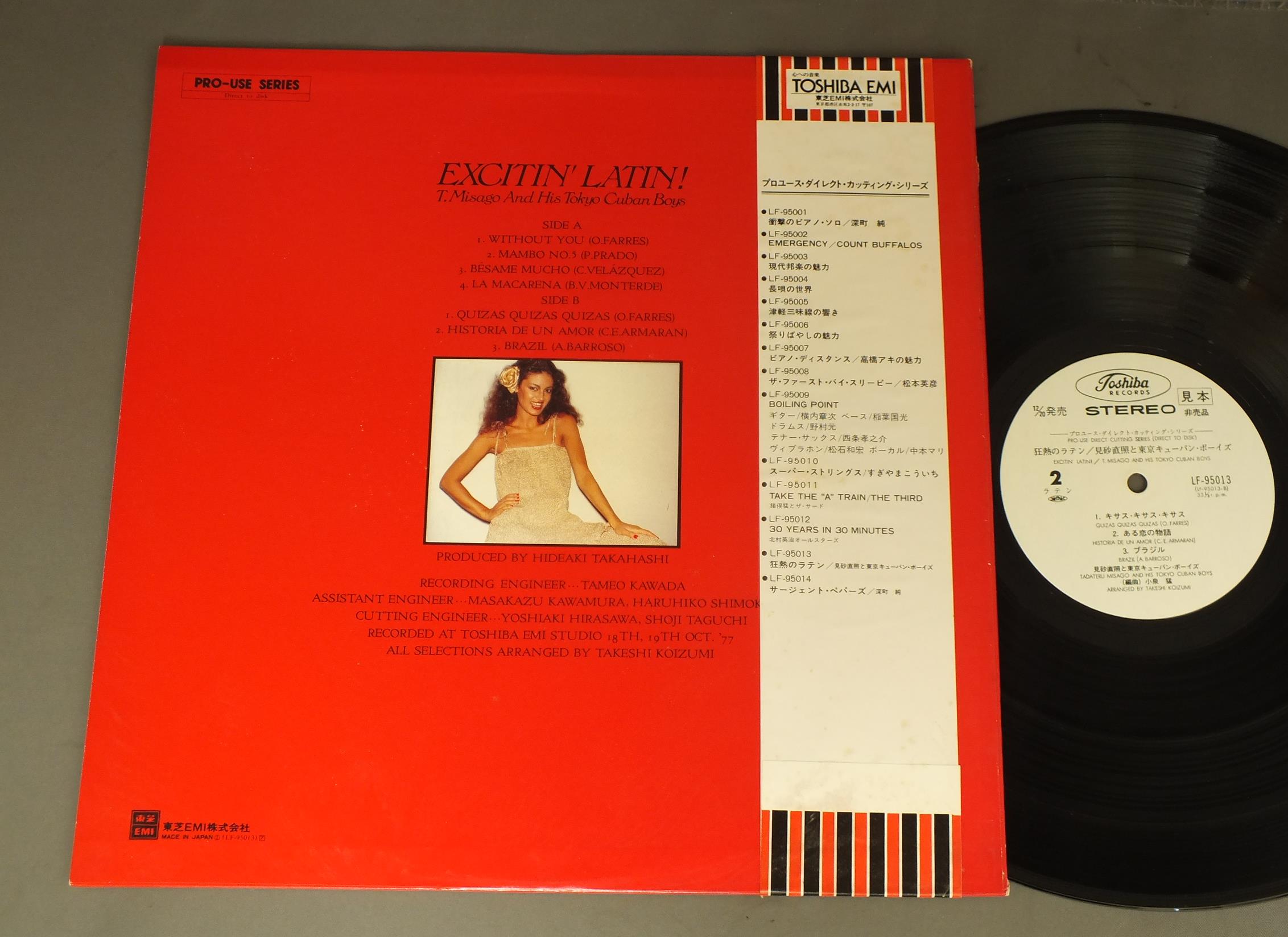 T.MISAGO AND HIS TOKYO CUBAN BOYS見砂直照と東京キューバン・ボーイズ/EXCITIN` LATIN!狂熱のラテン(PRO-USEシリーズ) LF95013 製造国:日本盤 / Media:LP外観:EX-盤の状態:EX+帯:EX- 価格(税込):¥1,650(売約済) 送料 7inch:定形外郵便 360円~LP:定形外郵便 660円~送料は、注文の最終画面で確認頂けます。 > > T.MISAGO AND HIS TOKYO CUBAN BOYS/EXCITIN` LATIN! 外観 (EX-)特記事項:ヘリにスレ有。ジャケ表面にシミ、よごれ有、スレ有。外観EX-の共通説明:ダメージ軽度~多少。 中古品としては普通の状態。シミ、ヨゴレ、スレなど軽く~多少。 盤の状態 (EX+)特記事項:薄いスリキズ・スレ少し。一見してきれいな状態です。盤EX+の共通説明:盤面の極薄いスリキズ、スレ少し程度 音に出そうなものは無いように見える(極軽微なソフトティック音は除く)。 帯の状態 (EX-):ヨレ有。シミ有。 その他:白見本盤 Tweet それぞれの画像をクリックすると、大きい写真が見られます こちらの商品もお勧めです 3,300円 EDDIE CONDON ALL STARSエディ・コンドン・オール・スターズ / EDDIE CONDON ALL STARS 1945 5LP BOX SETエディ・コンドン・オール・スターズ1945 5枚組 1,320円 WILTON FELDERウィルトン・フェルダー / SECRETSシークレッツ 1,210円 SONNY STITT WITH QUINCY JONES ORCHETRAソニー・スティット・クインシージョーンズ オーケストラ / SAME TITLE 1,650円 MASARU IMADA今田勝 / DAY IN THE PARADISEコーラルの涙 1,210円 HERBIE MANNハービー・マン / MEMPHIS UNDERGROUNDメンフィス・アンダーグラウンド 990円 OSCAR PETERSON TRIOオスカー・ピーターソン・トリオ / IN TUNEイン・チューン 1,210円 BUCK CLAYTONバック・クレイトン / PASSORT TO PARADISEスポート・トゥ・パラダイス 990円 JOHN LEWISジョン・ルイス / EUROPEAN WINDOWSヨーロッパの窓